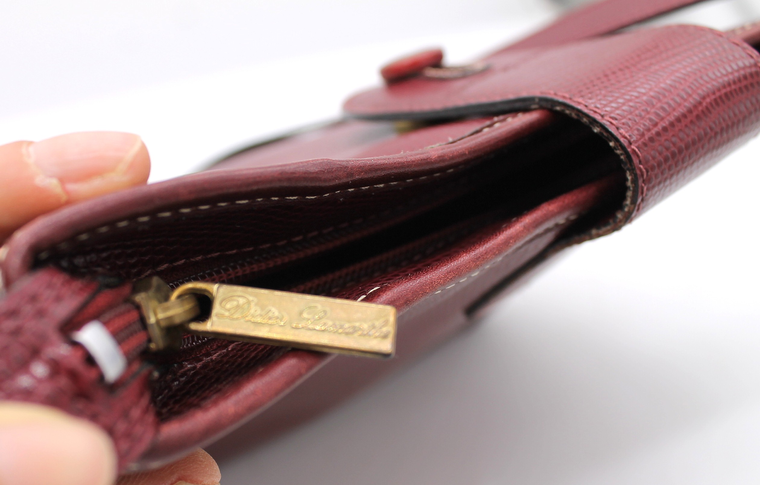 Rigida, chiusura zip, inserti dorati, taschina interna.