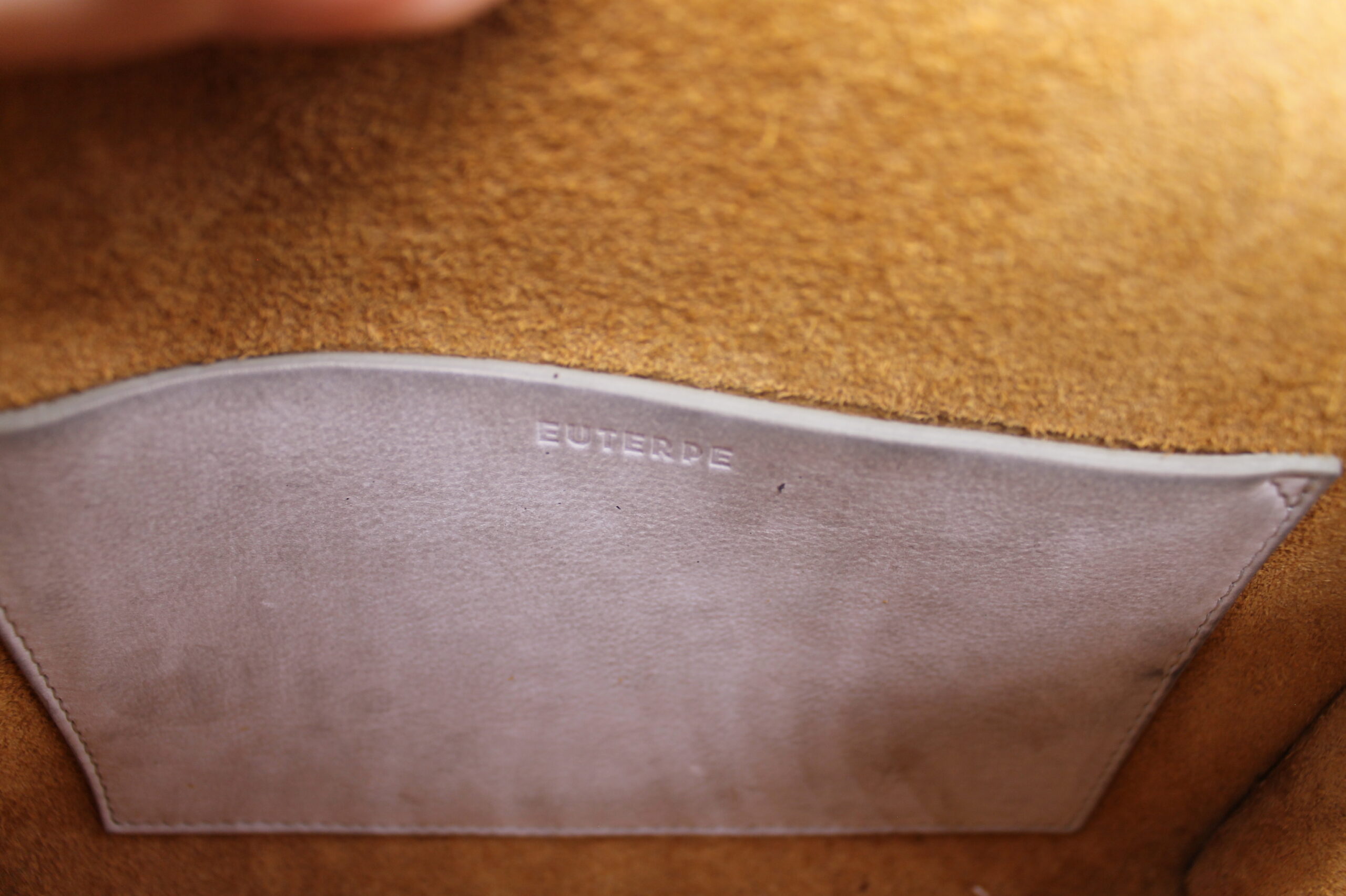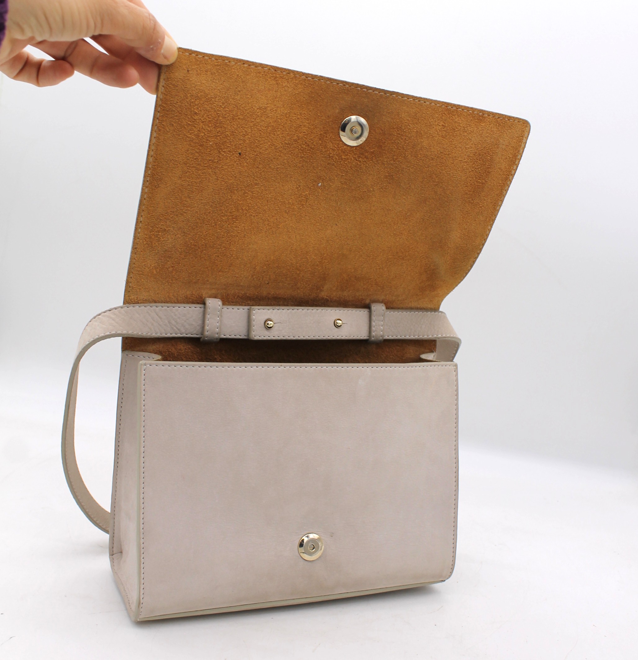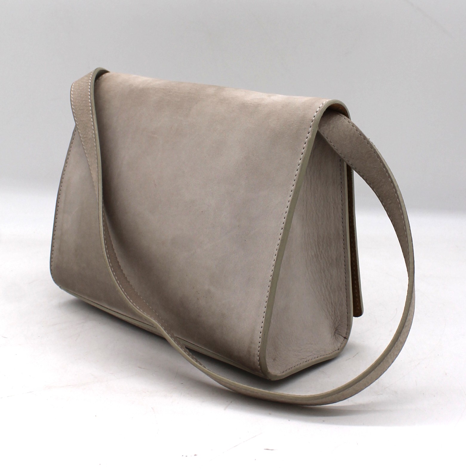 Borsa Euterpe grigia scamosciata con tracolla. Chiusura clip con taschina interna. Originale in ottimo stato.