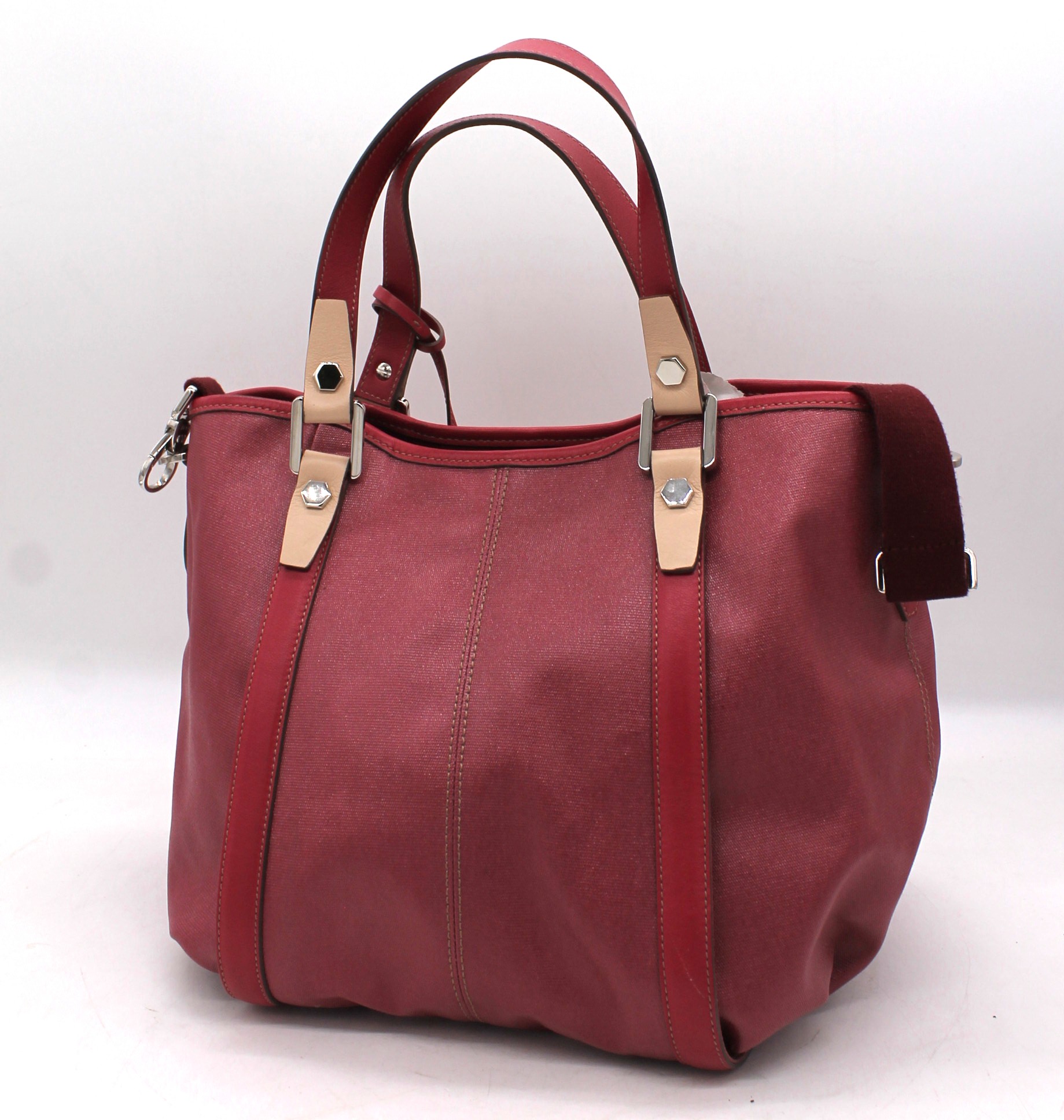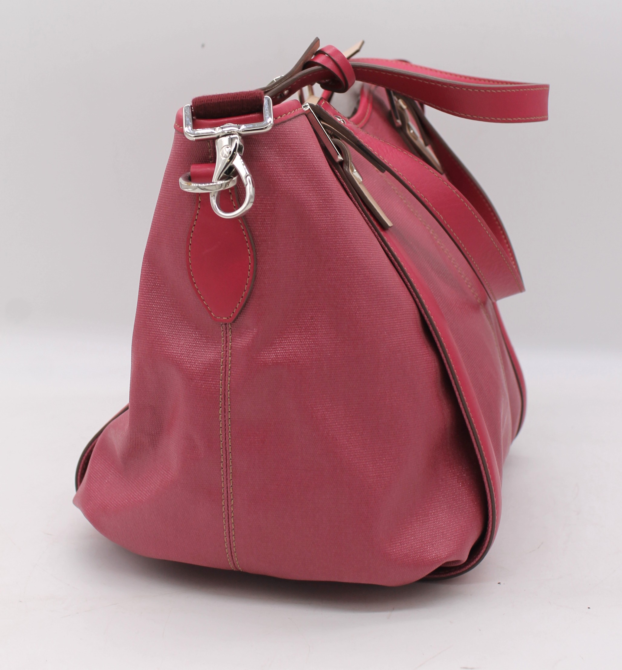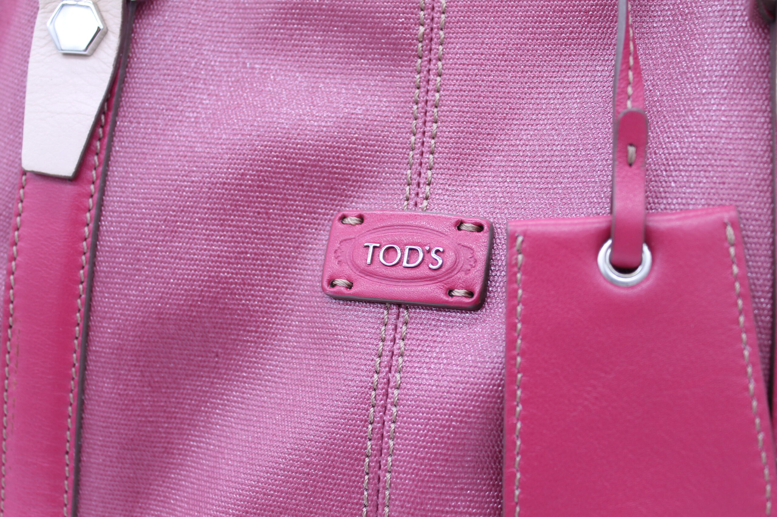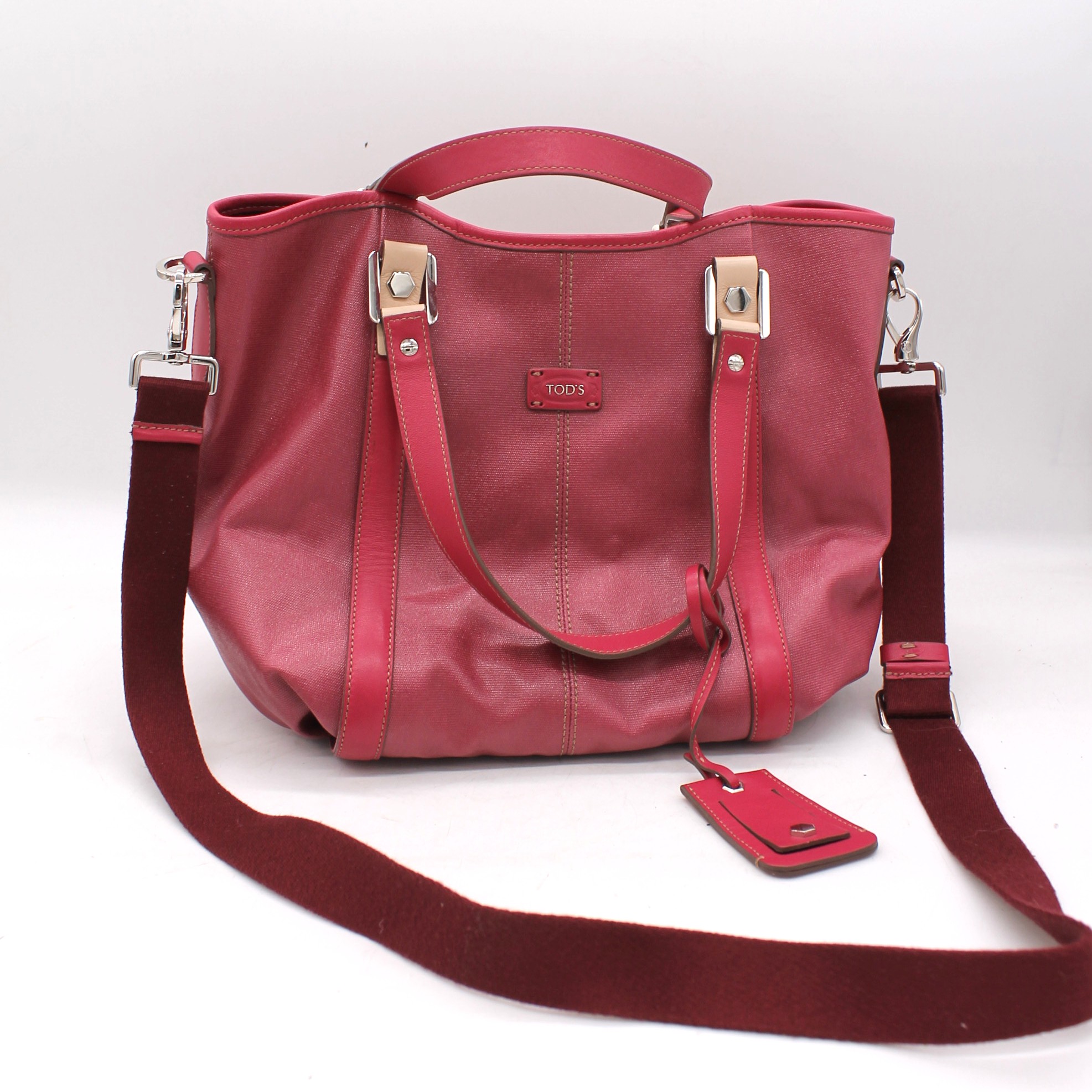 Borsa Tods originale, morbida di colore rosa fucsia. Con manici e tracolla. Chiusura a clip.