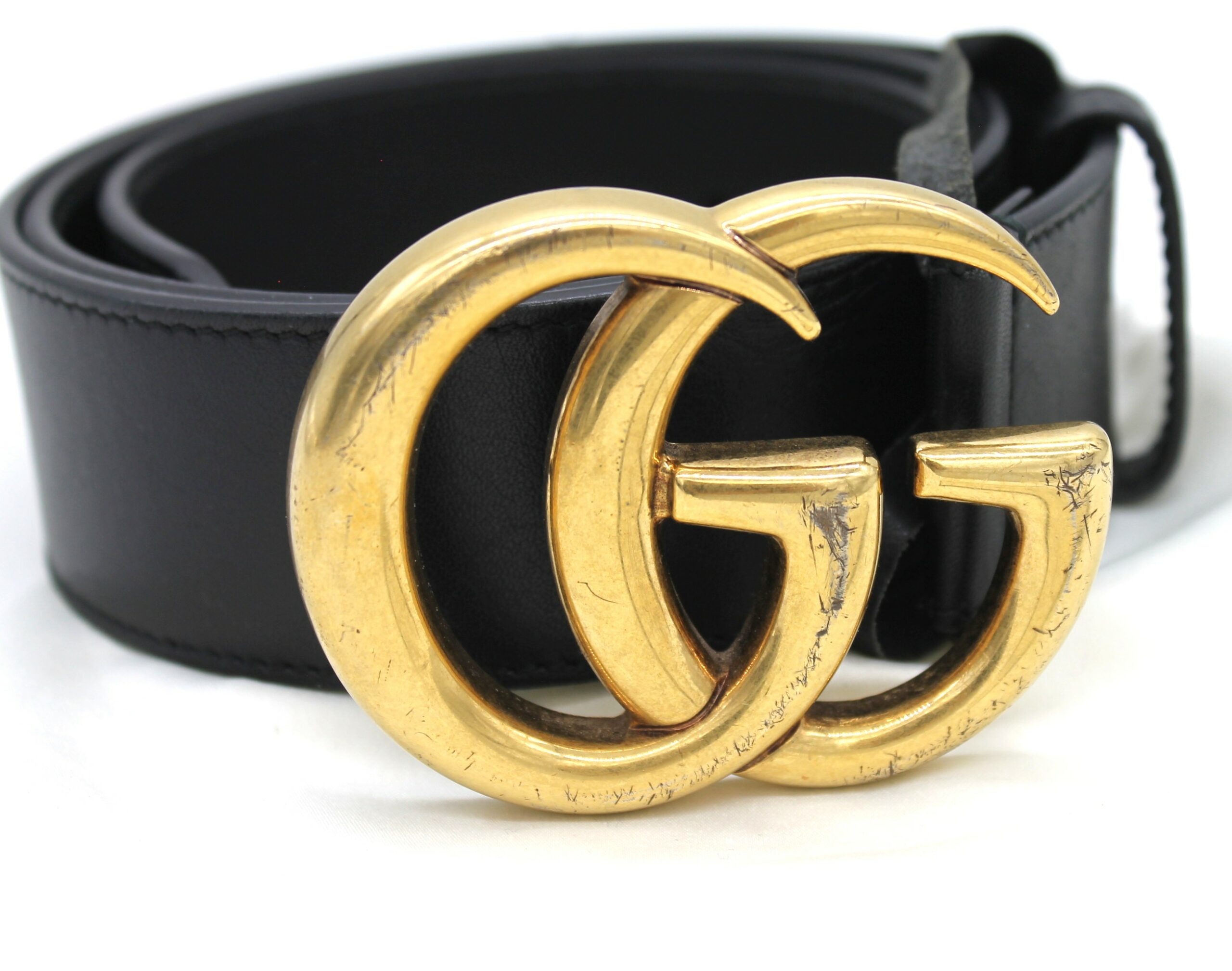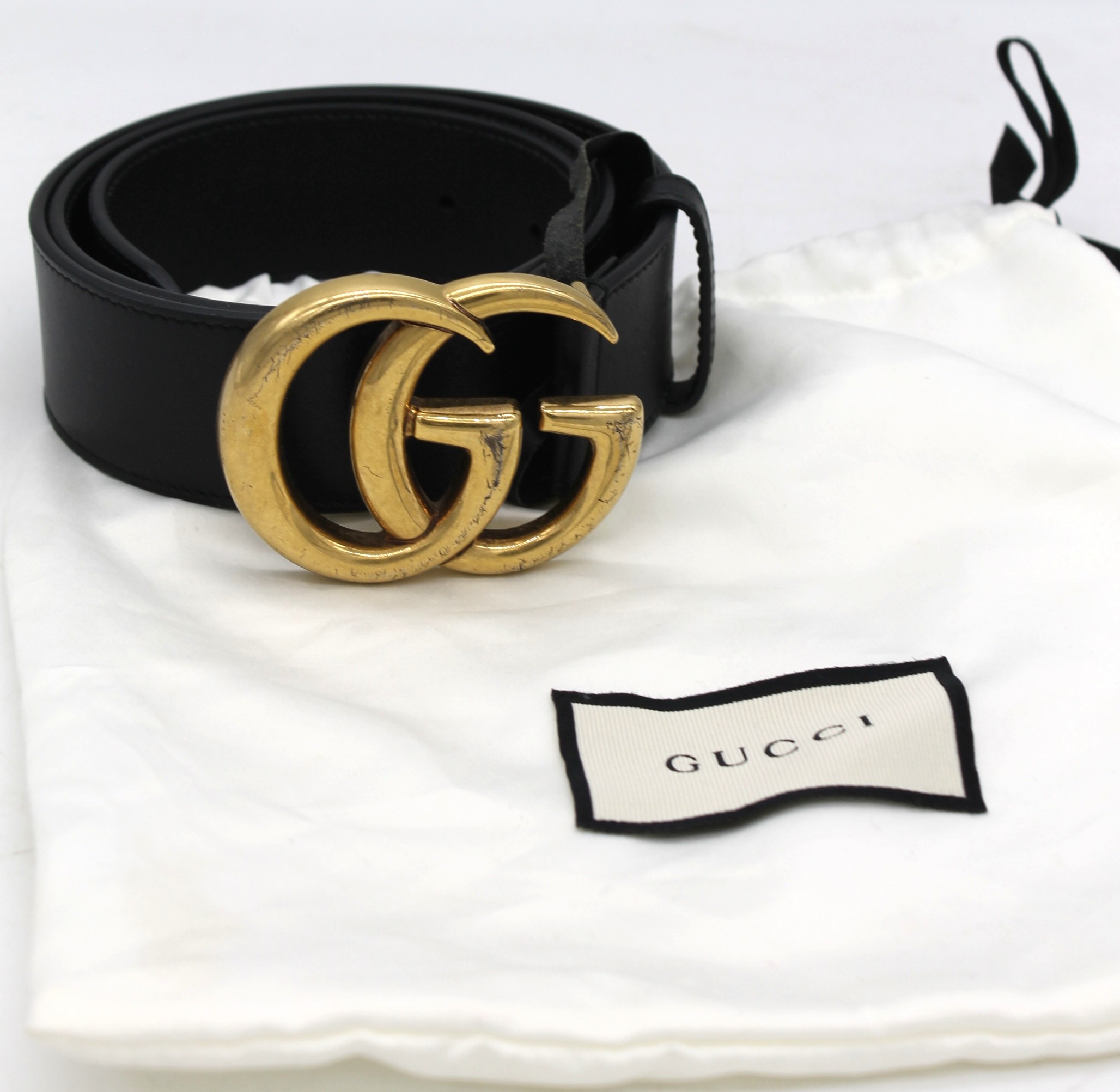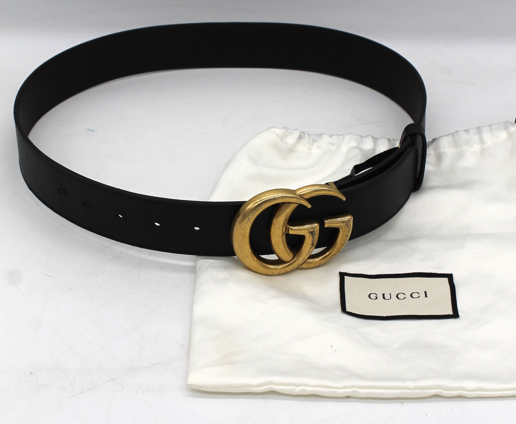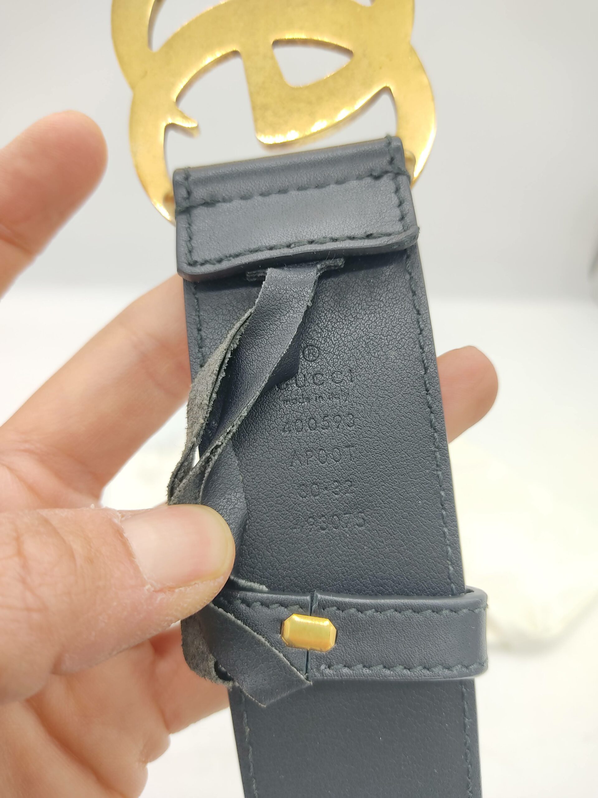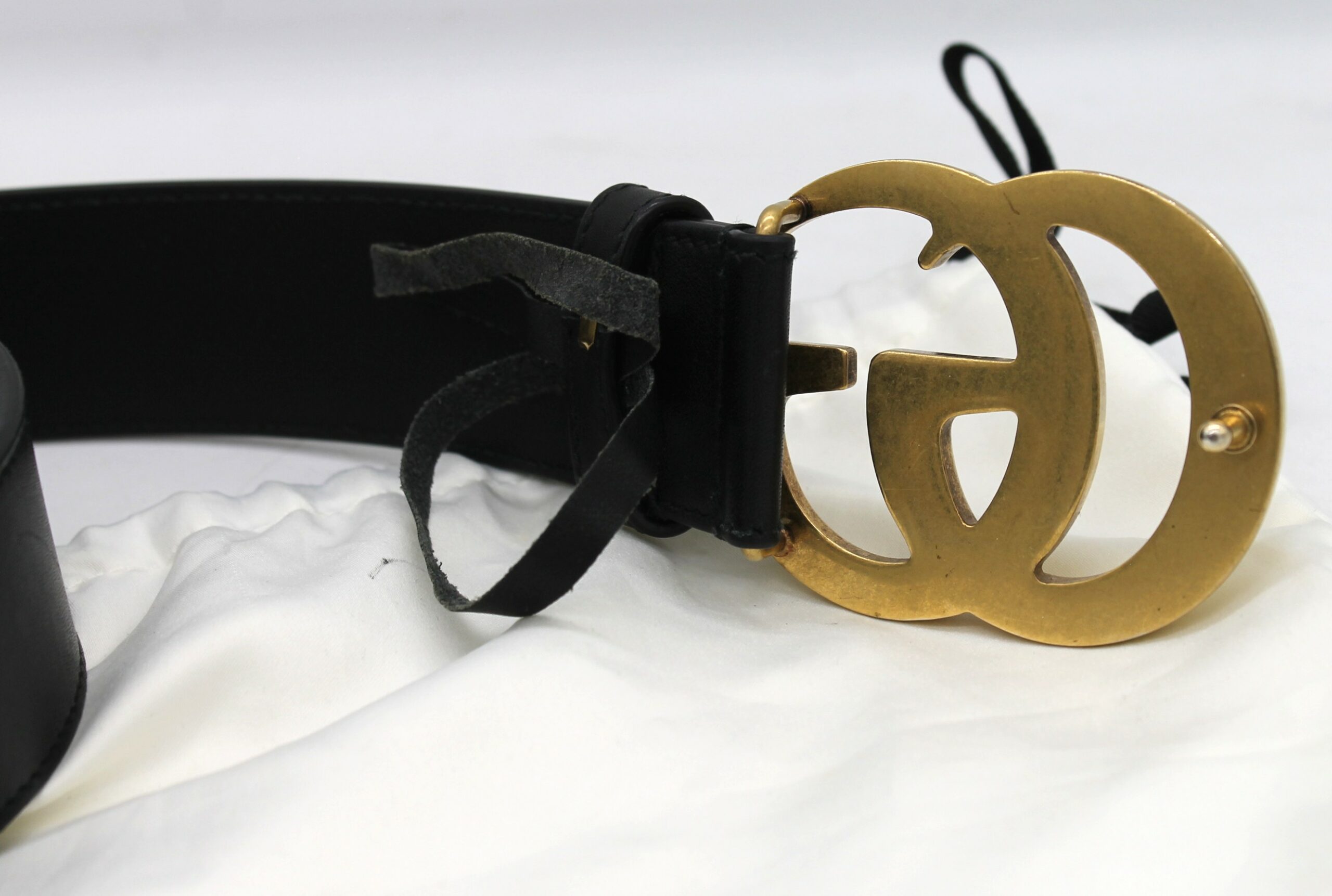 Cinta Gucci nera e dorata mod. 400593. Con sacchetta originale.