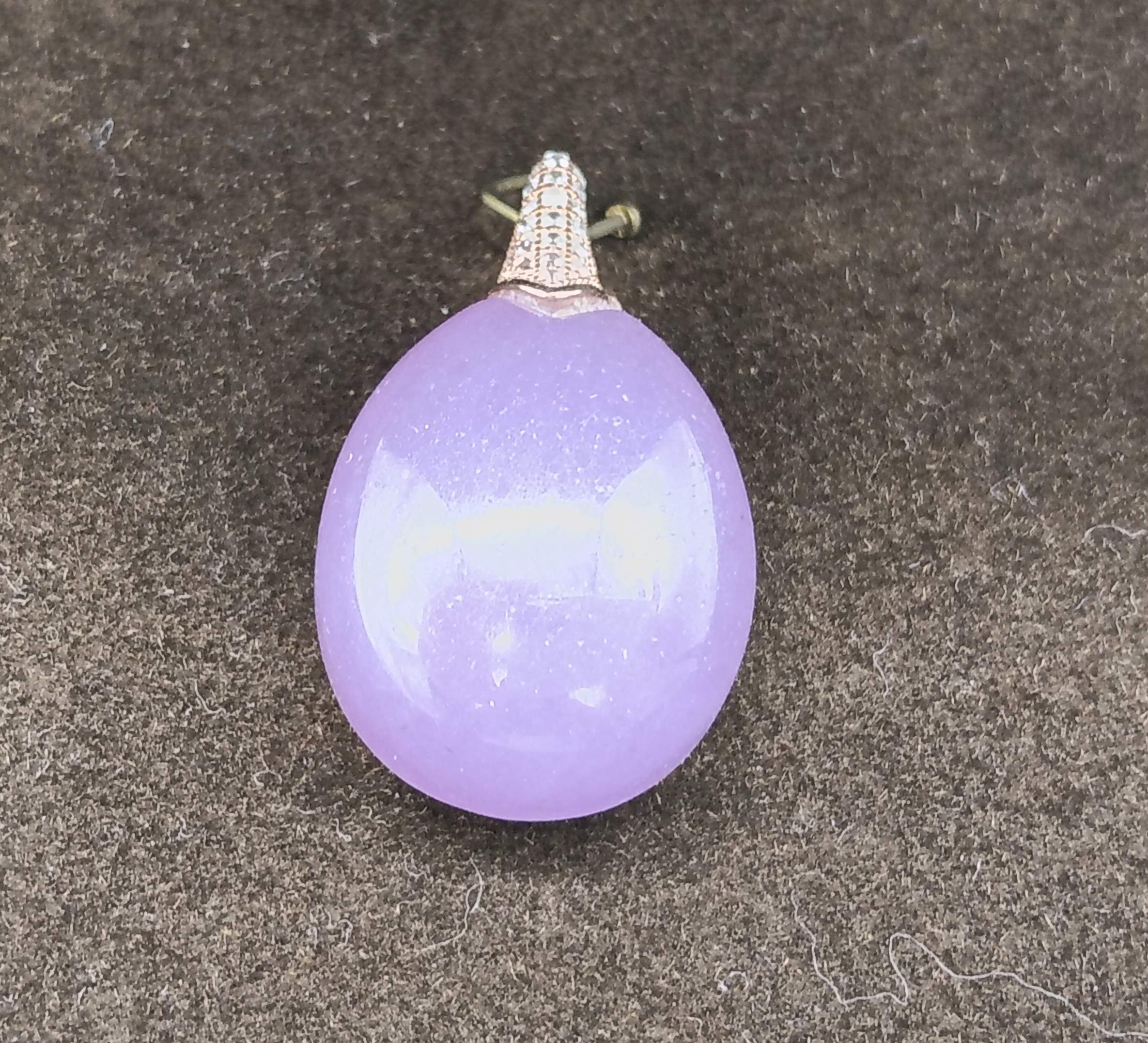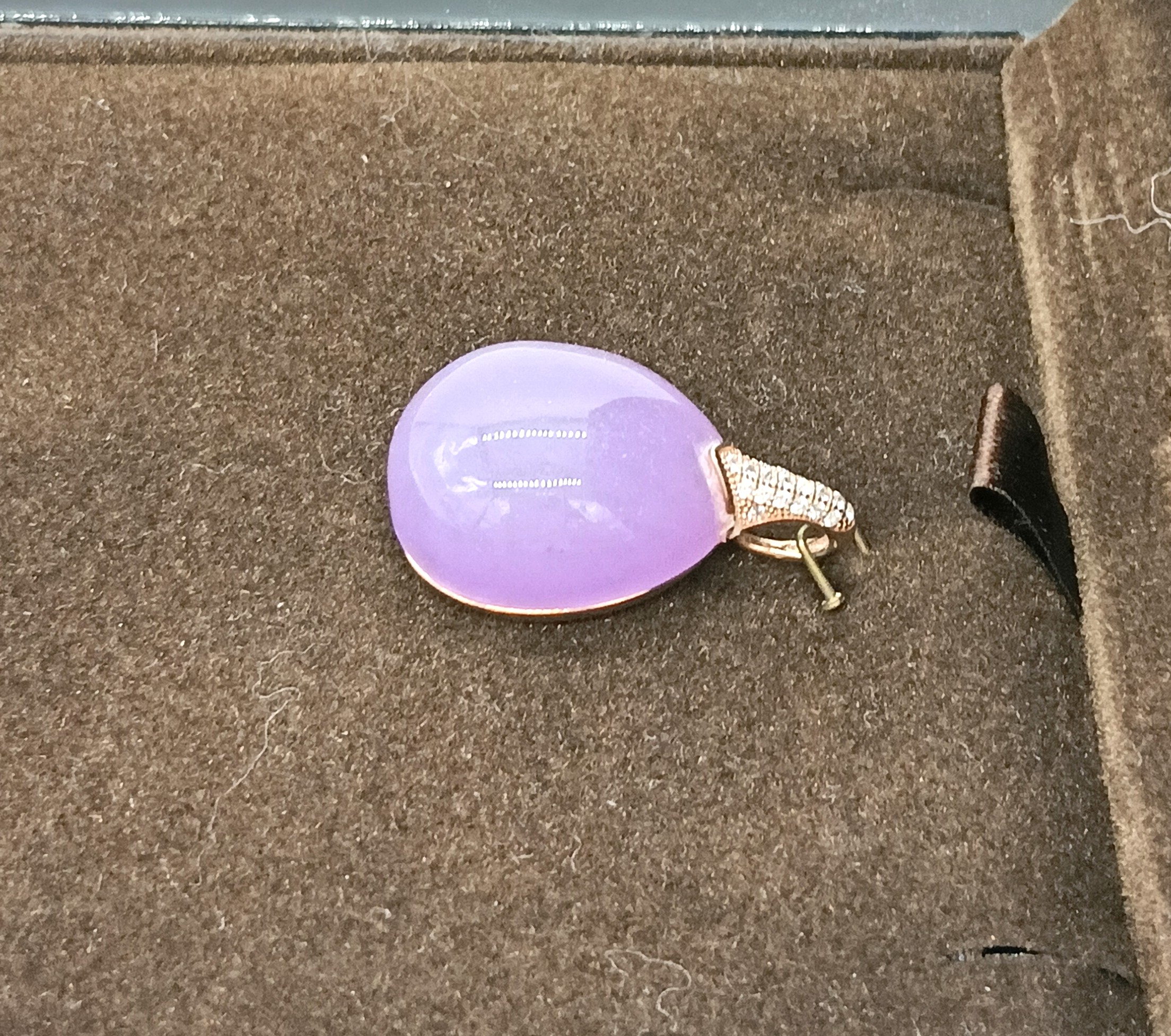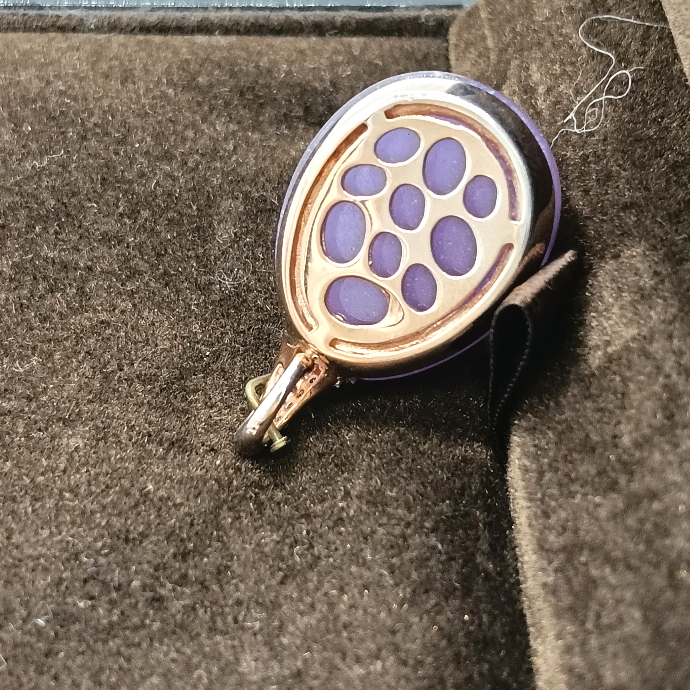 Ciondolo originale Tatiana Faberge’ a goccia, viola, dorato e con strass.