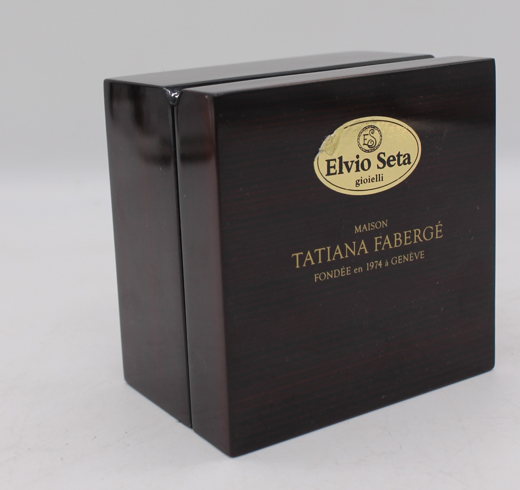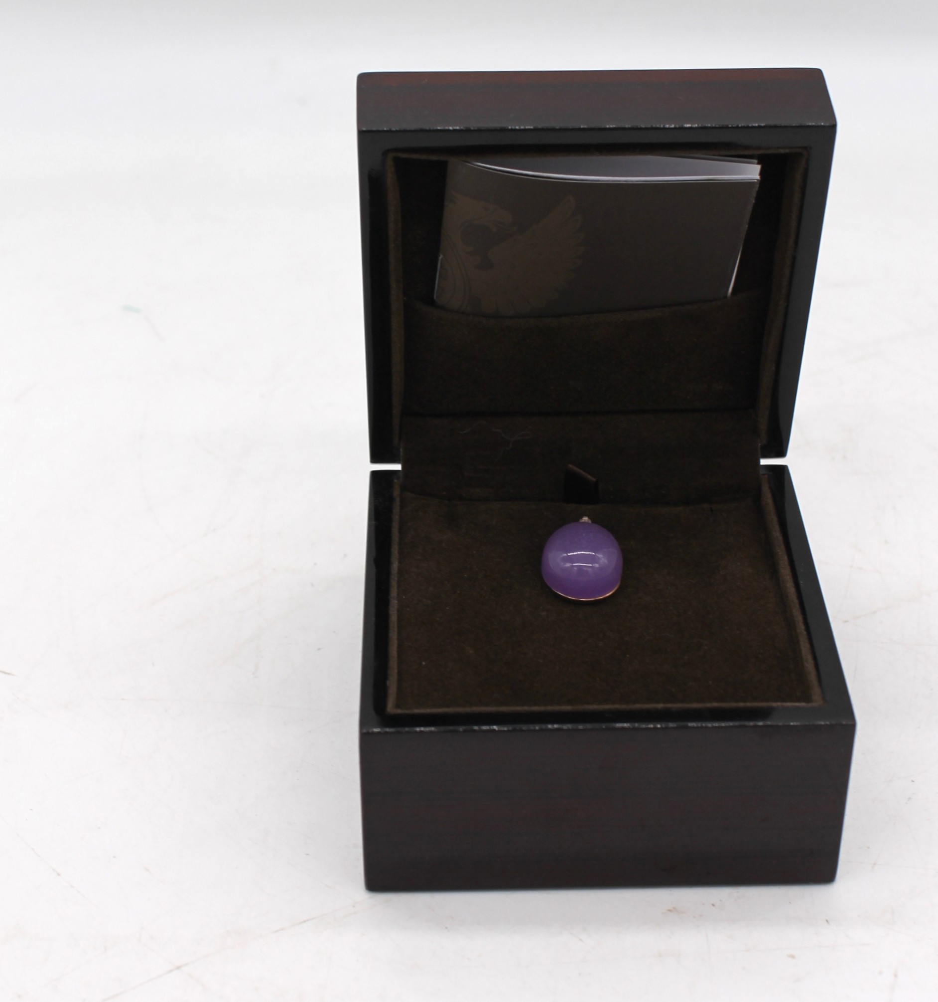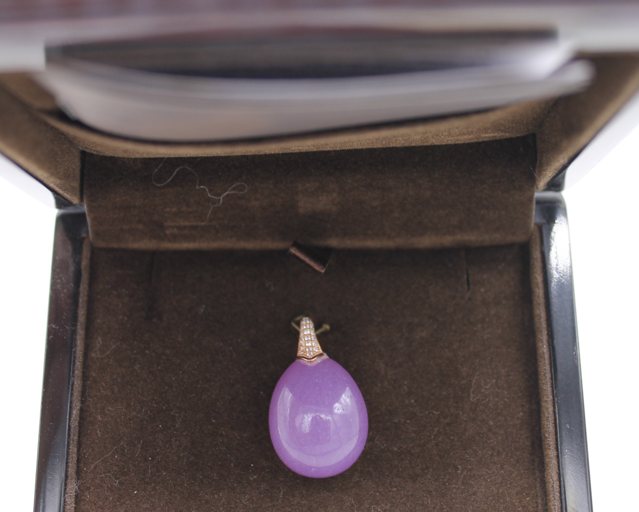 Ciondolo originale Tatiana Faberge’ a goccia, viola, dorato e con strass.
