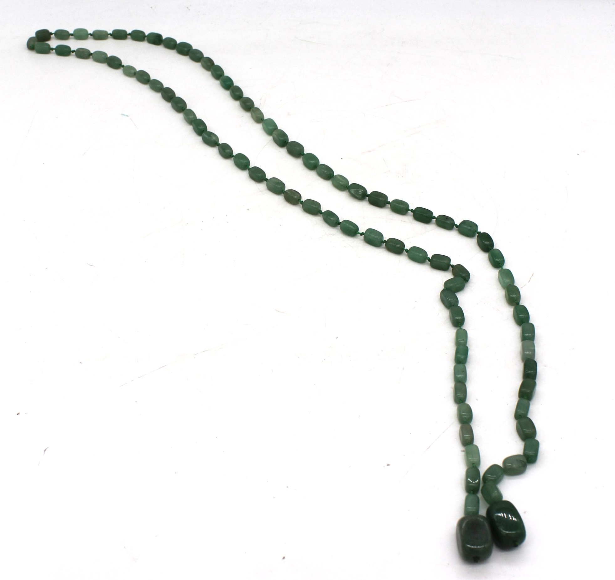 Collana lunga di pietre giada a forma squadrata.