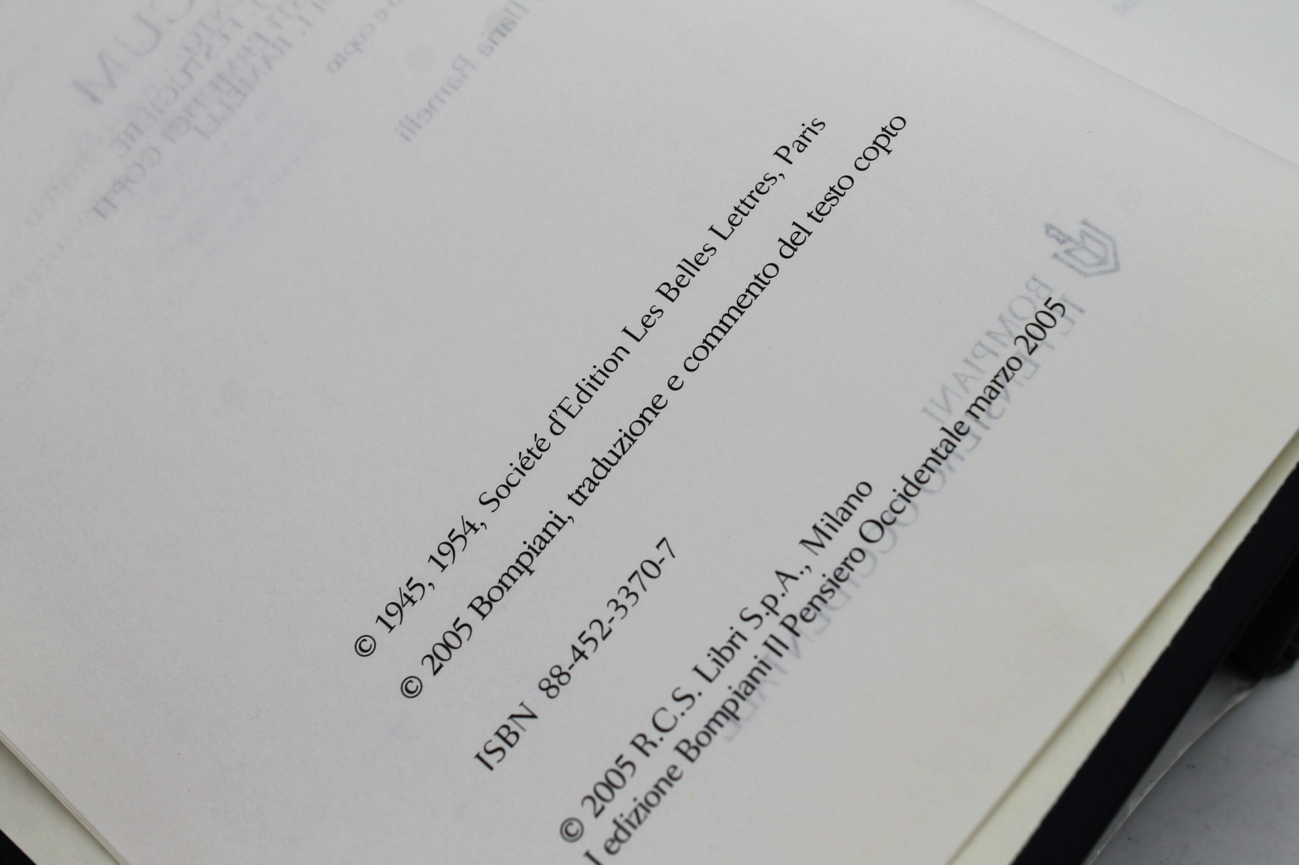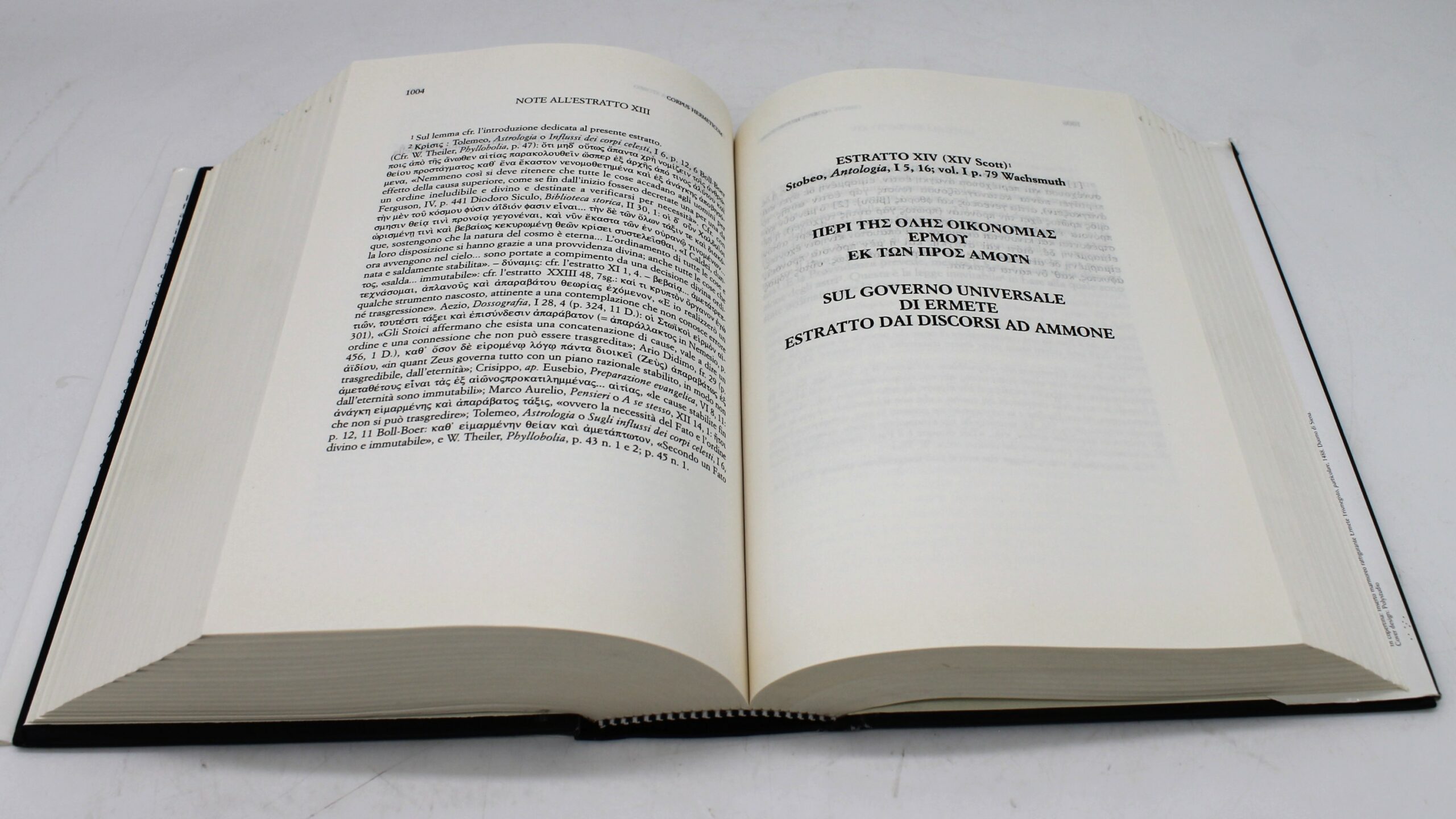 Prima edizione integrale in italiano dei Trattati Ermetici, seguendo la fondamentale edizione curata da Festugiere e Nock nel 1945-54, aggiornata e completata con un’appendice di Ilaria Ramelli composta da un saggio critico con i principali progressi nello studio dell’ermetismo avvenuti a partire dal ’54, i principali orientamenti critici e la scoperta di tre testi in copto, presentati anch’essi con testo a fronte.