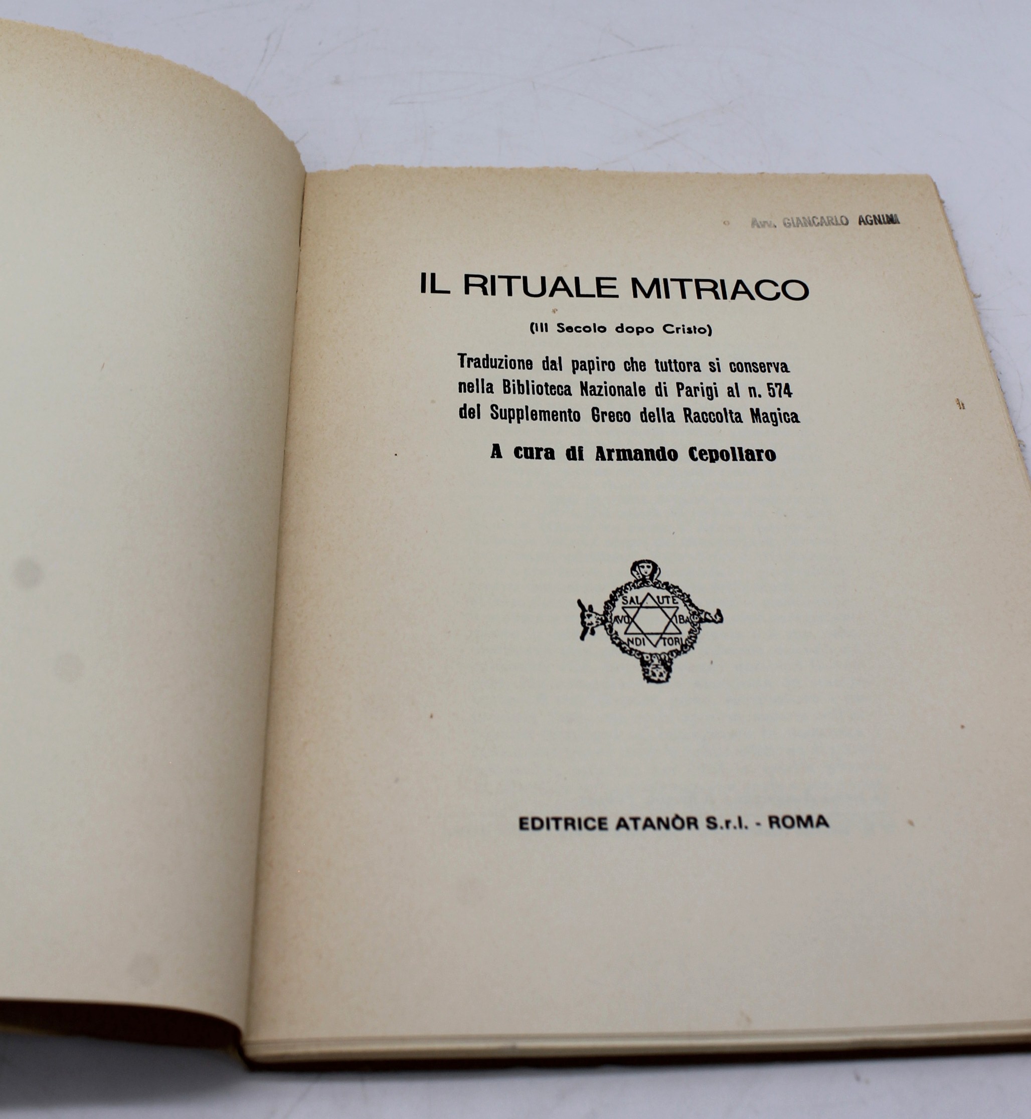 Libro Il rituale di Mithra – Atanòr 1982.