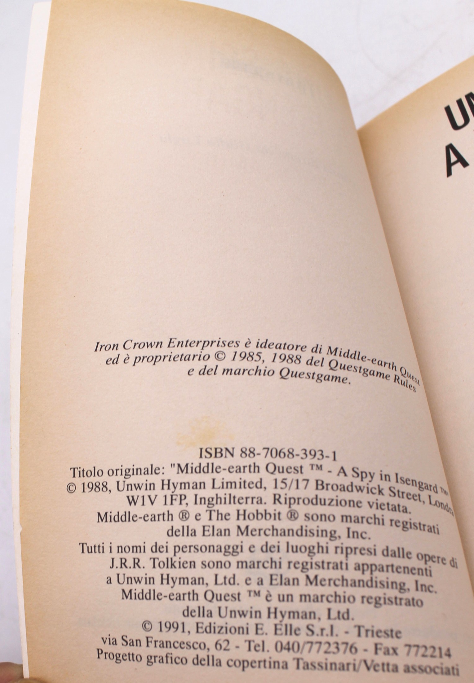 – “Una spia a Isengard” La Terra di Mezzo n° 1 Edizioni EL, 1992 – costo 38,00 euro