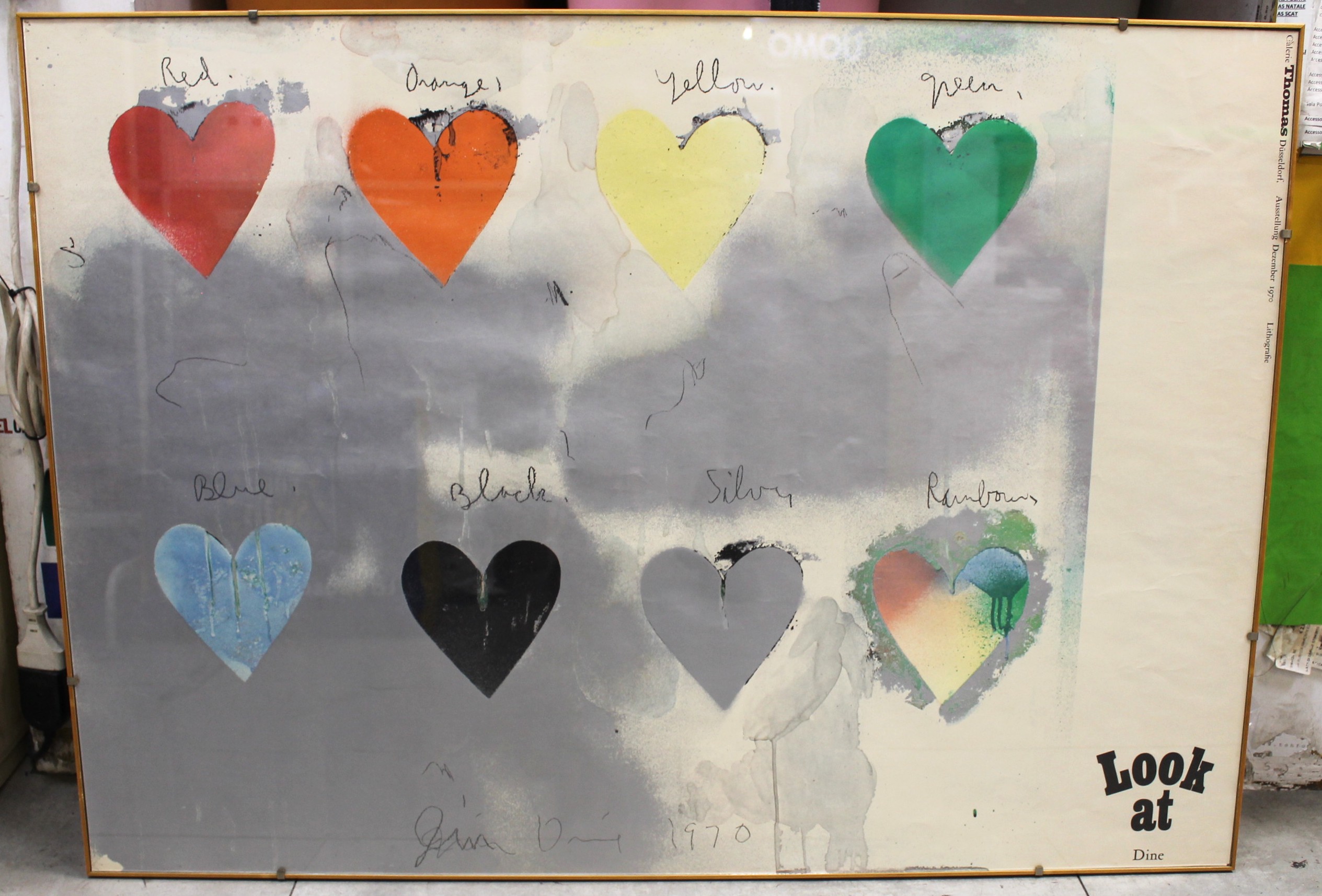 Litografia a colori di Jim Dine intitolata “Eight Hearts” del 1970 realizzata in occasione della mostra dell’artista intitolata “Look at Dine”.