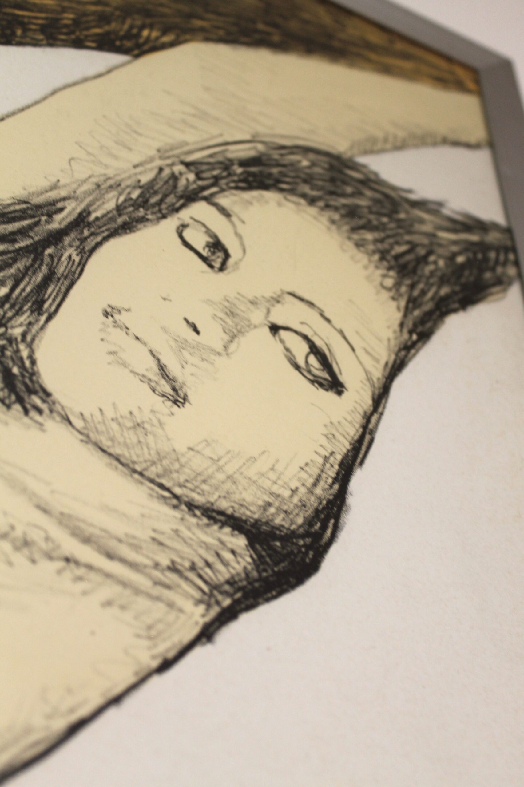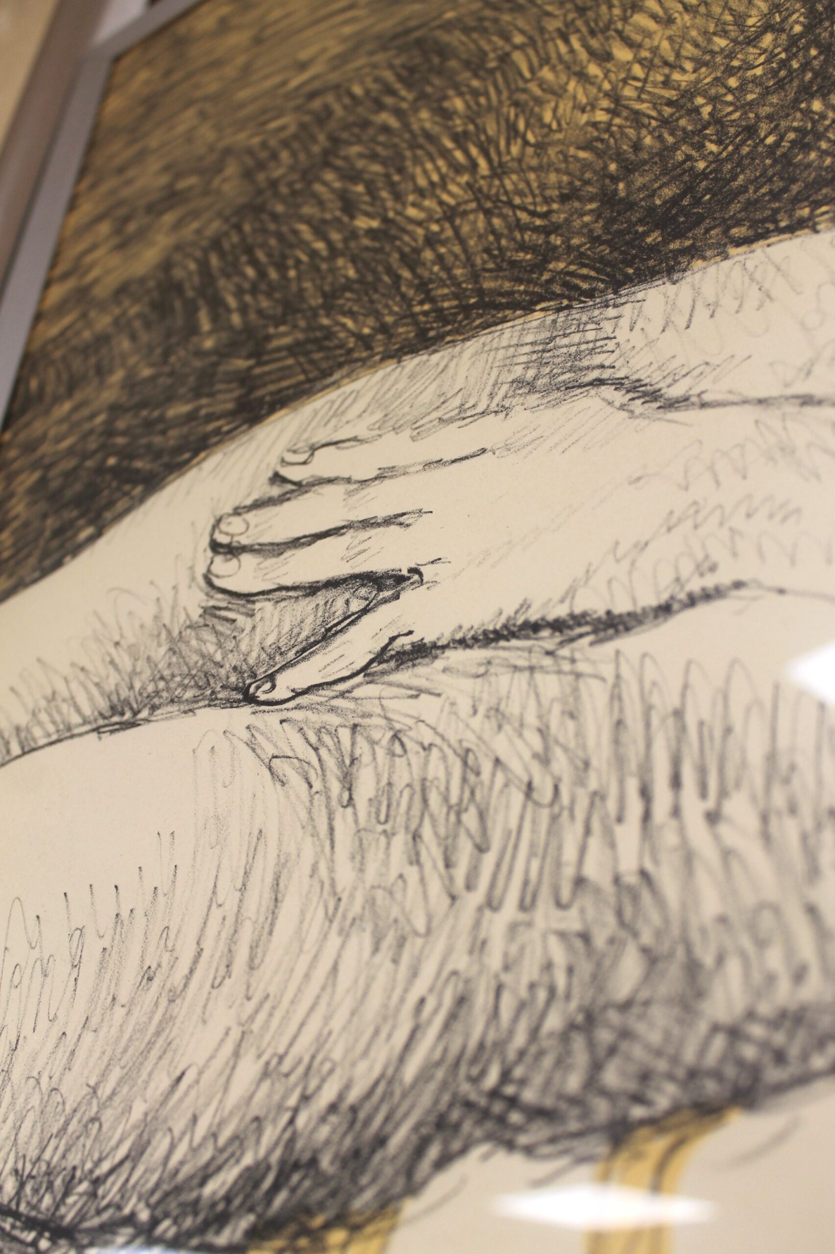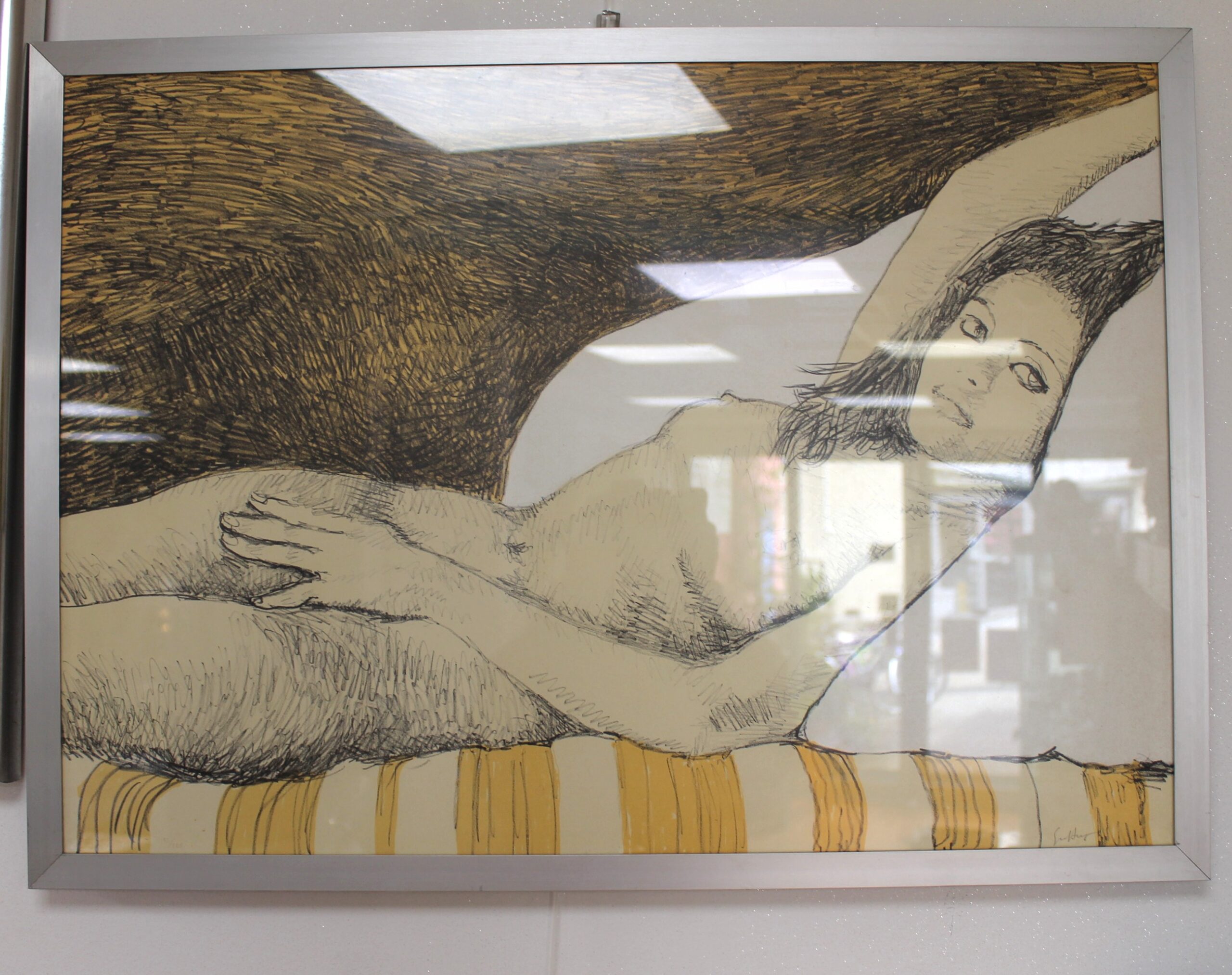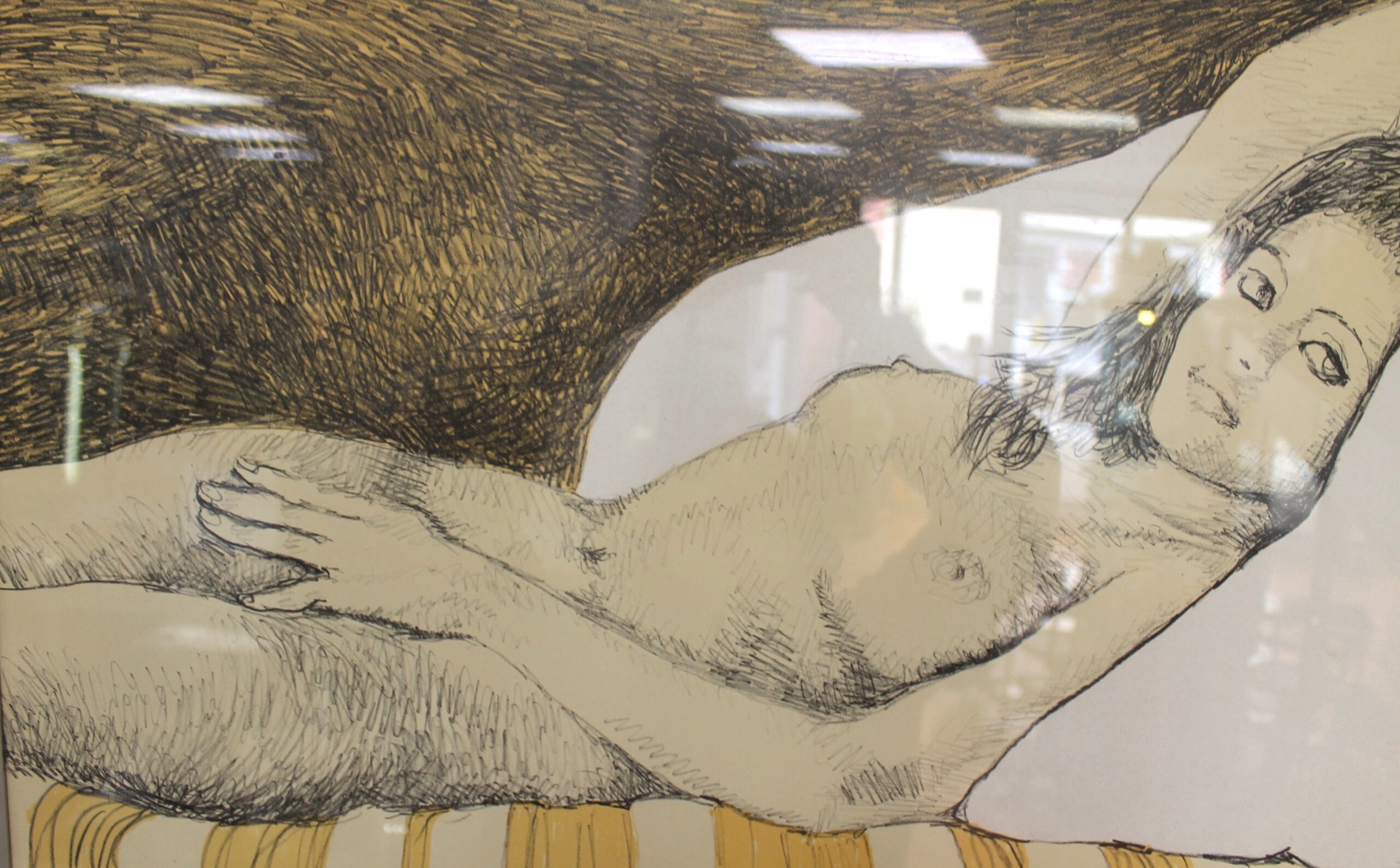 Litografia con cornice di Guttuso raffigurante una donna sdraiata.