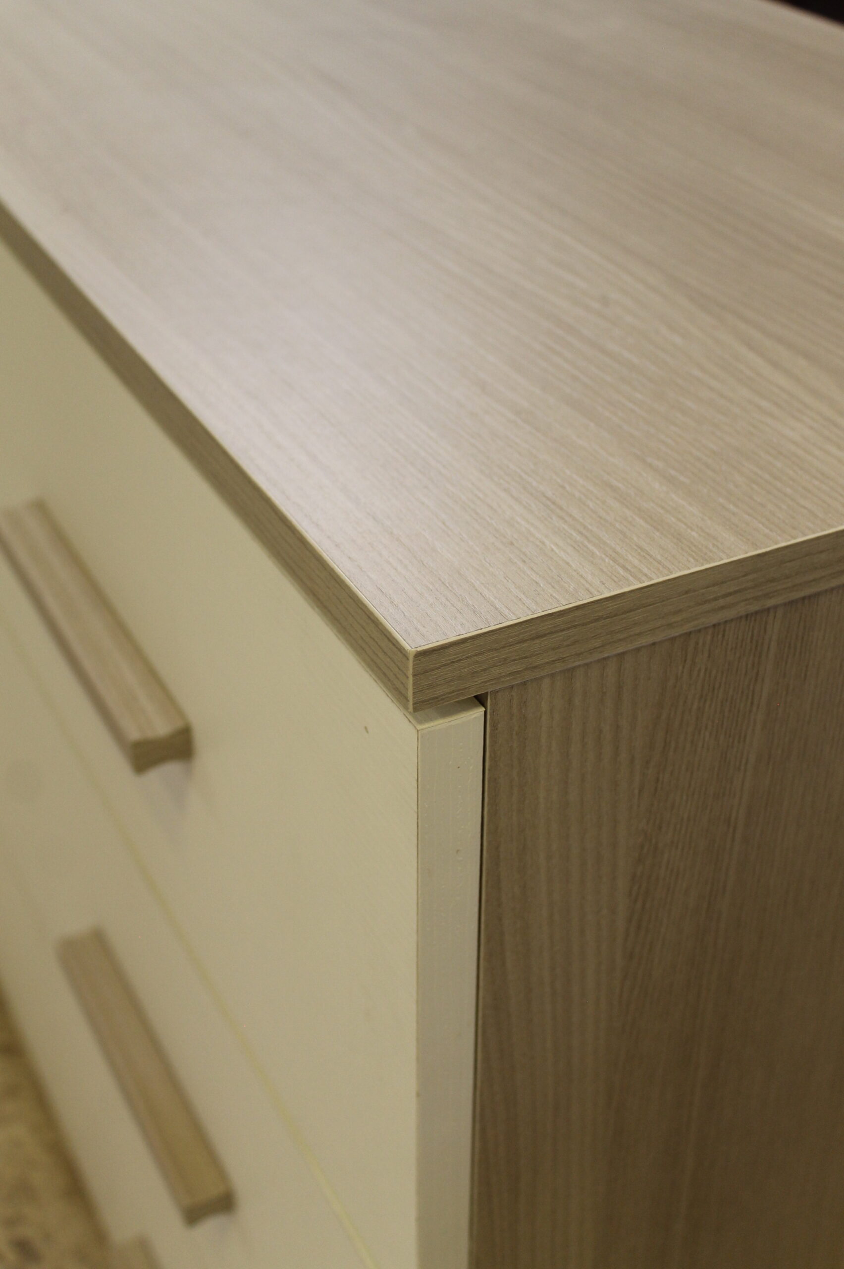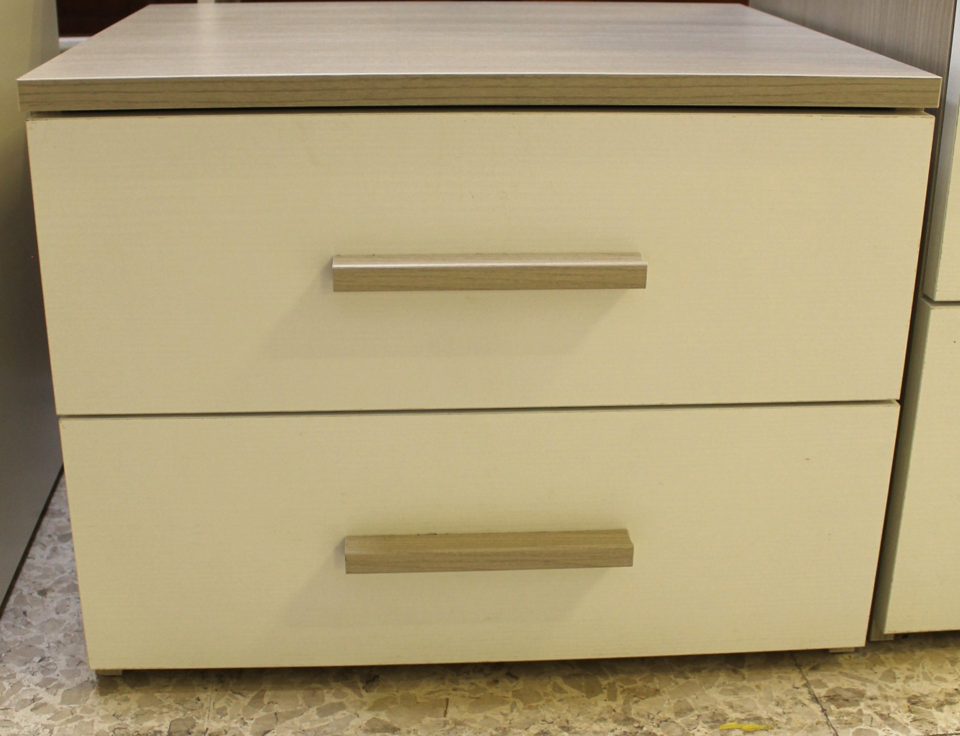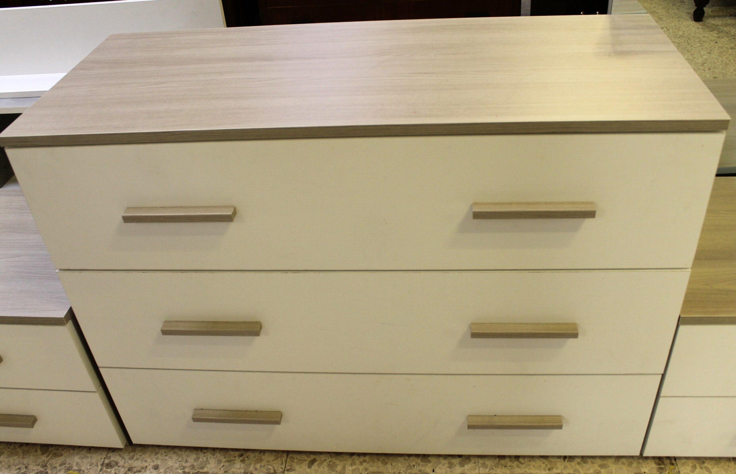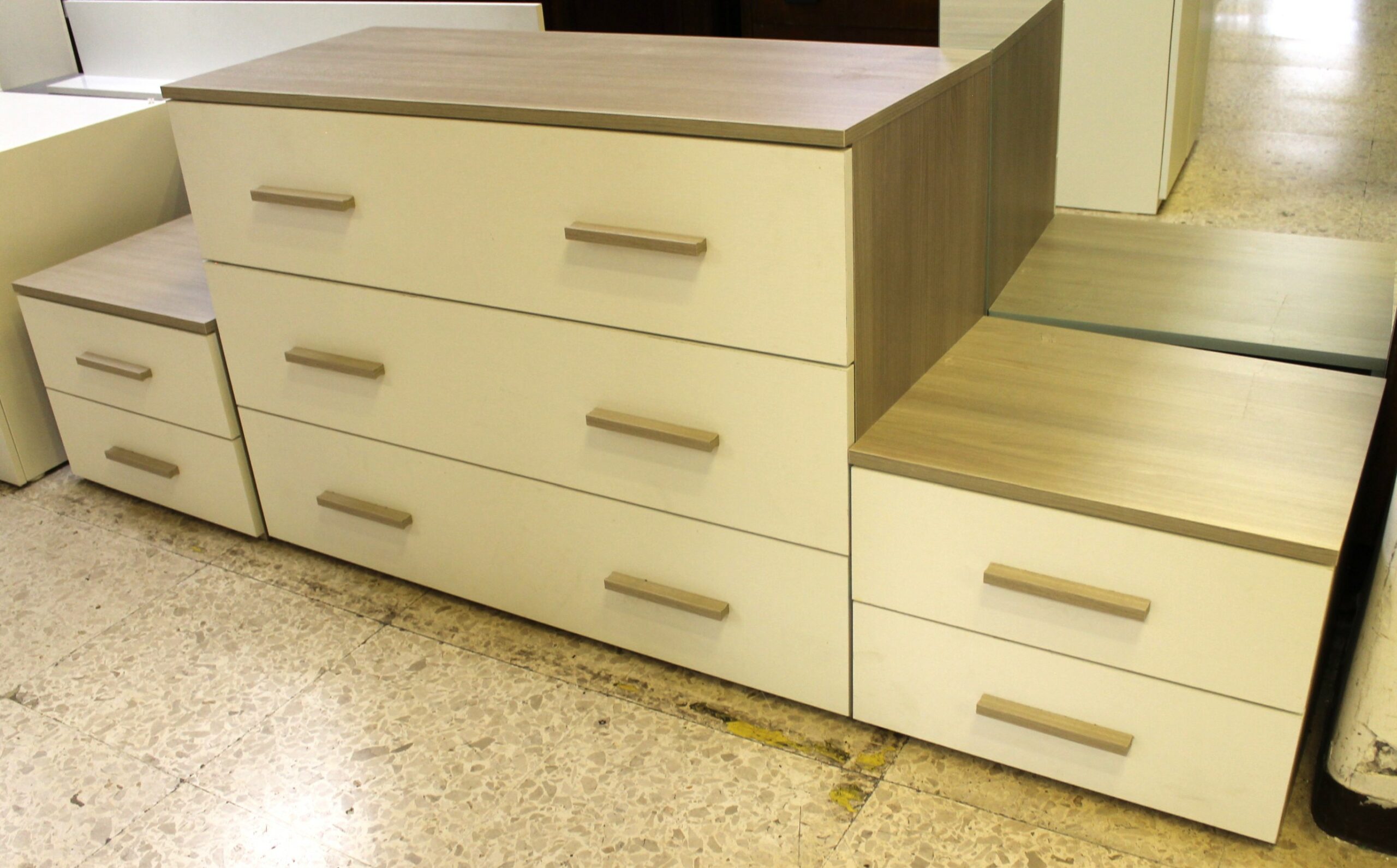 Arredo camera da letto: comò più due comodini più uno specchio. Bianco e color legno chiaro. In ottimo stato.