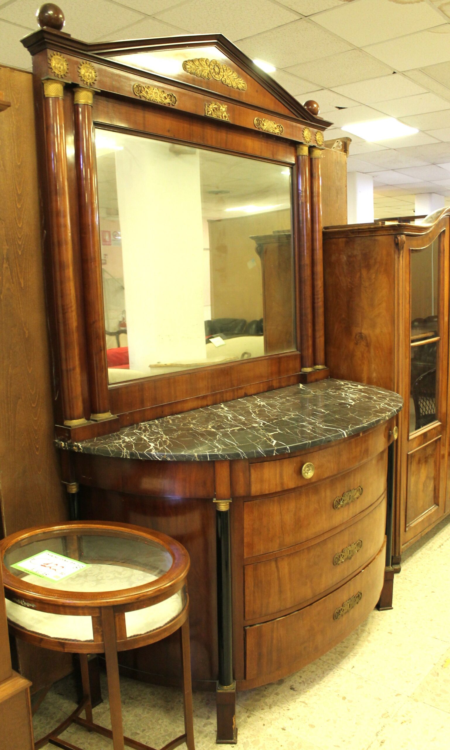 Mobile consolle stile Impero con piano in marmo + quattro cassetti e uno specchio.