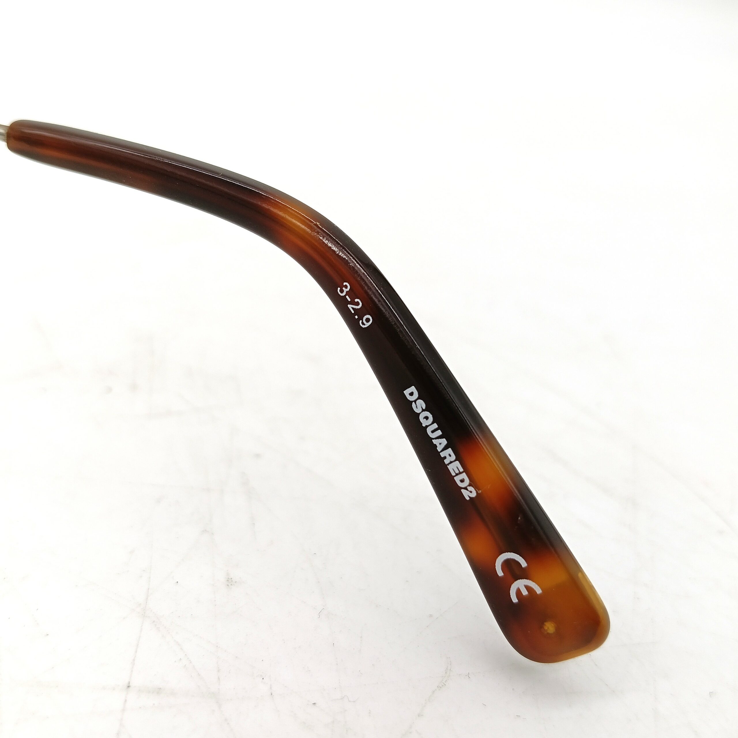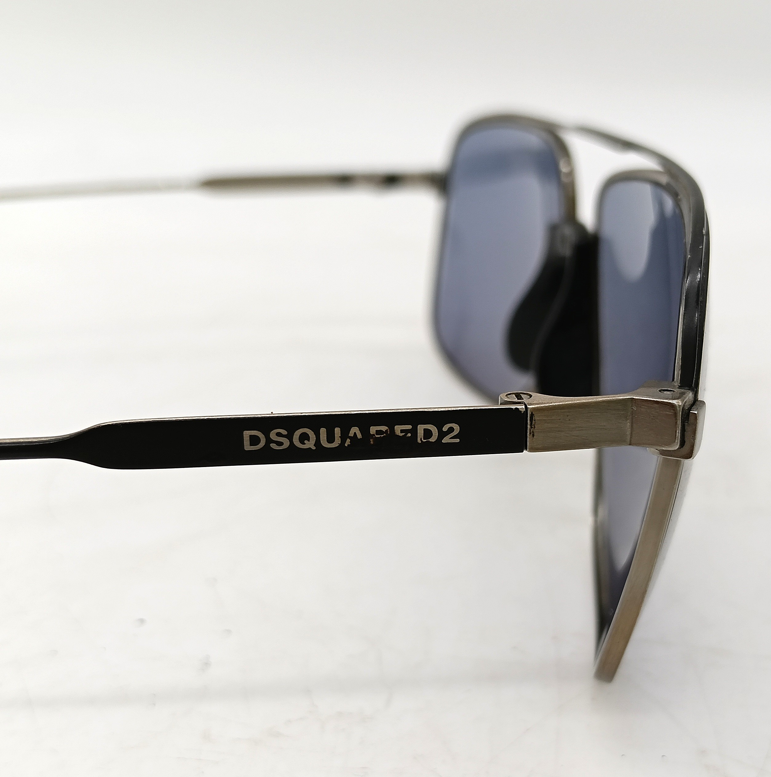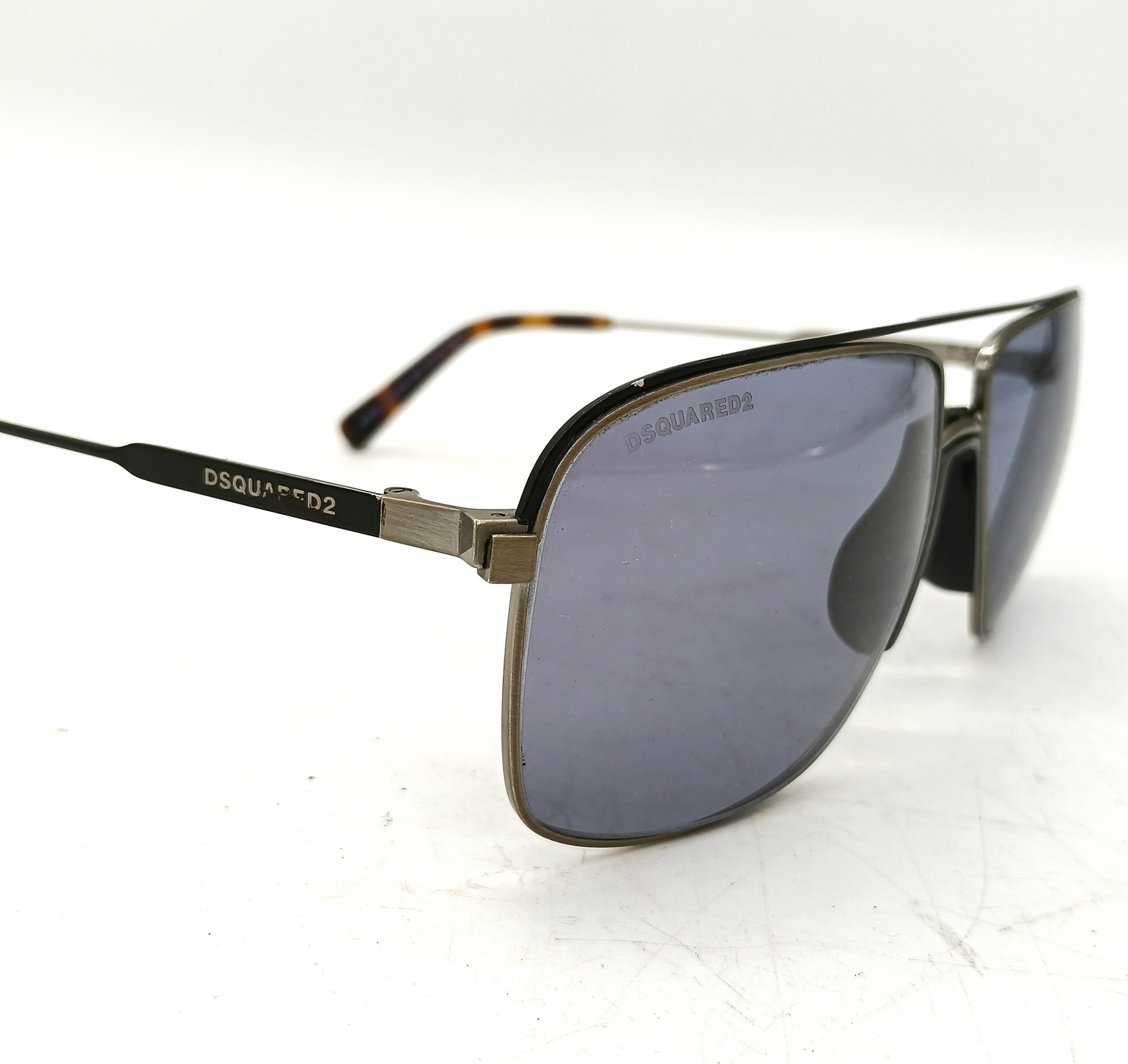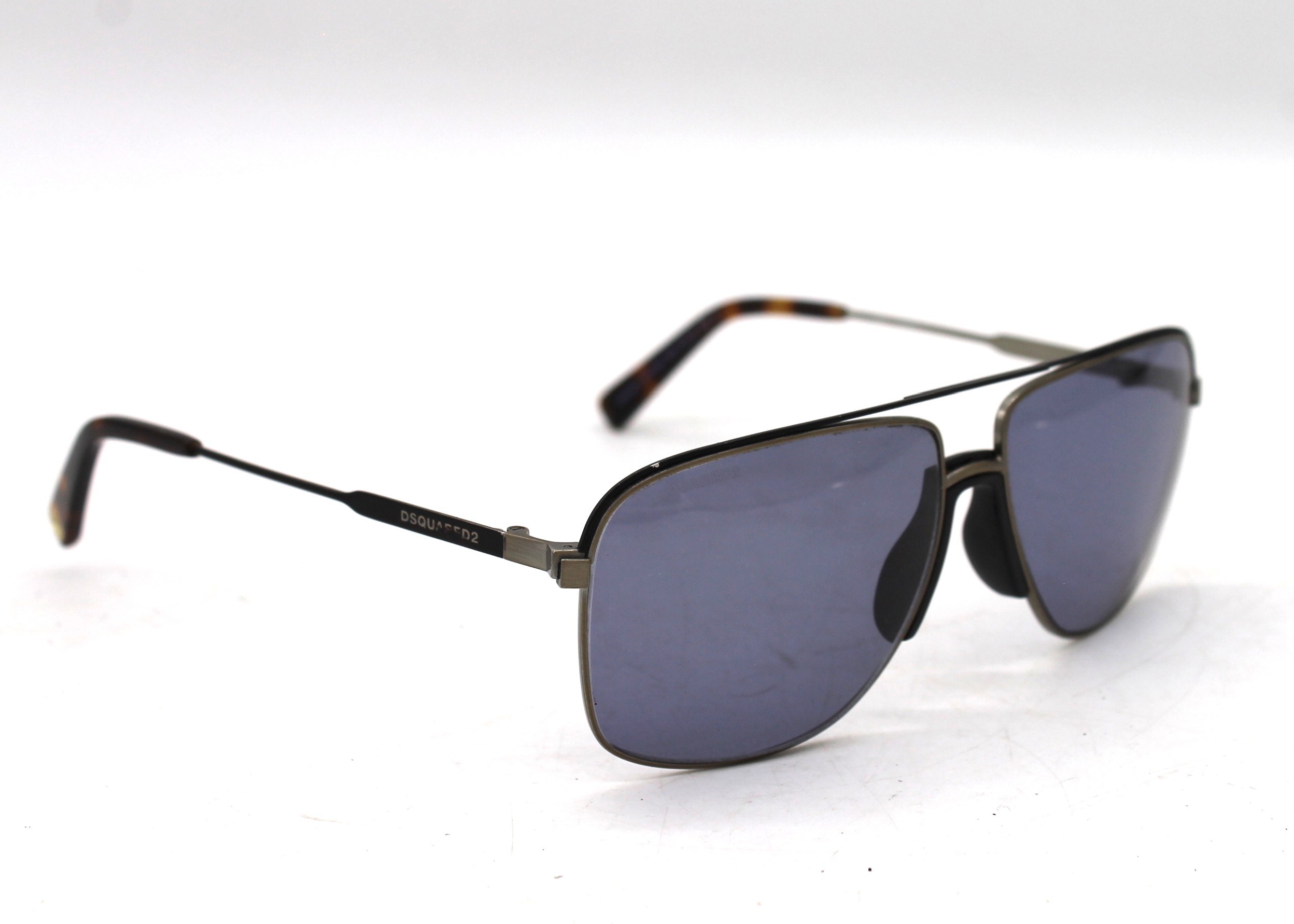 Occhiali da sole Disquared2 Barney quadrati, lenti viola, asticelle tartarugate, montatura in metallo.