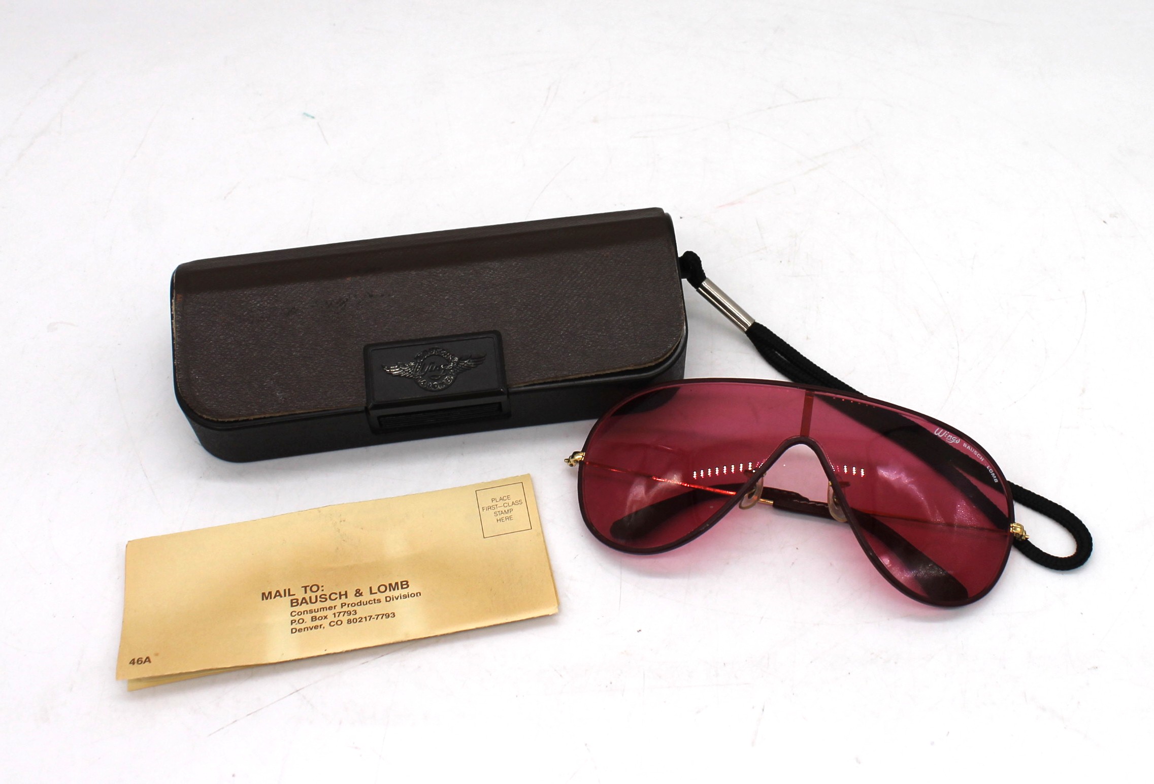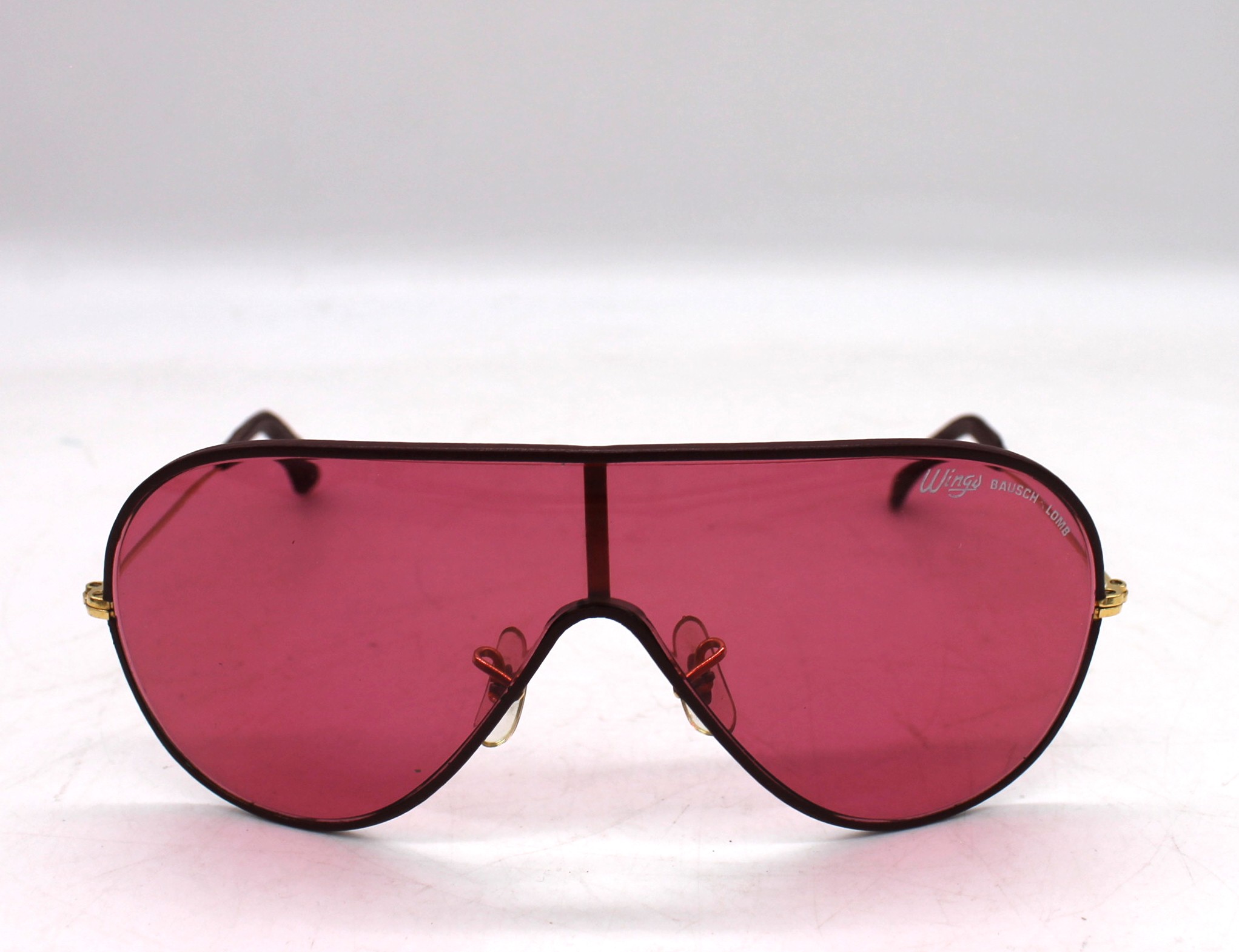 Occhiali da sole RAYBAN wings Bausch & Lomb Vintage montatura dorata, lenti rosa, con custodia.
