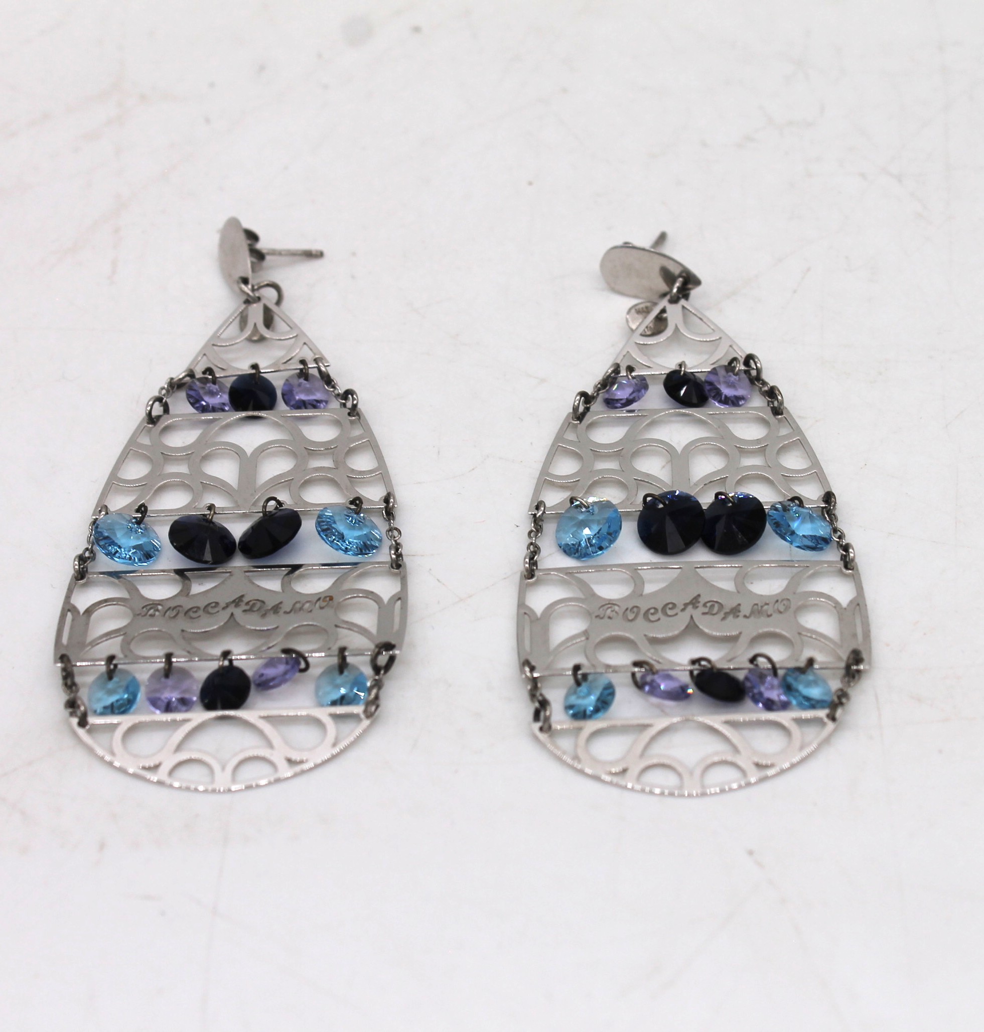 Orecchini Boccadamo in argento, pendenti a goccia con pietre colorate.
