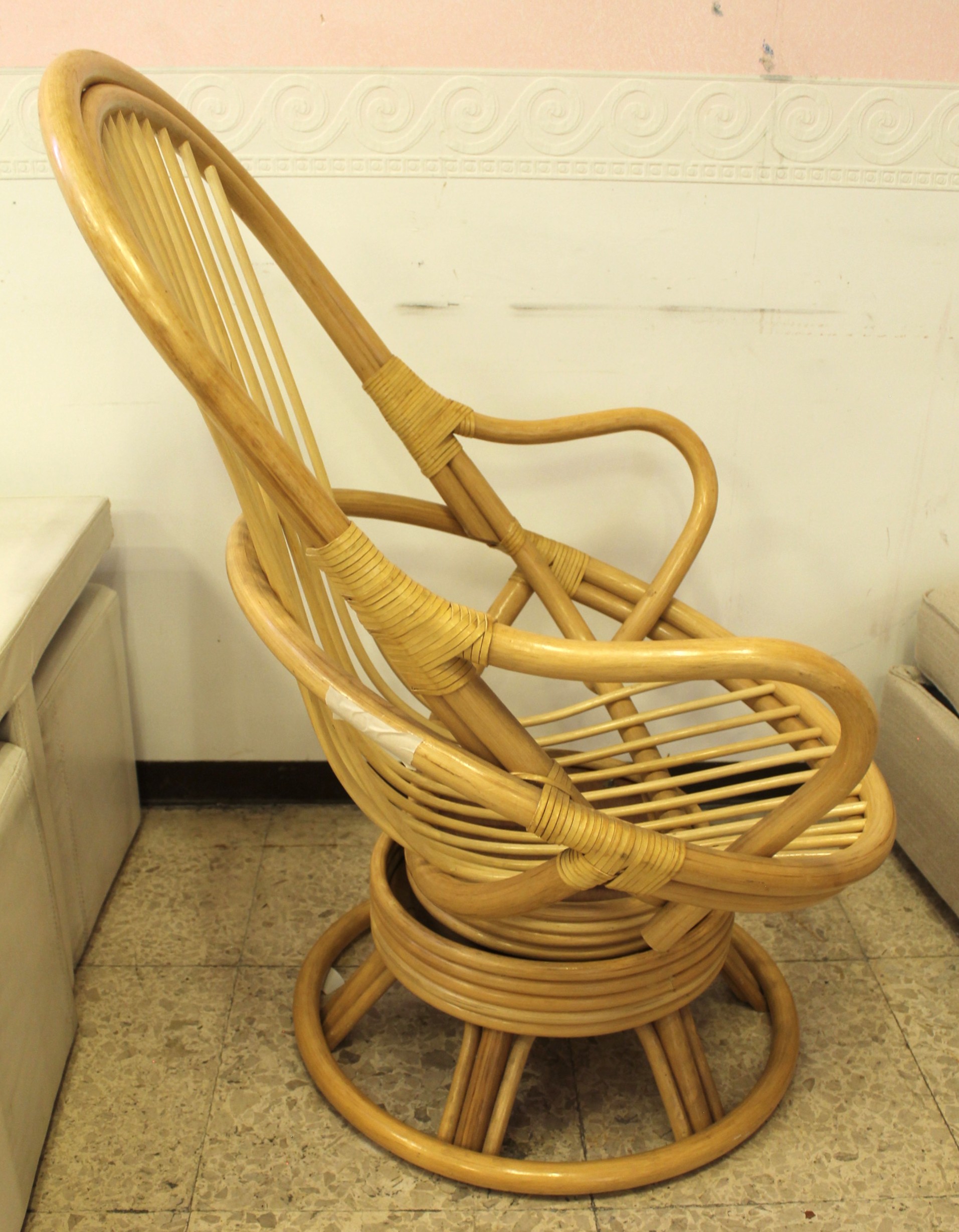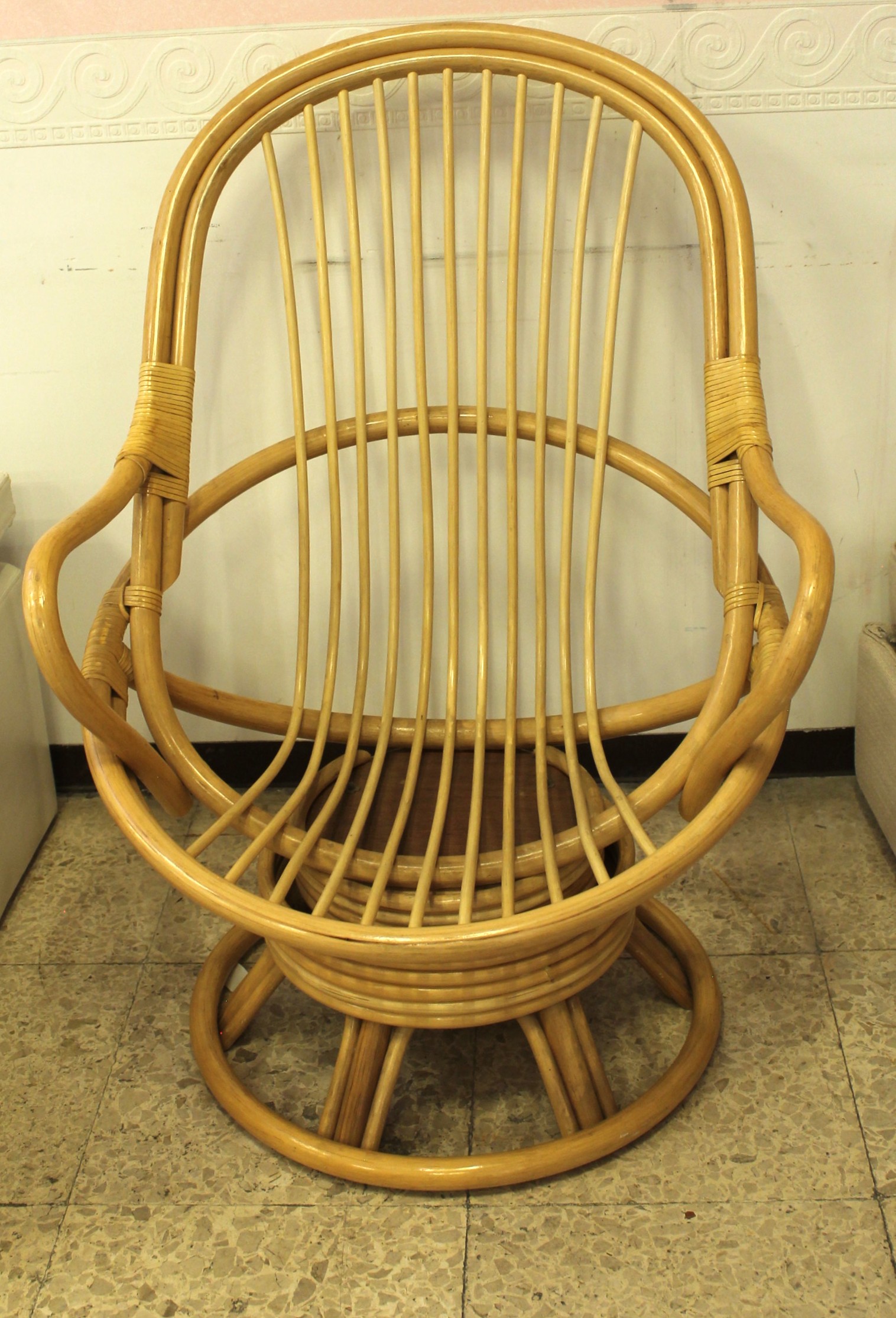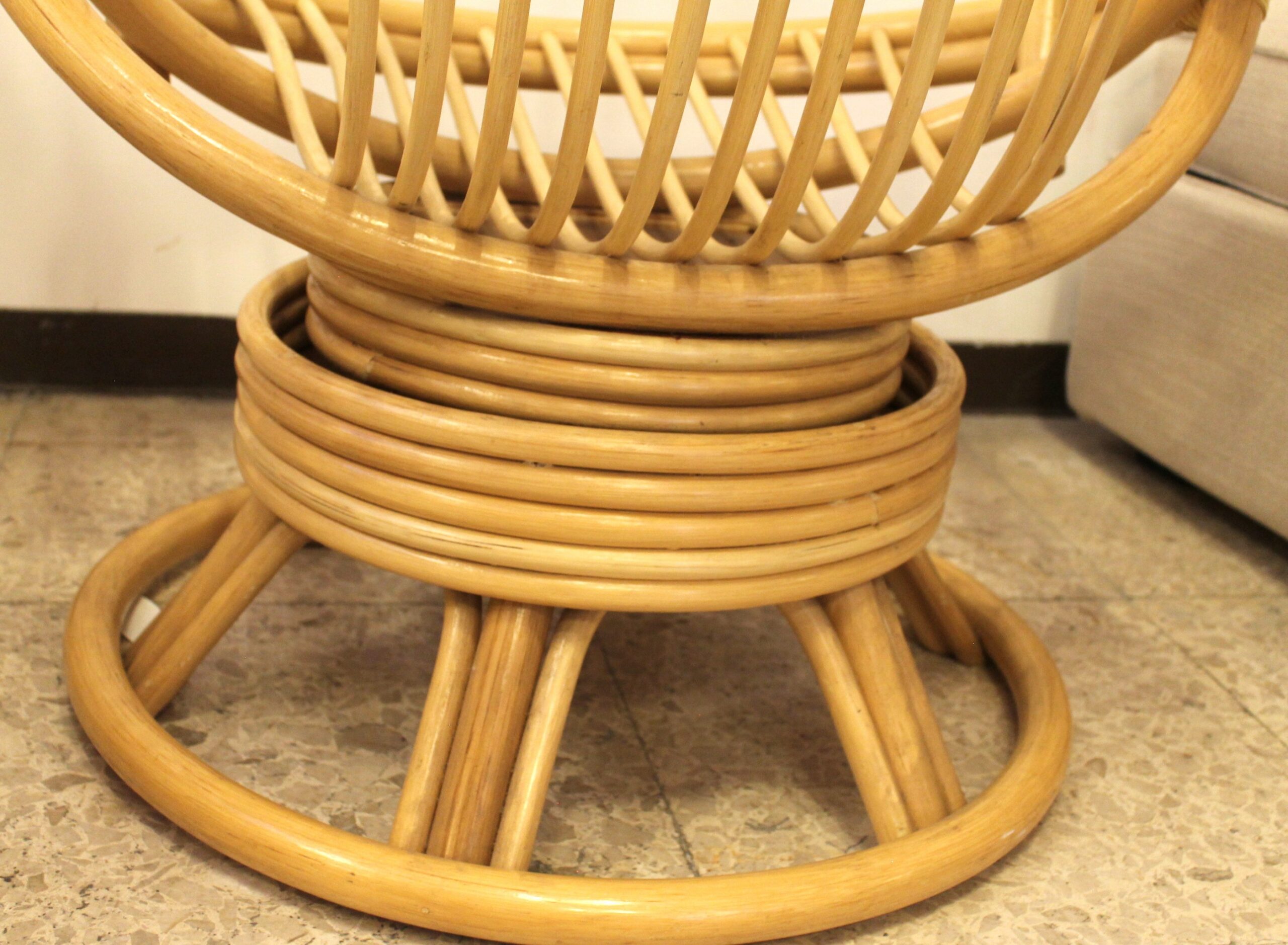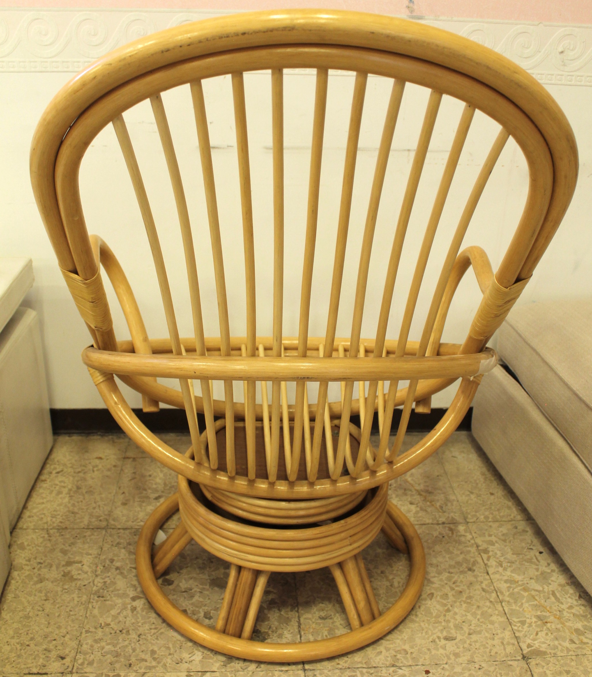 Poltrona in bamboo con base girevole più cuscino. In perfetto stato.