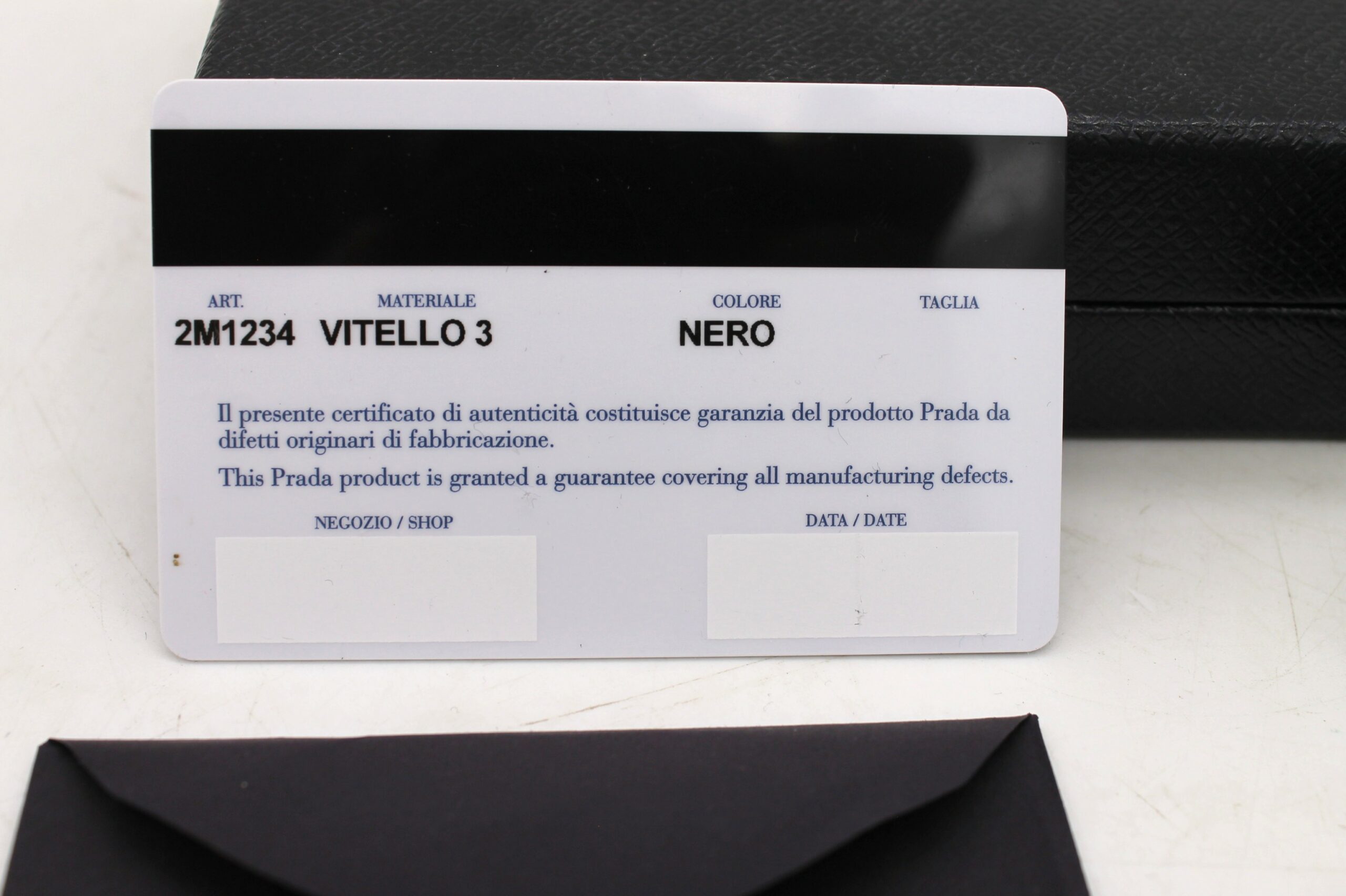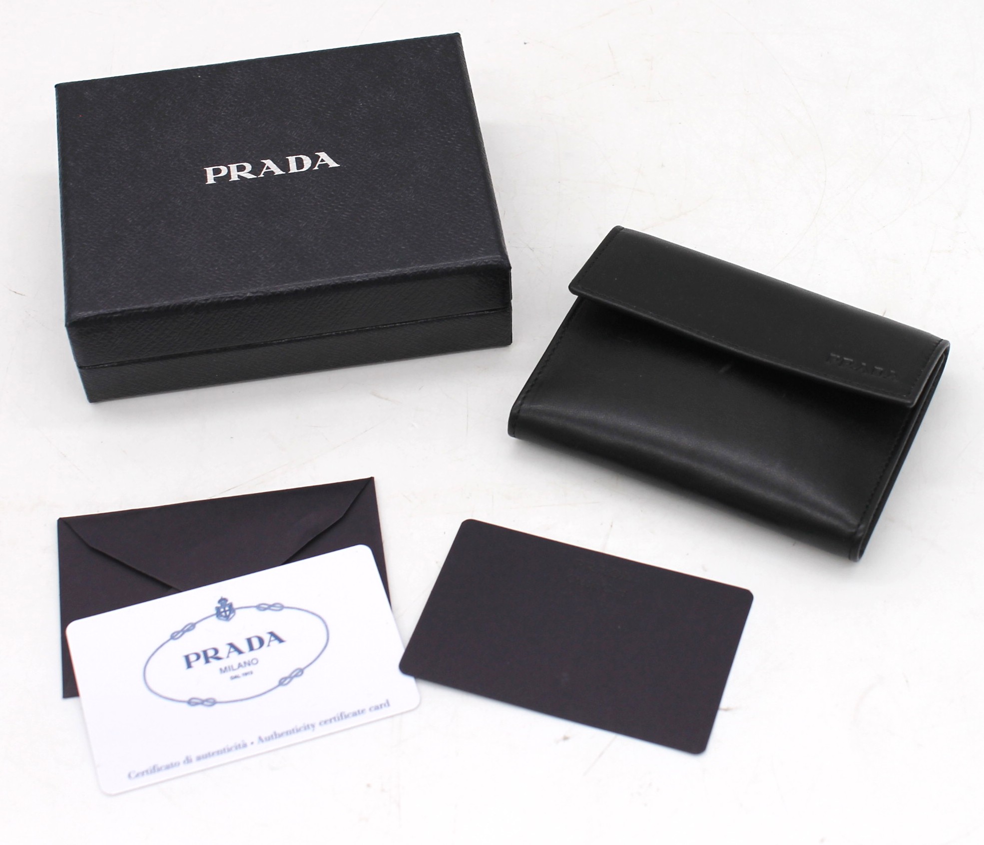 Portafoglio Prada nero in pelle + scatola + certificato di autenticità. Modello 2M1234.