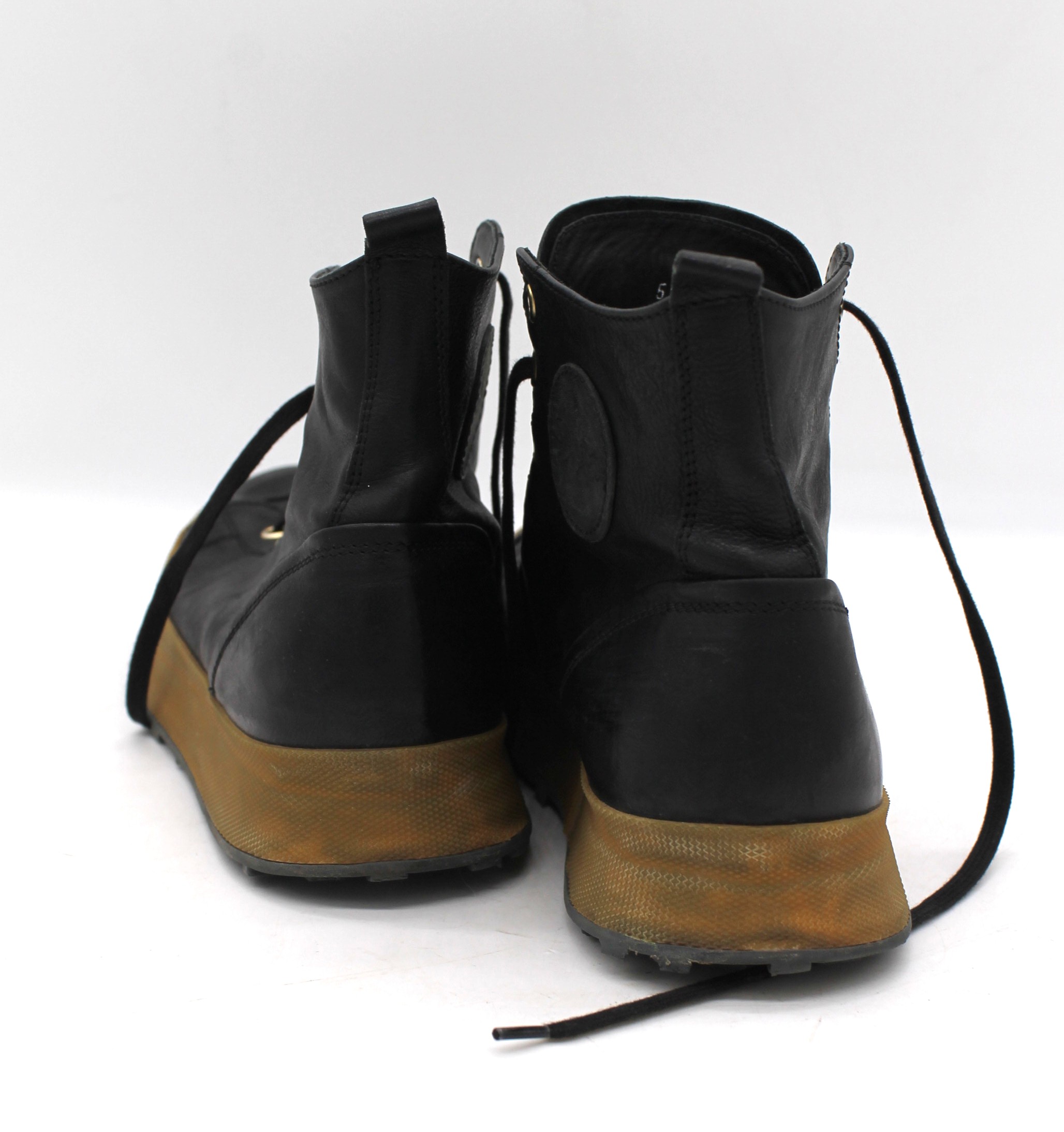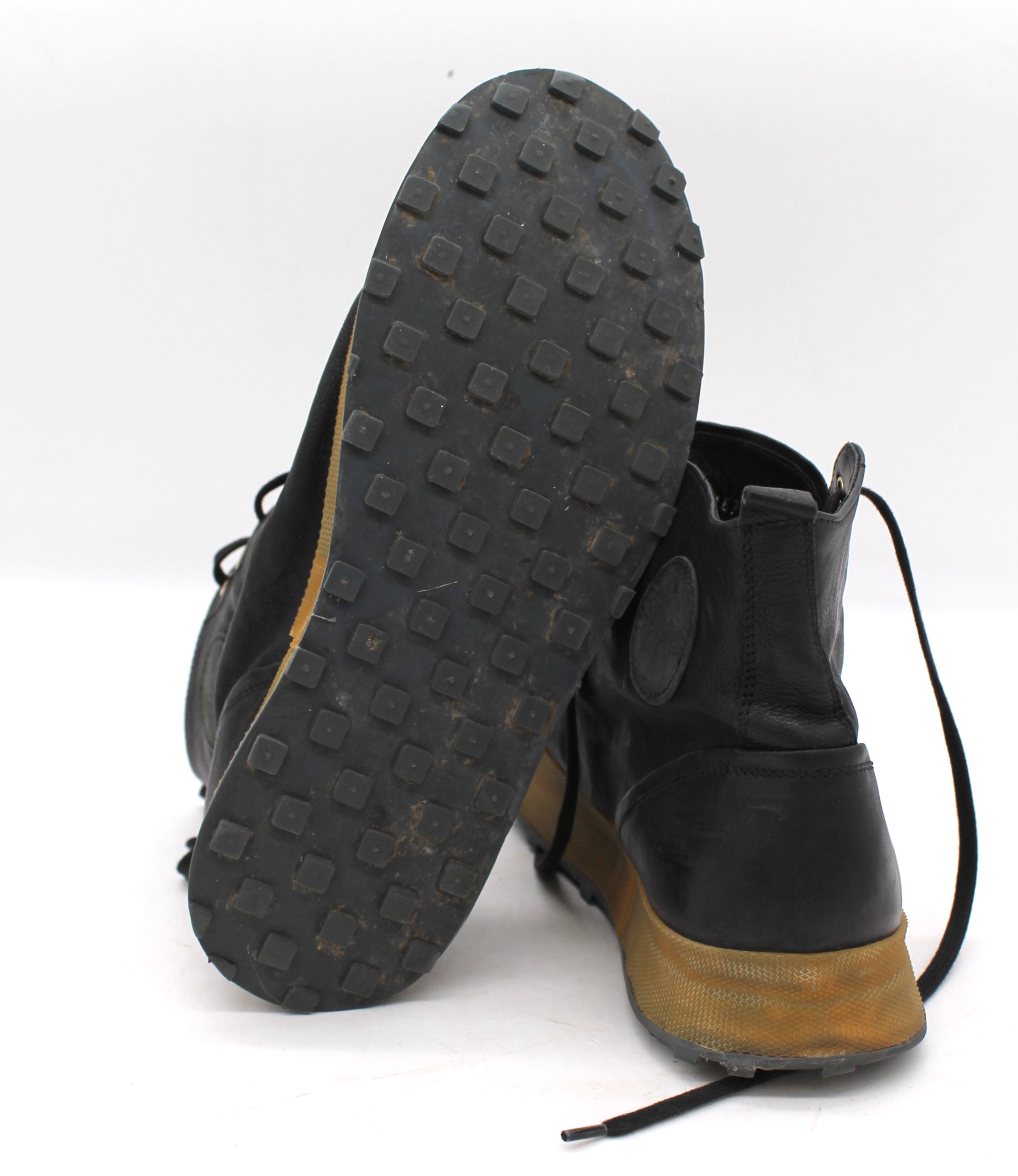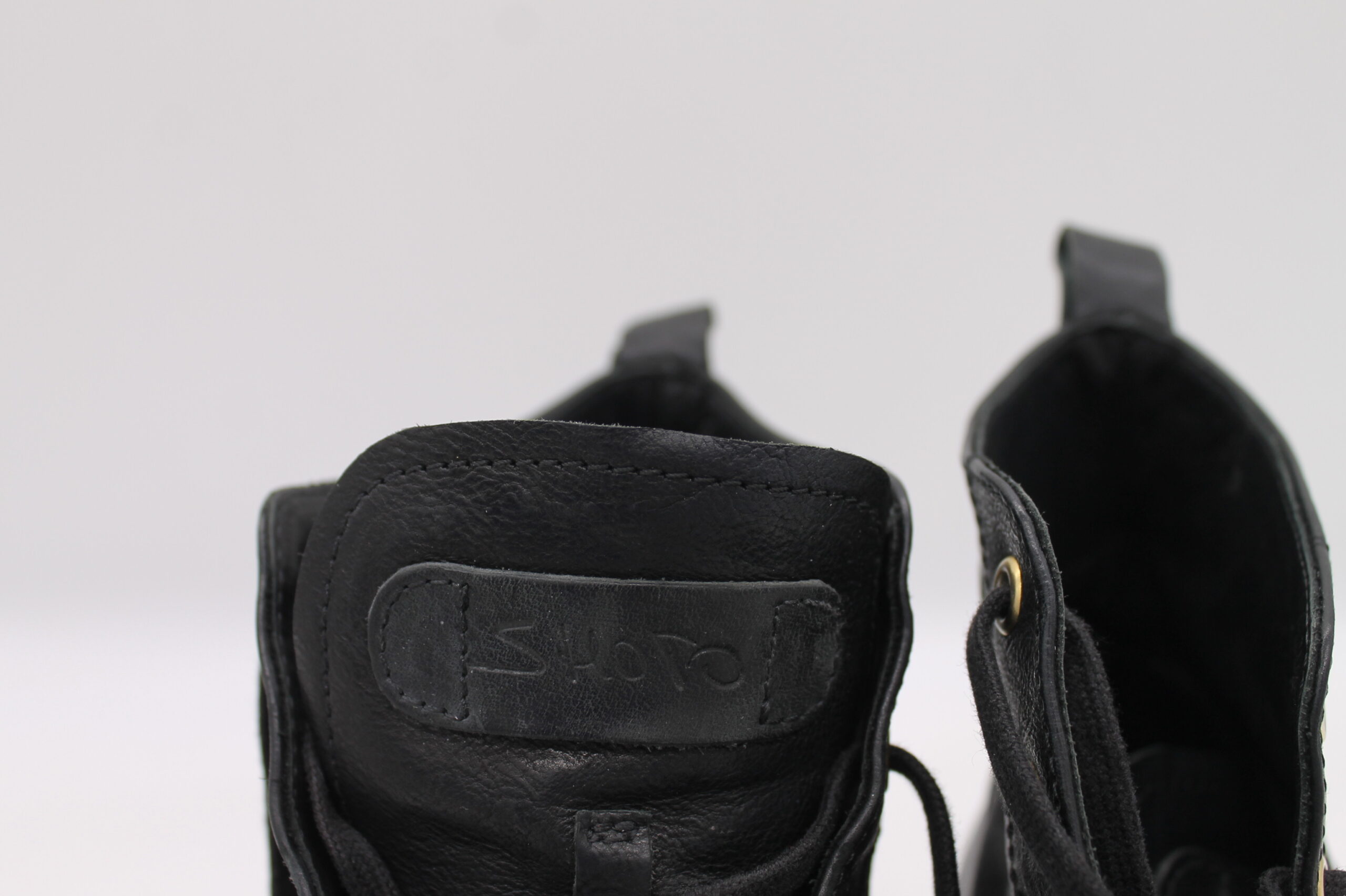 Scarpe stivaletto Shoto nere in pelle, lacci, gomma marrone.