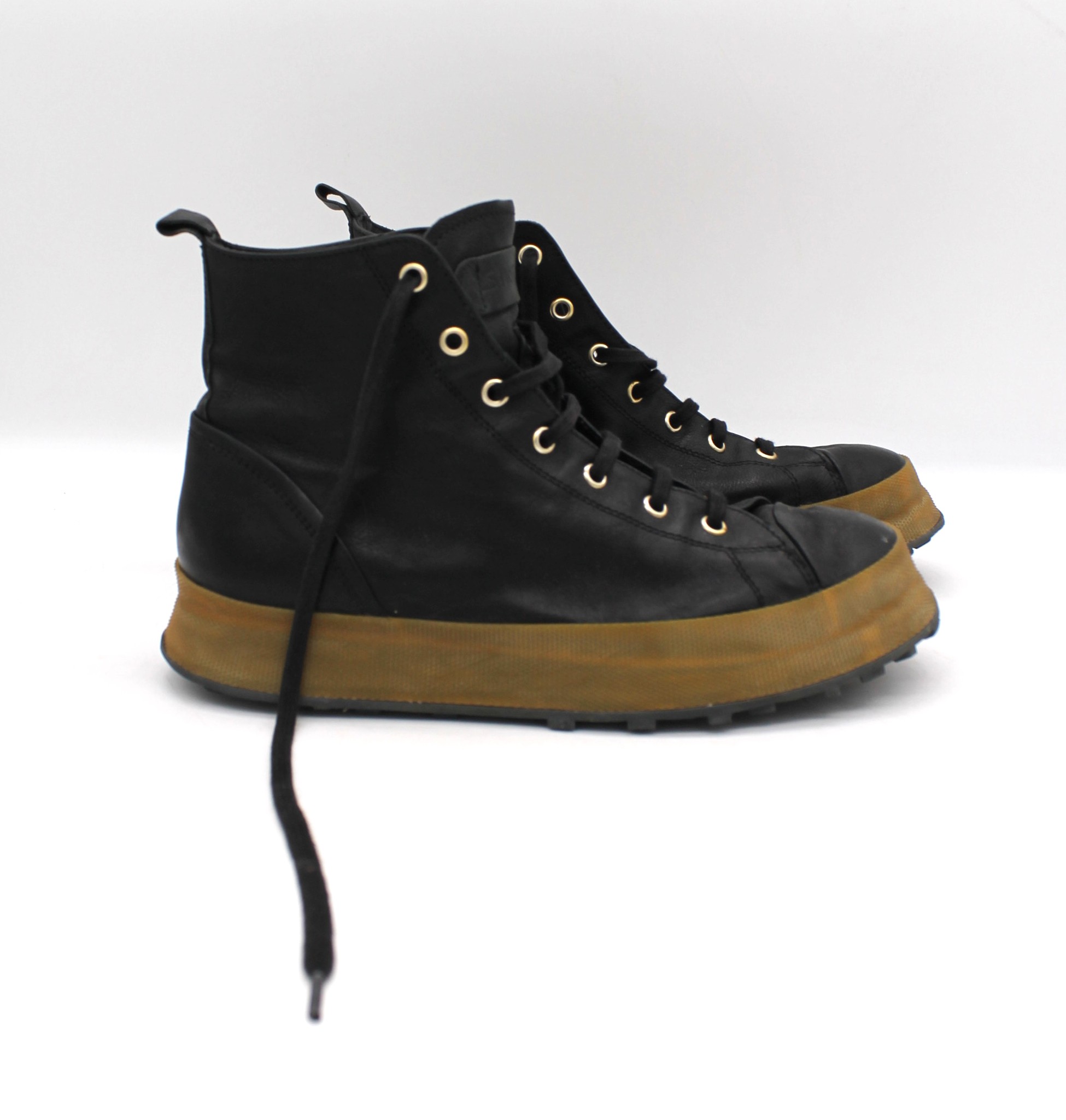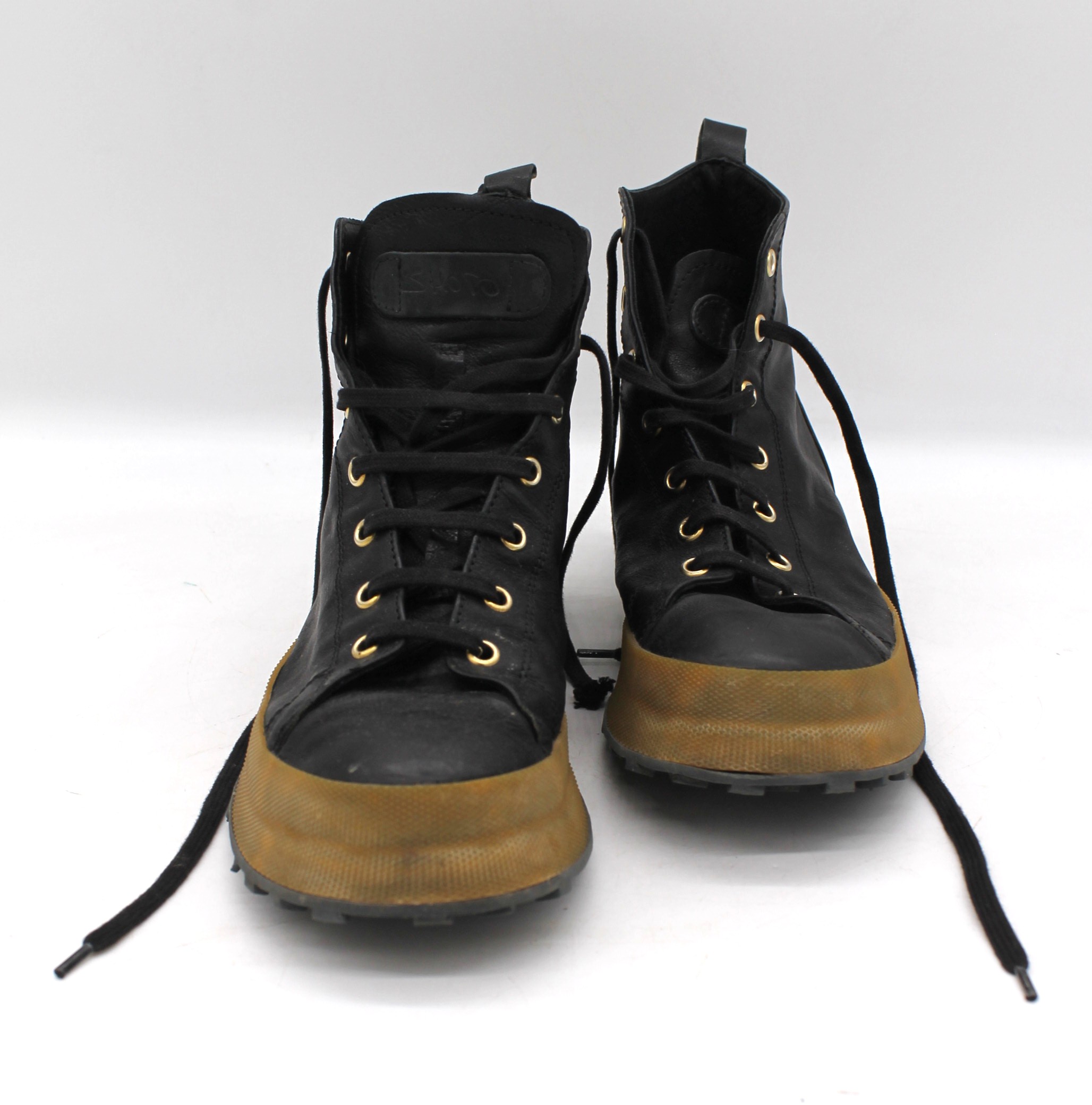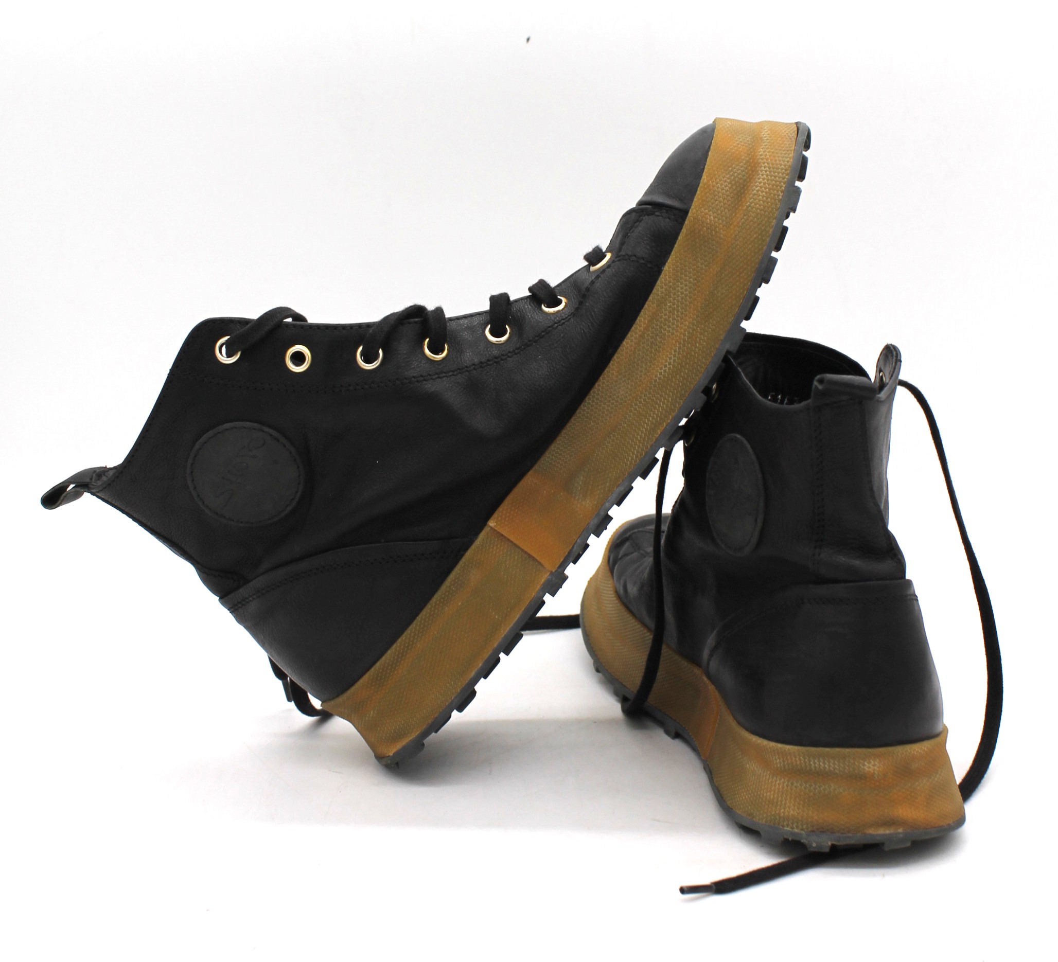 Scarpe stivaletto Shoto nere in pelle, lacci, gomma marrone.