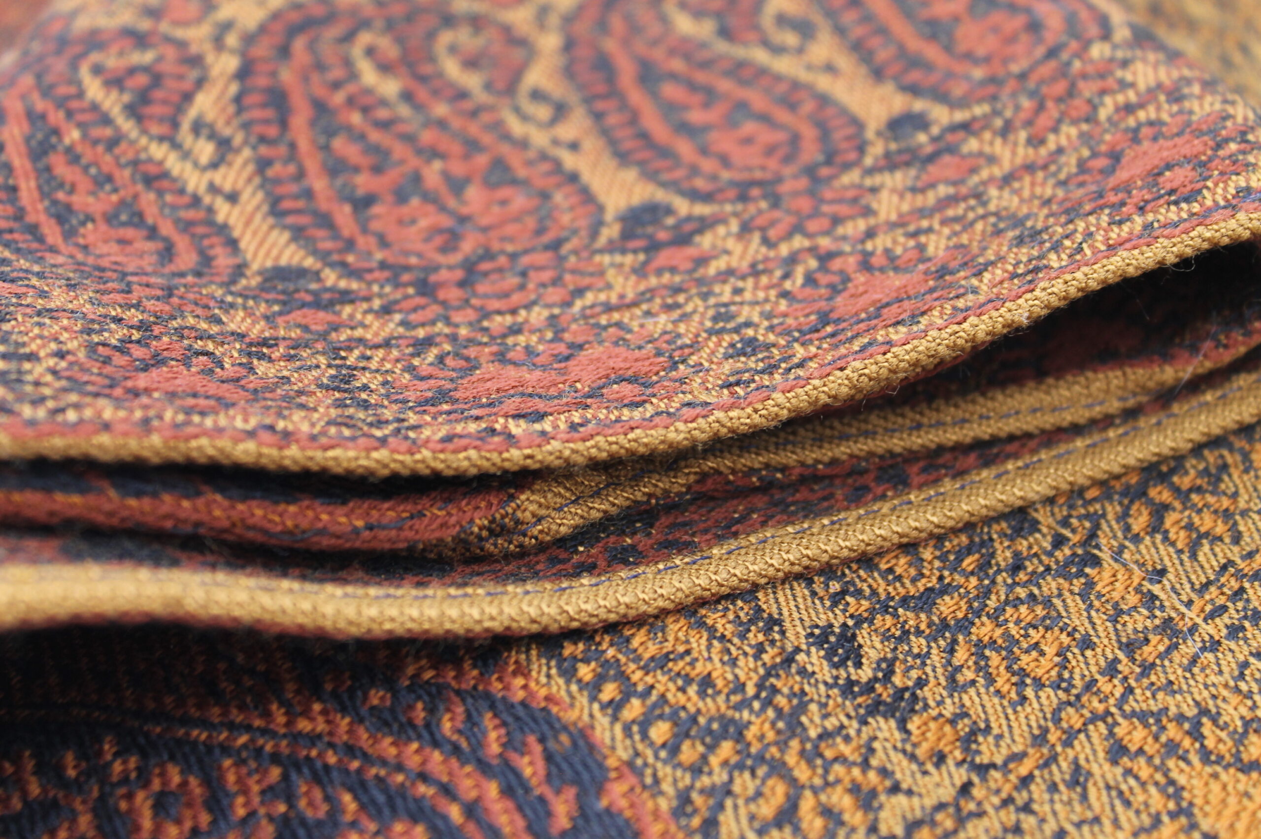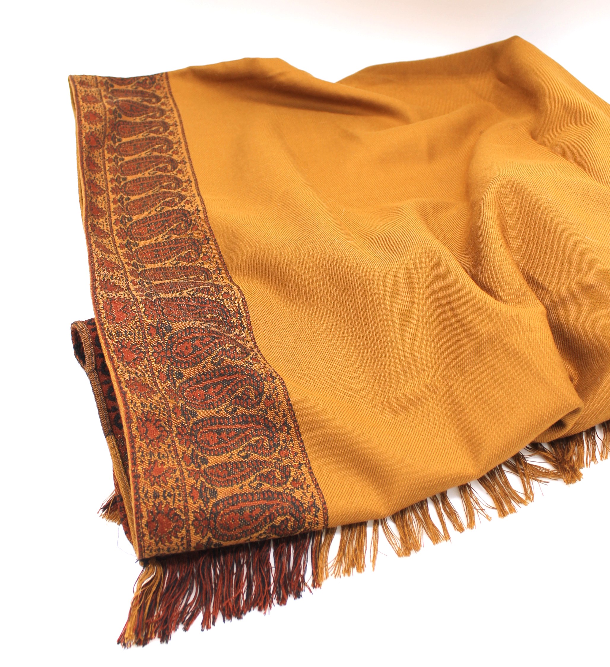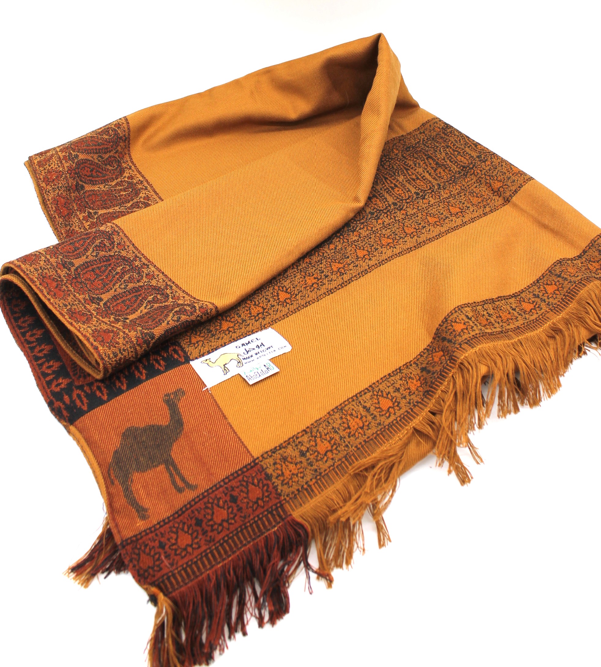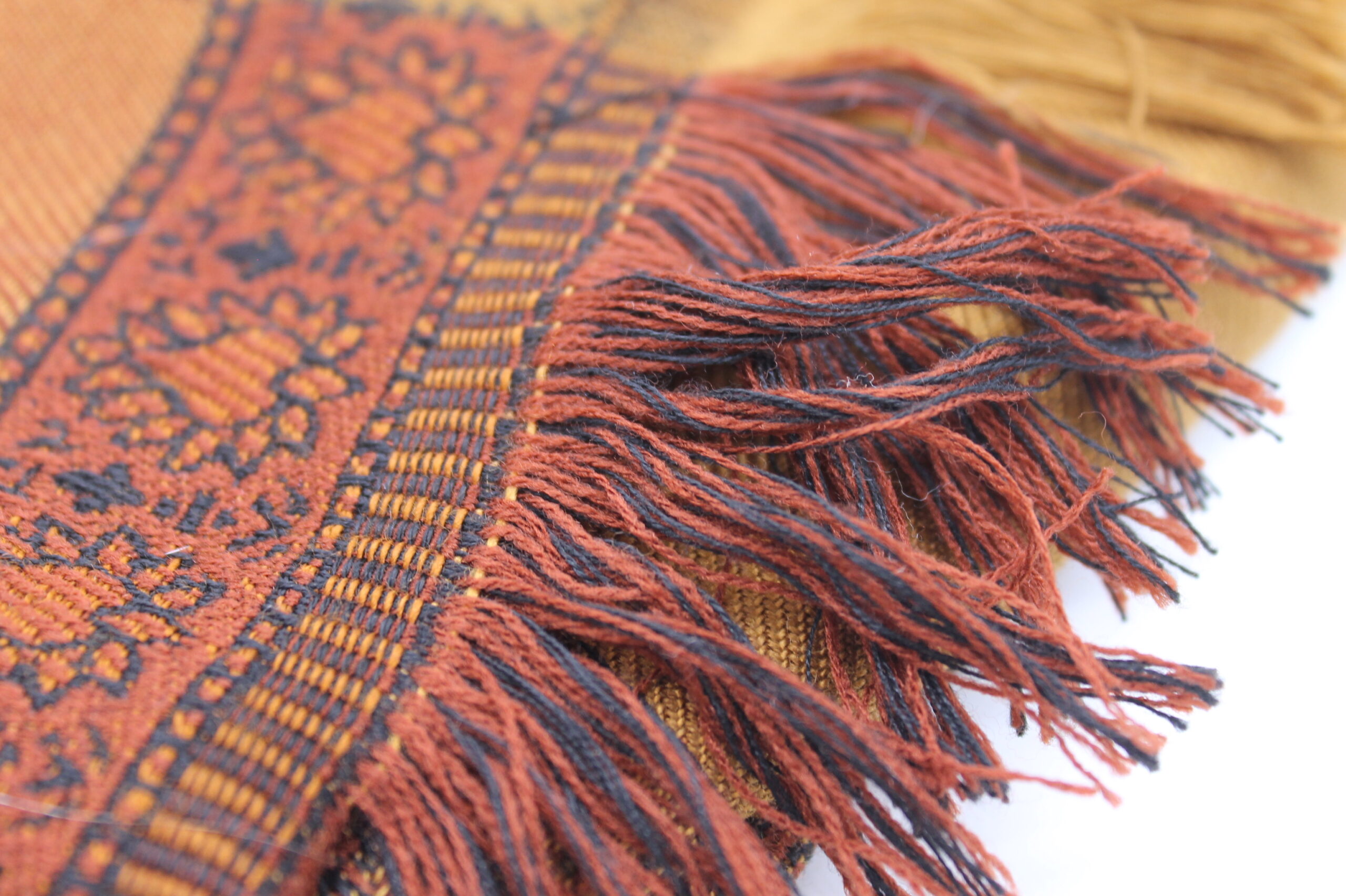 Scialle vintage in lana di cammello, molto grande, sui toni del marrone.