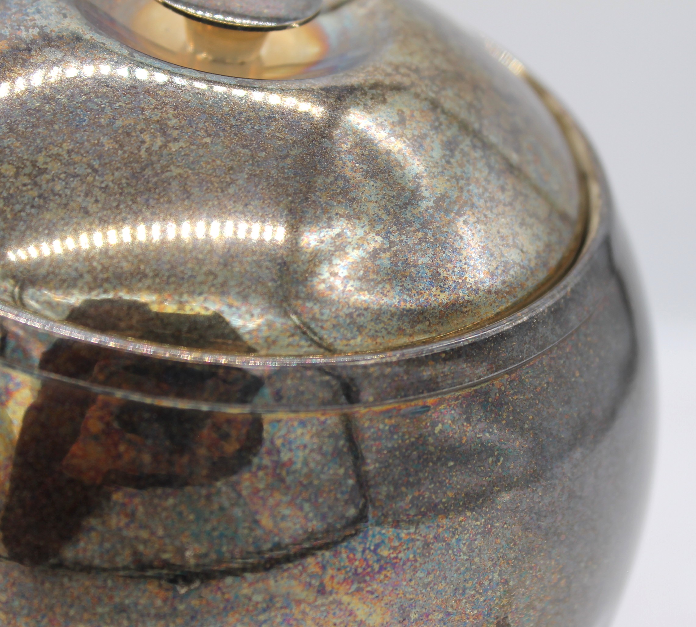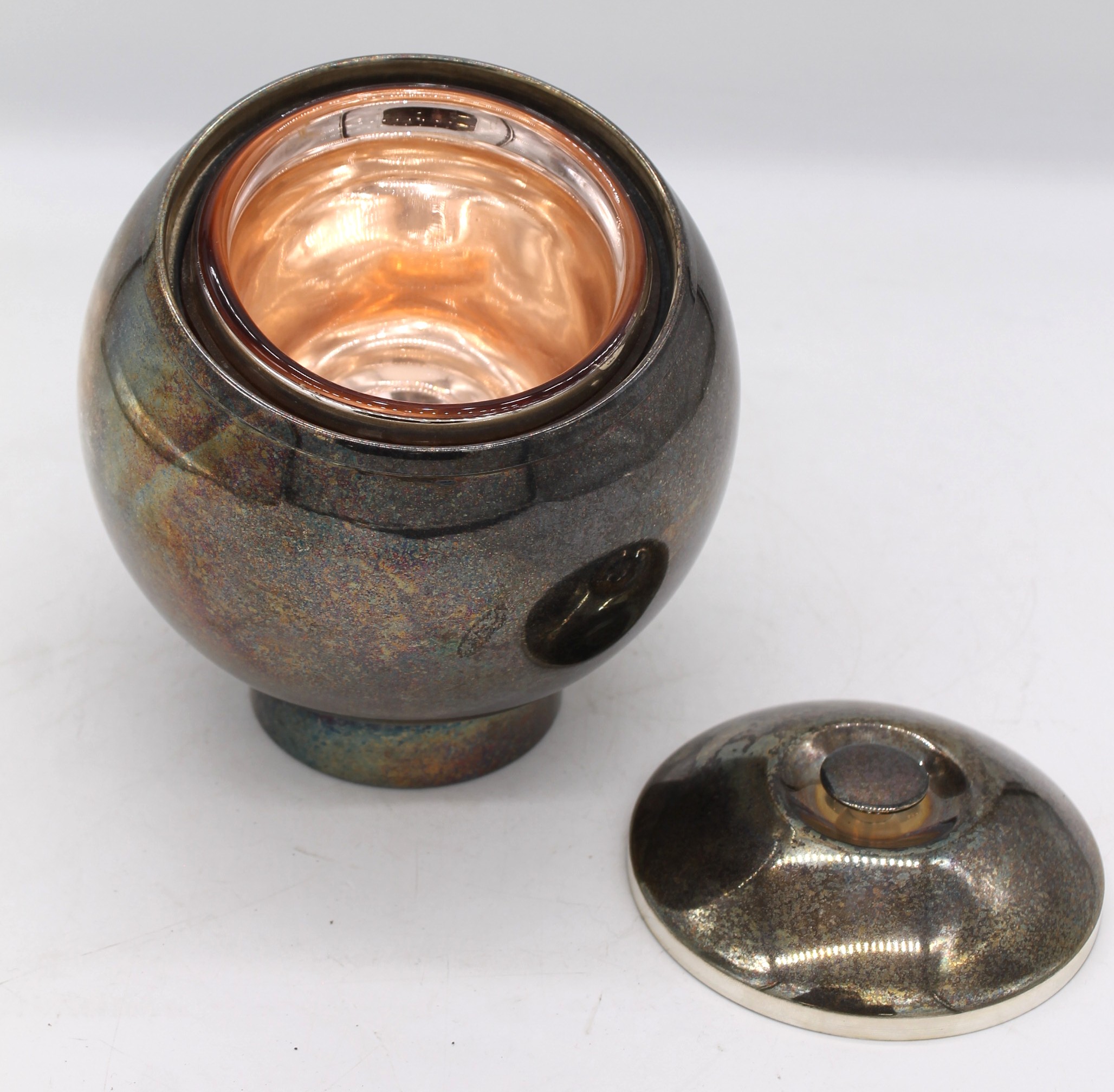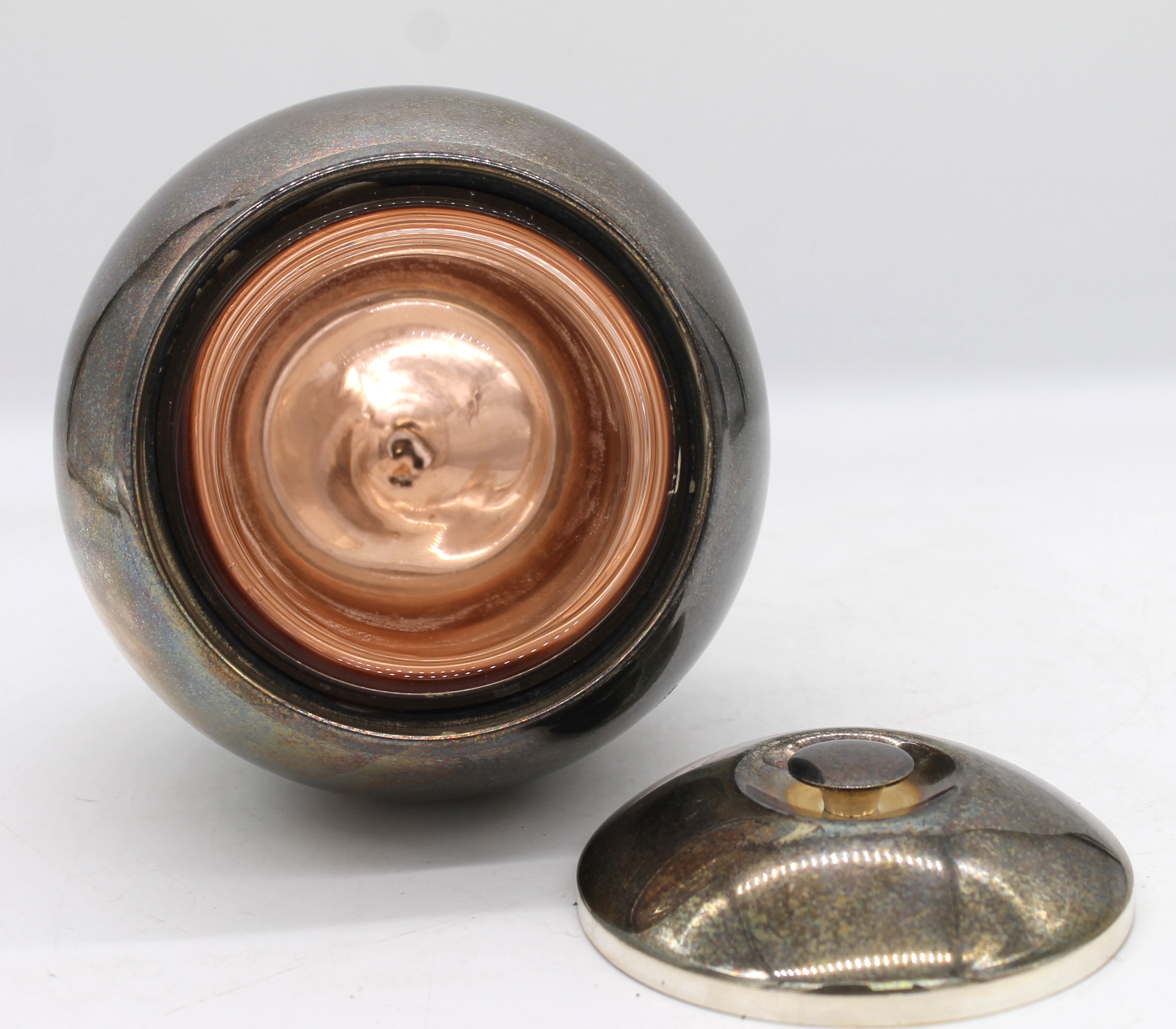 Ha un bellissimo interno in vetro con finitura in rame lucido. La finitura cromata e la forma sinuosa esaltano il riflesso della luce.