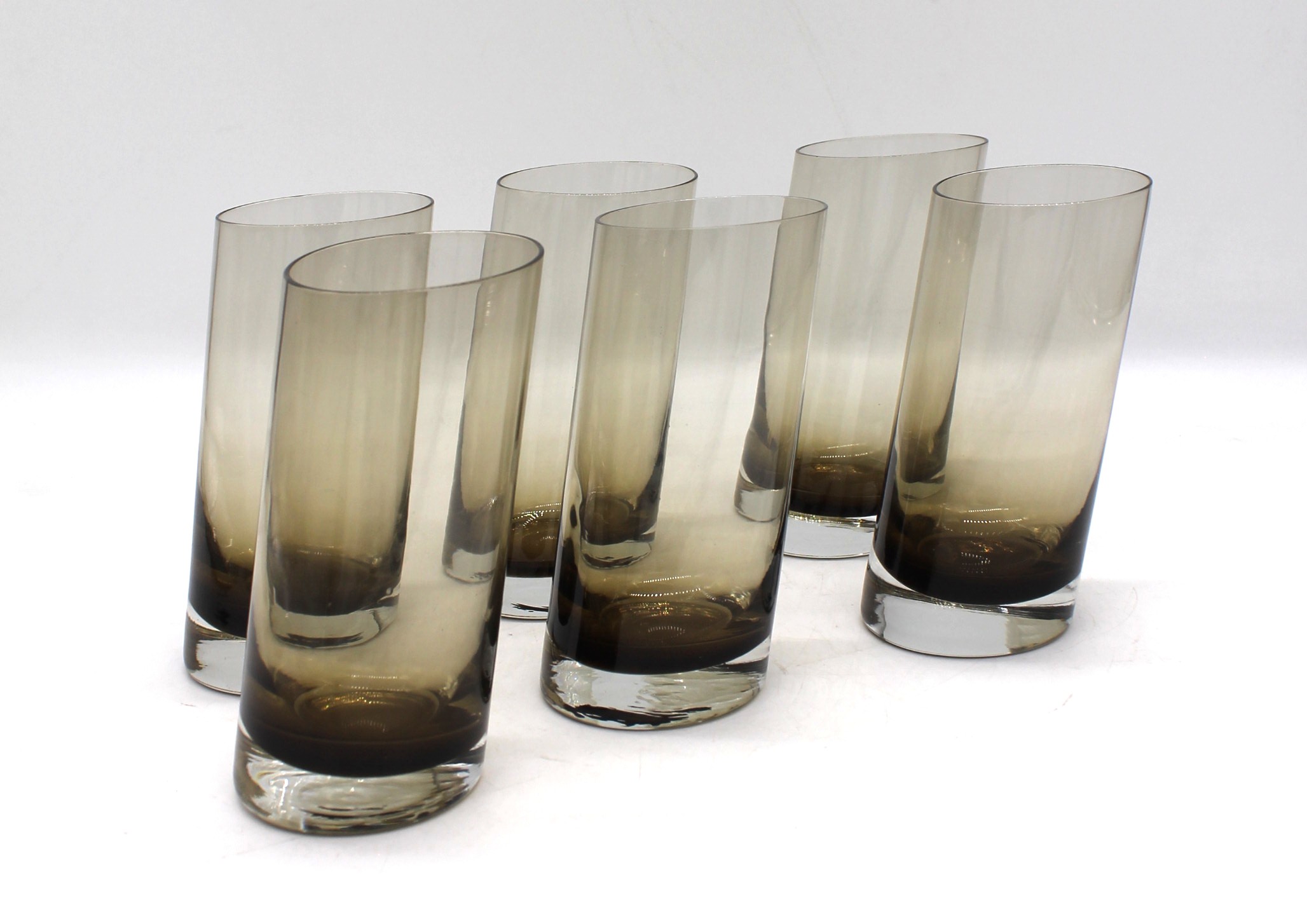Servizio bicchieri da sei in vetro di Murano fatti a mano. Color fumè. In ottimo stato.