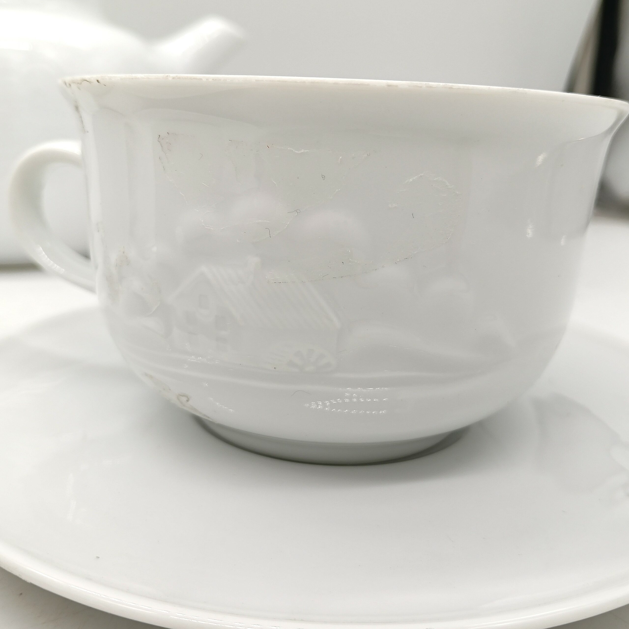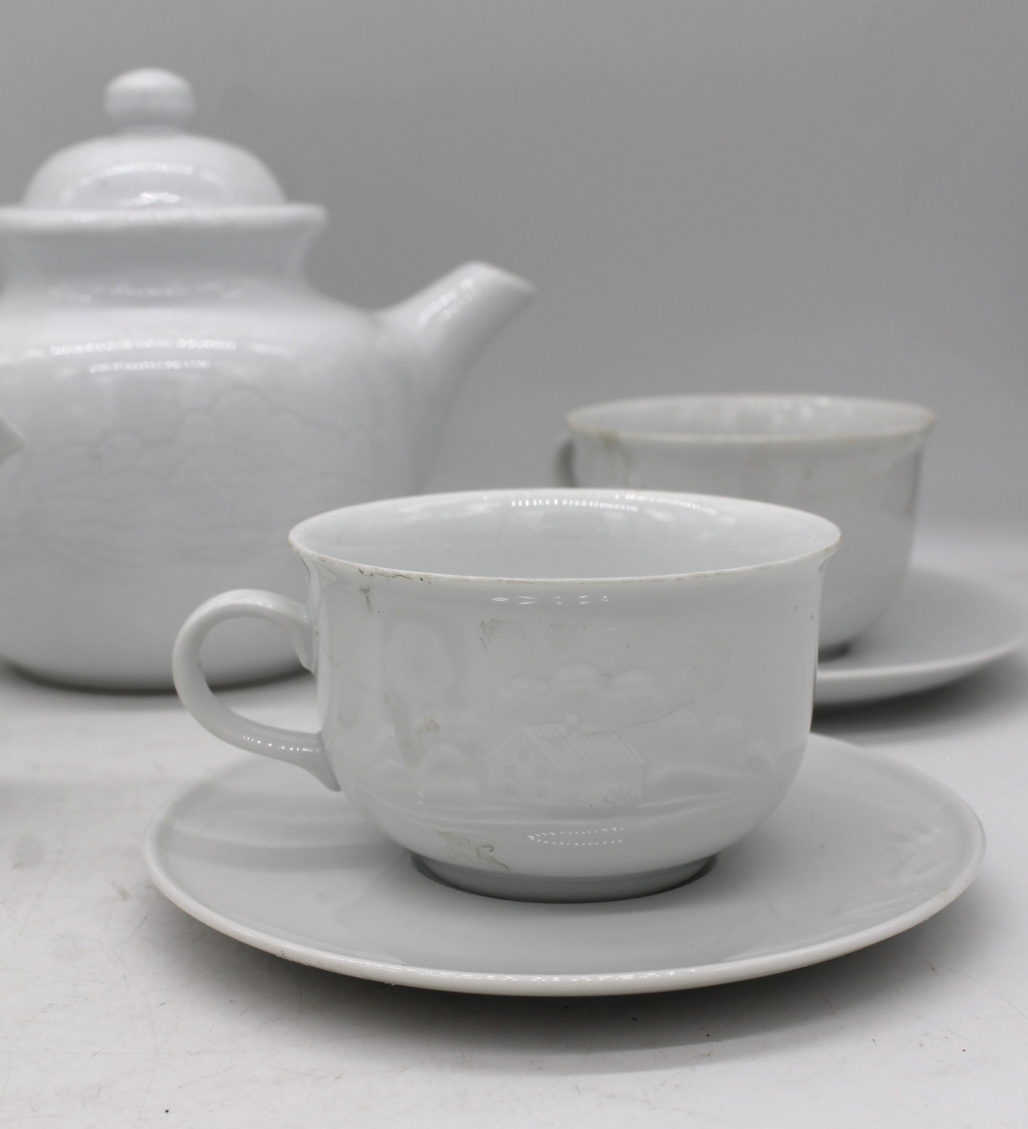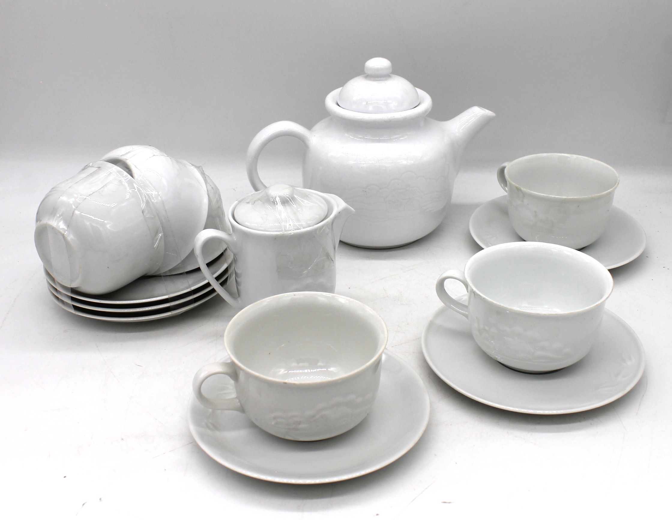Servizio da the del Mulino Bianco di colore bianco composto da 14 pezzi: