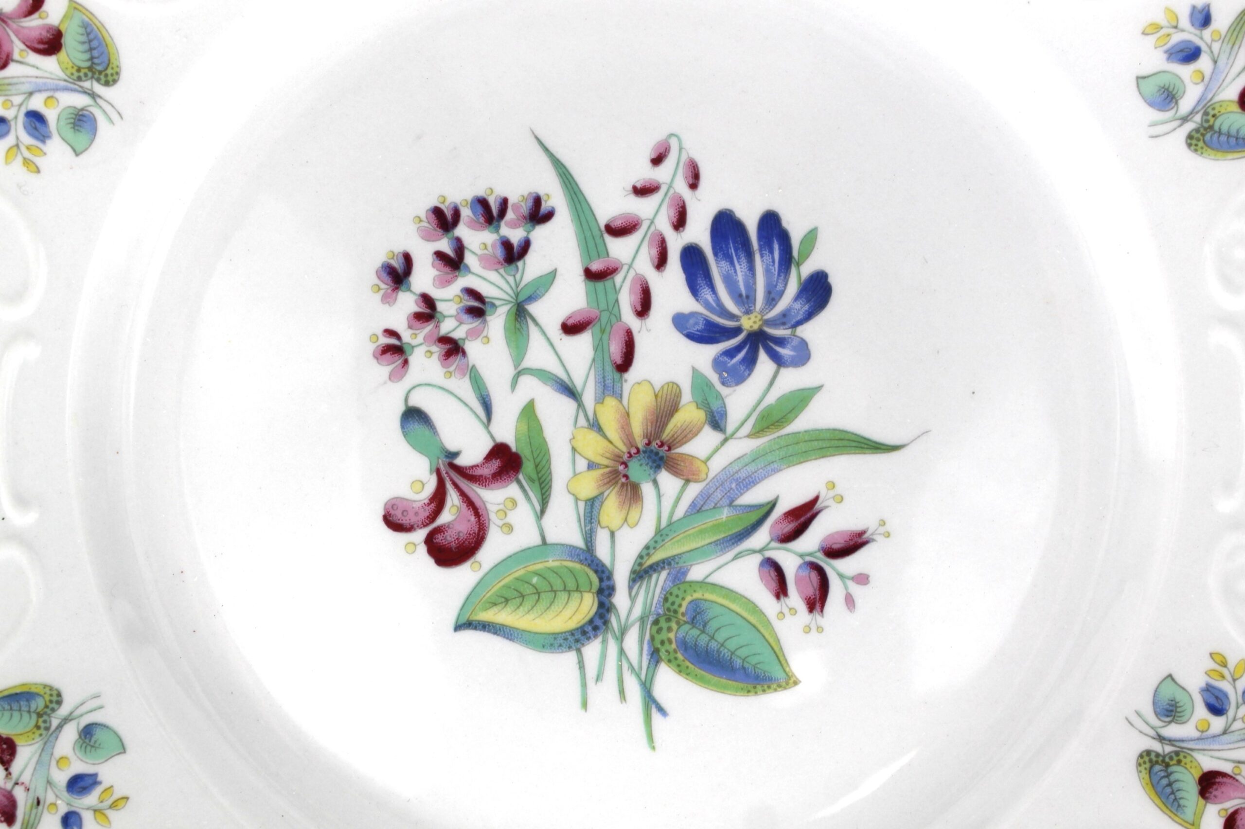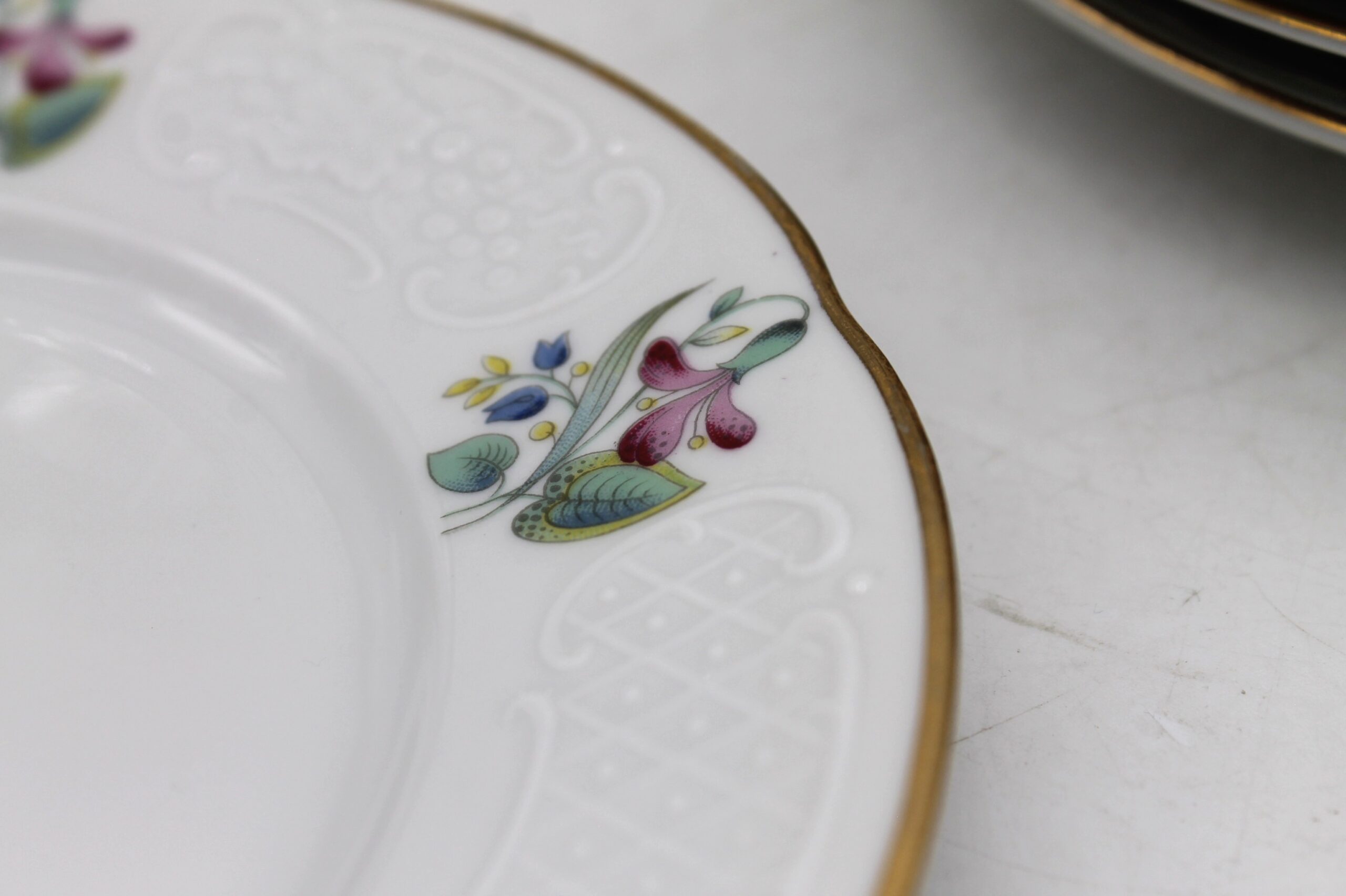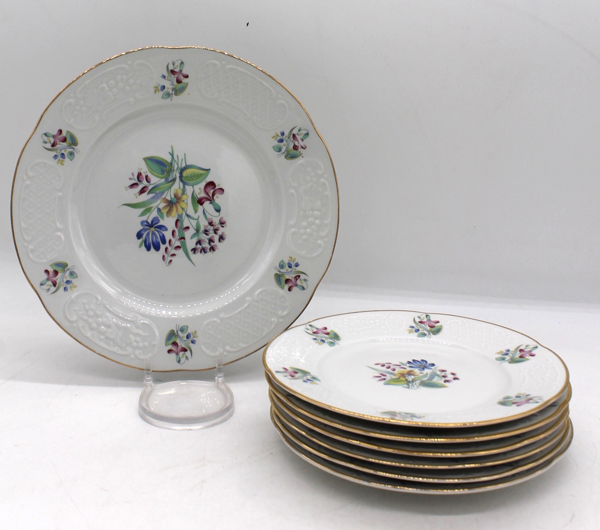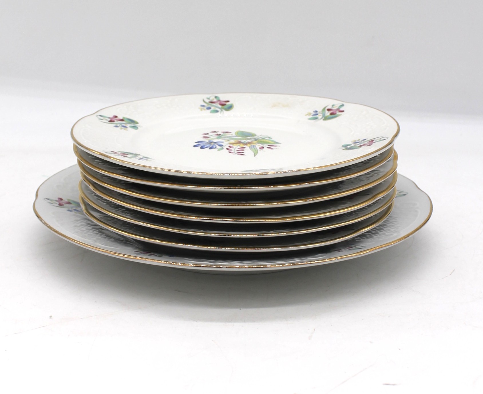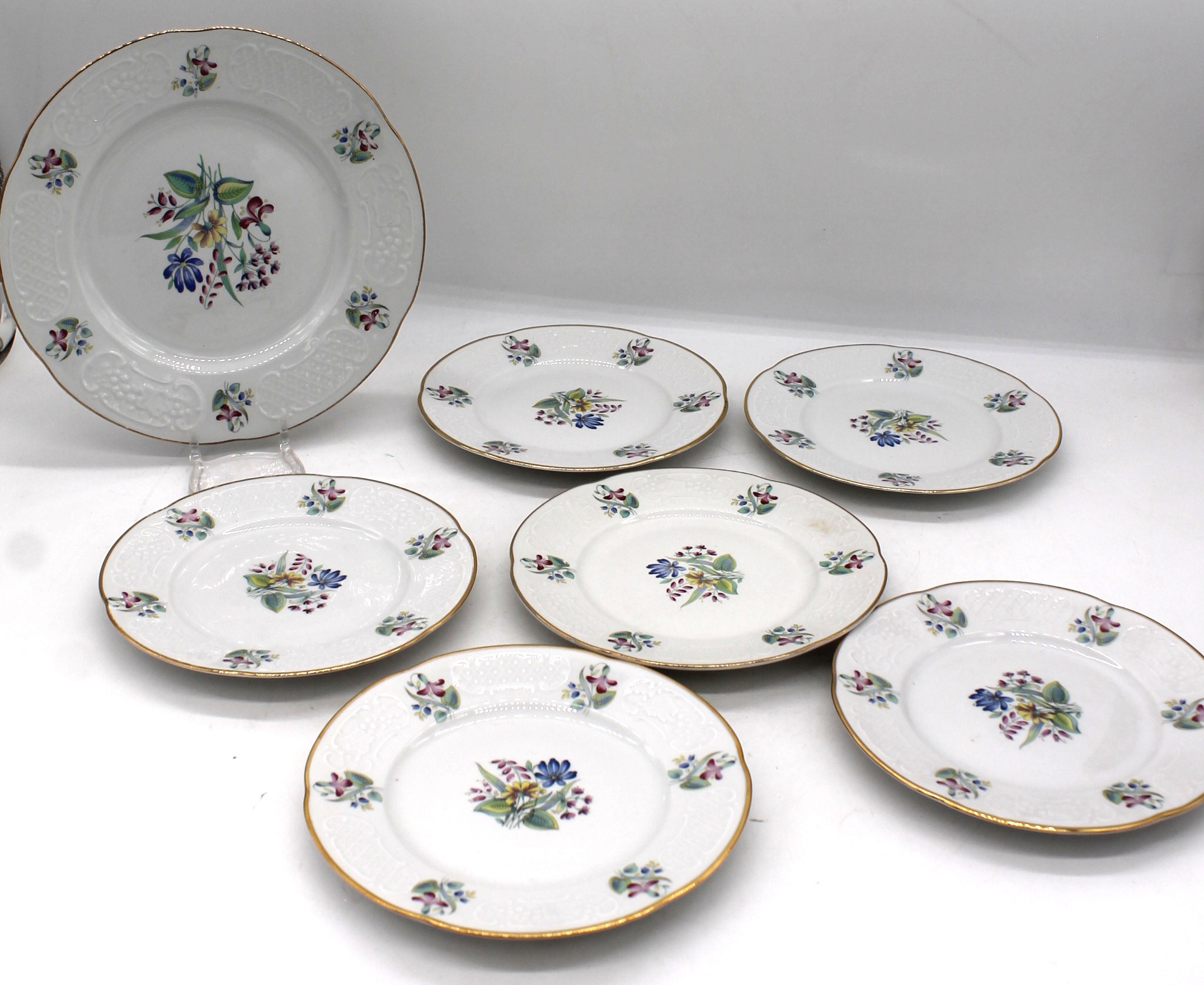 Servizio piatti dolce Ginori 7 pz, 6 piatti piccoli e un piatto grande. Bianchi con decorazione floreale.
