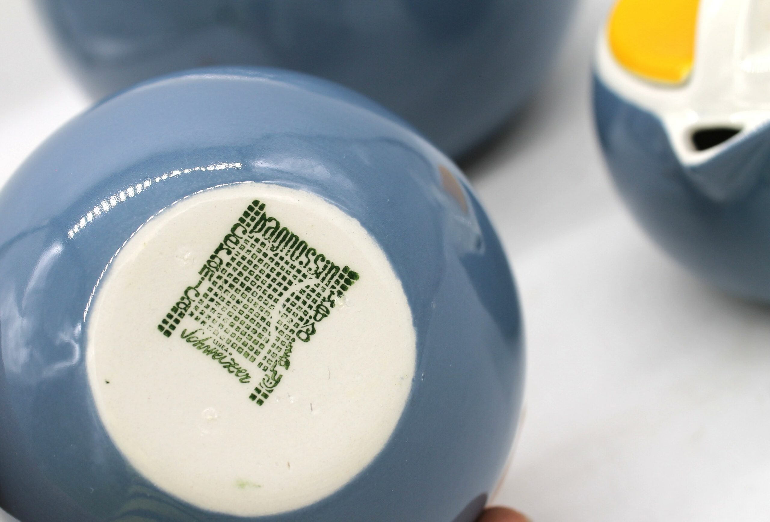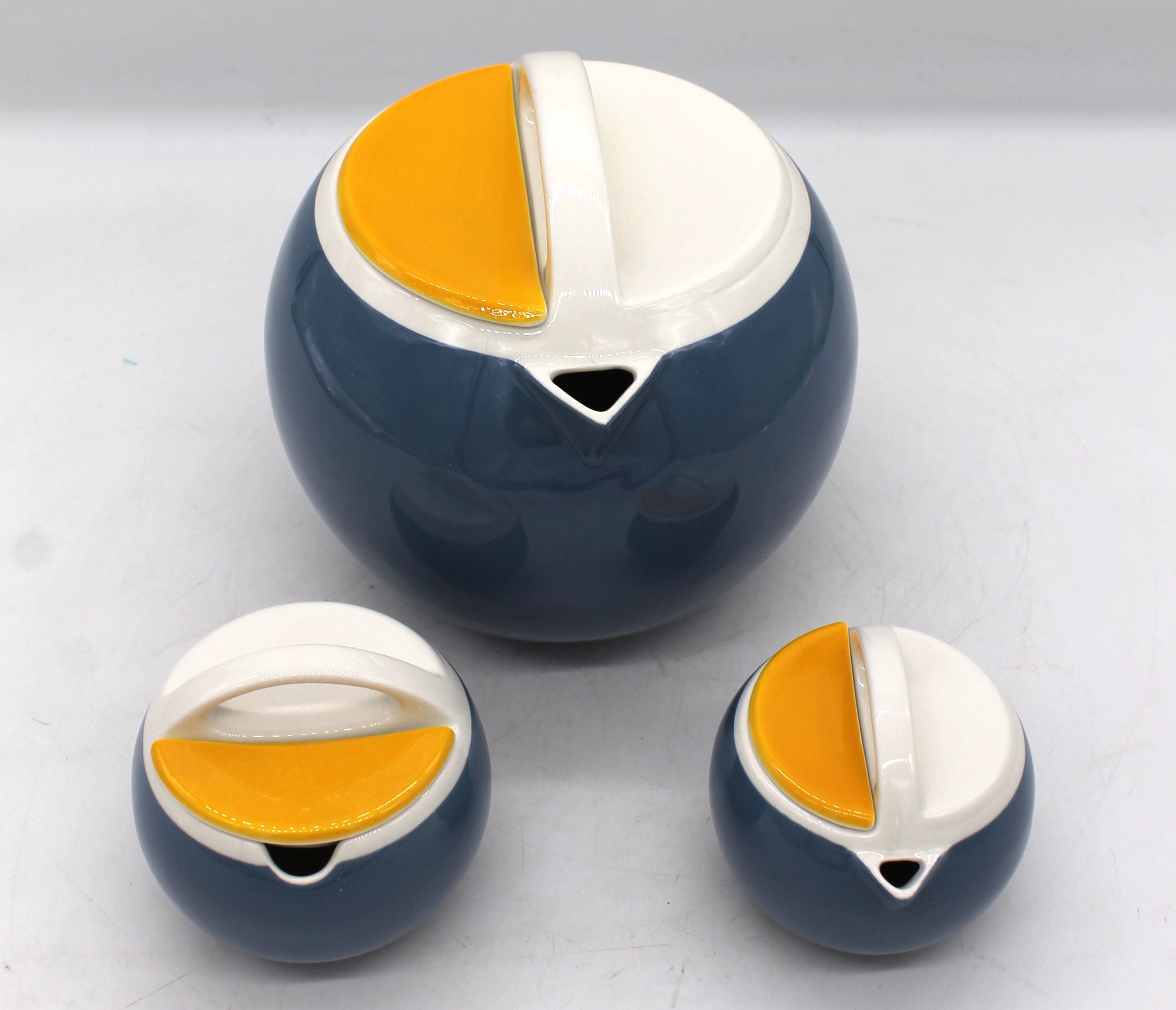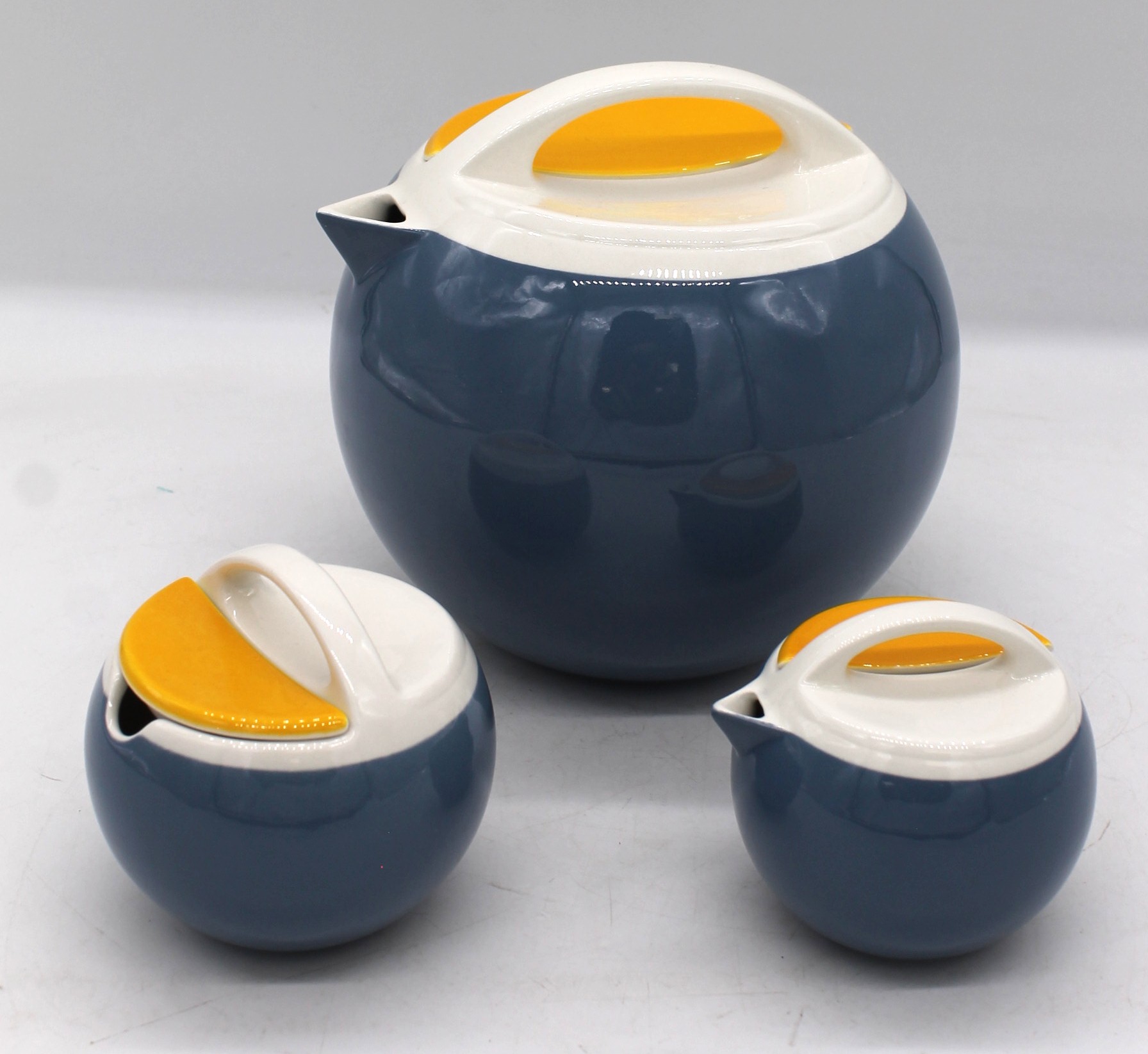 Set da tè vintage composto da Teiera e lattiera e zuccheriera, prodotto da Prognossin Ceramica a Treviso, Italia, come parte della loro gamma Linea Schweizer.