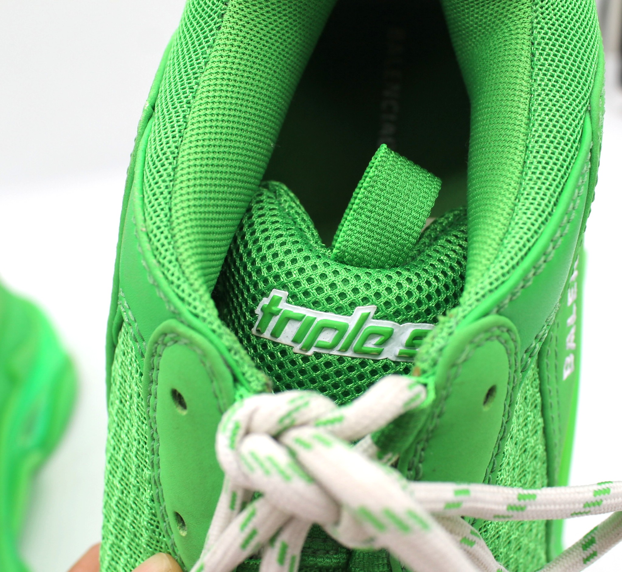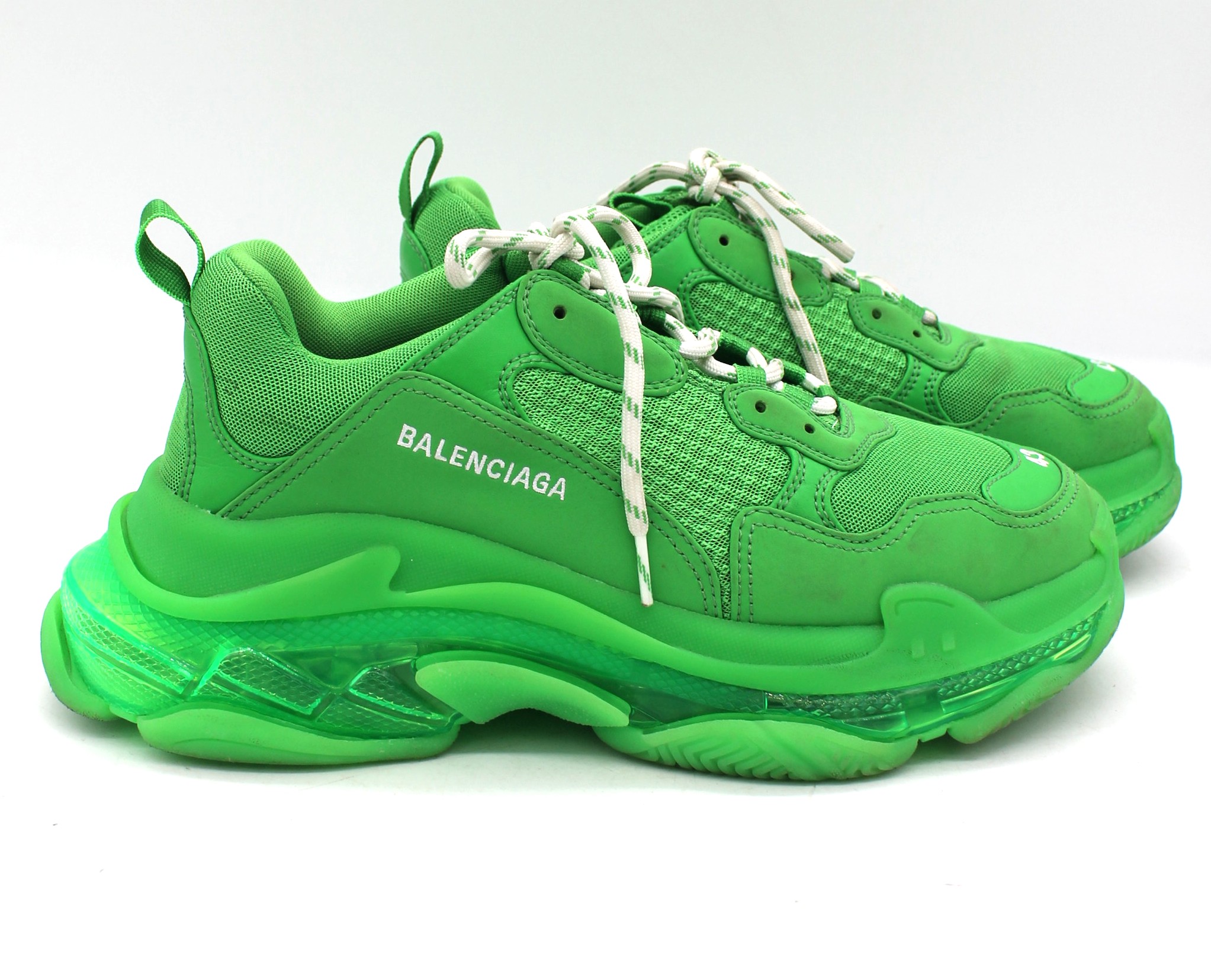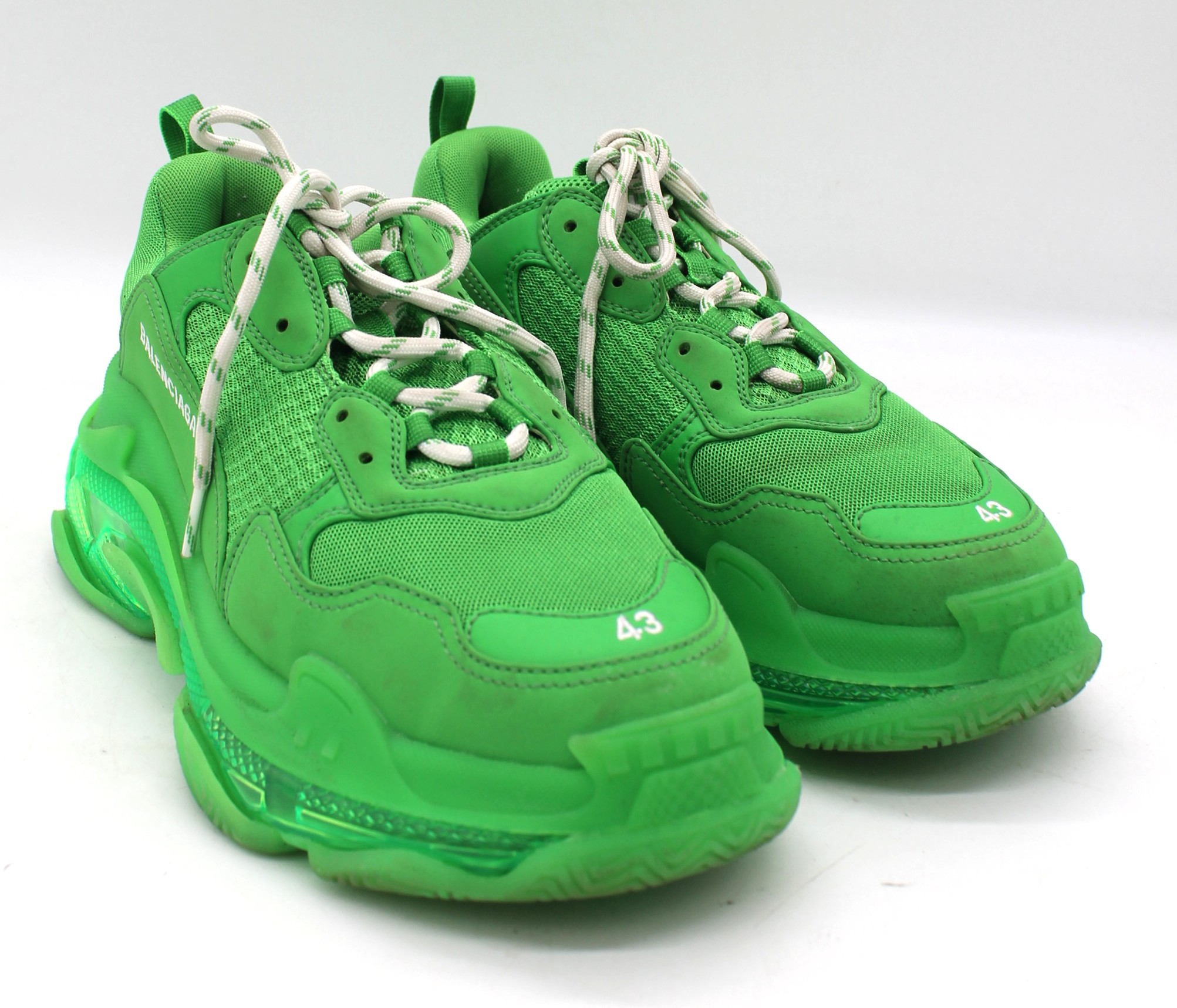 Sneakers Balenciaga Triple S verde acceso. In pelle Vegan. Numero 43.