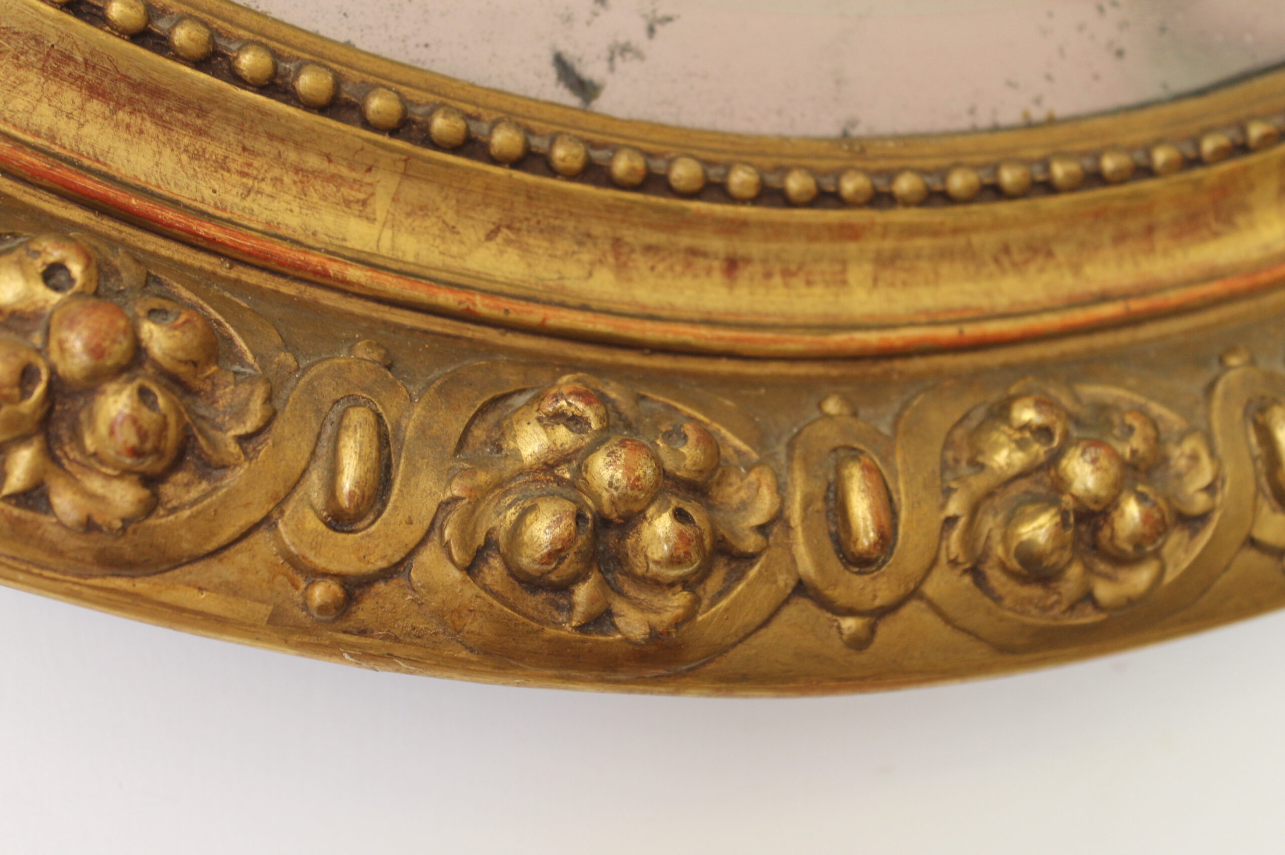 Specchio d’epoca con cornice dorata, in buono stato generale.