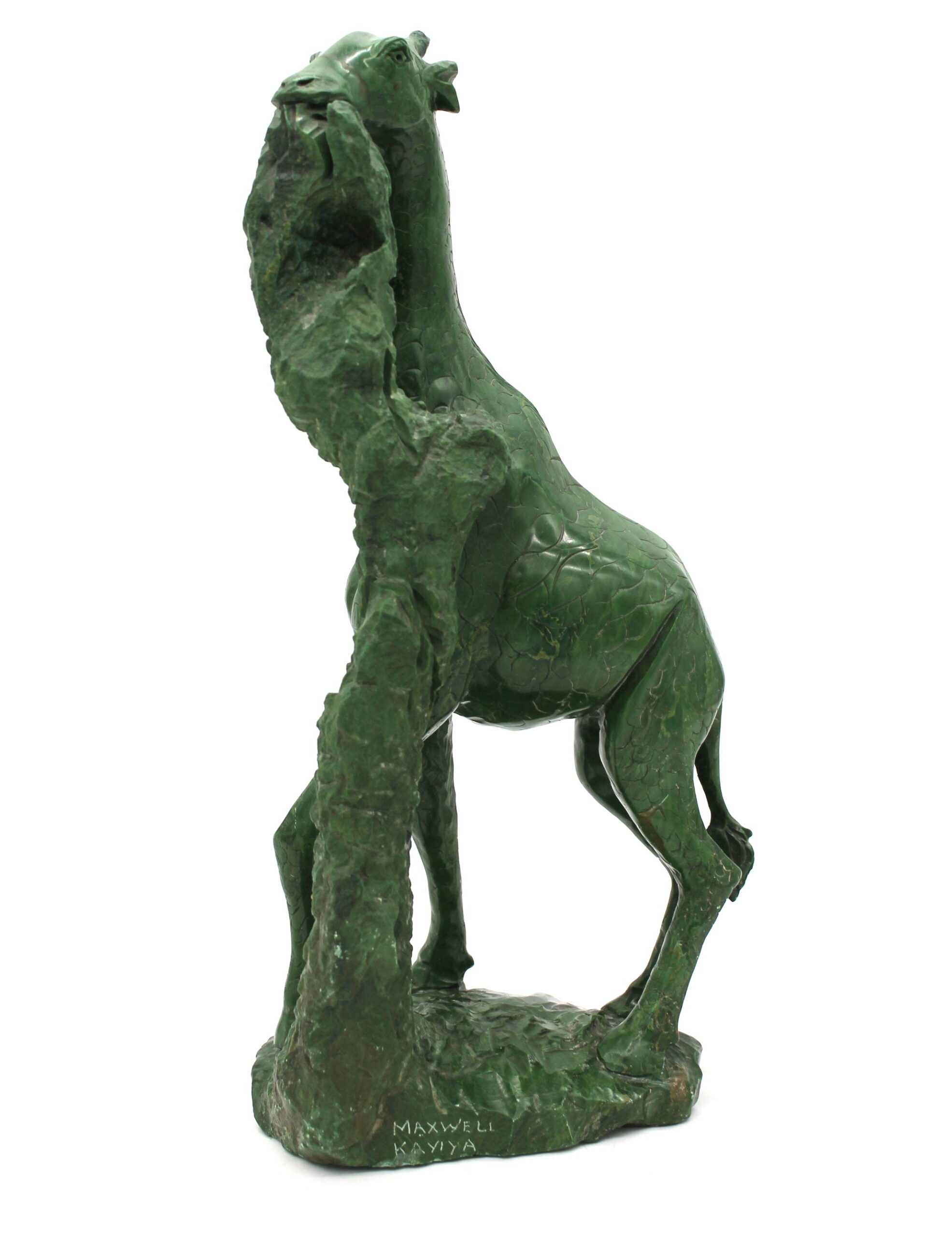 Statuina in malachite soggetto giraffa, di colore verde. Altezza di 30cm.