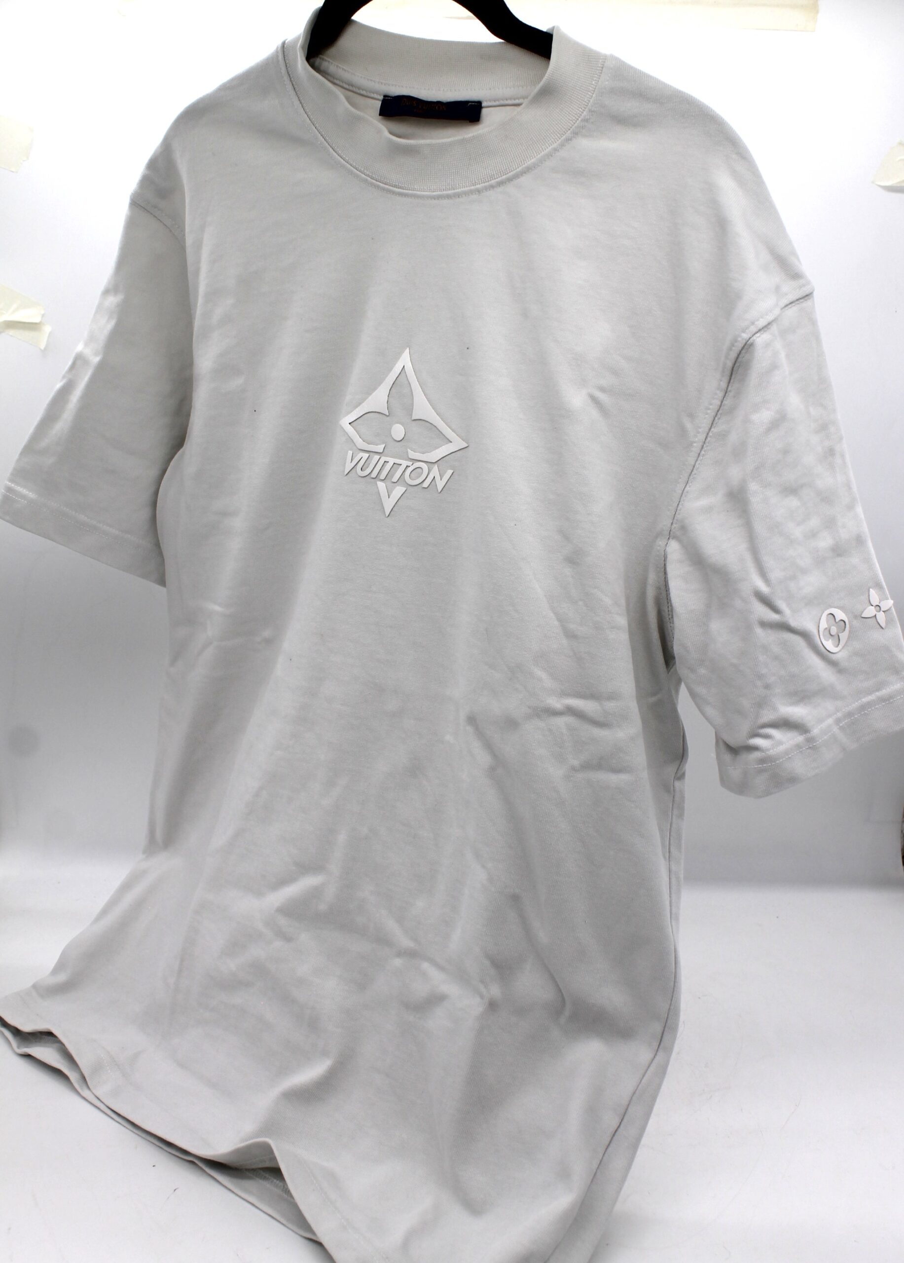 T-Shirt Louis Vuitton colore bianco con logo 3D. 100% cotone, taglia M.