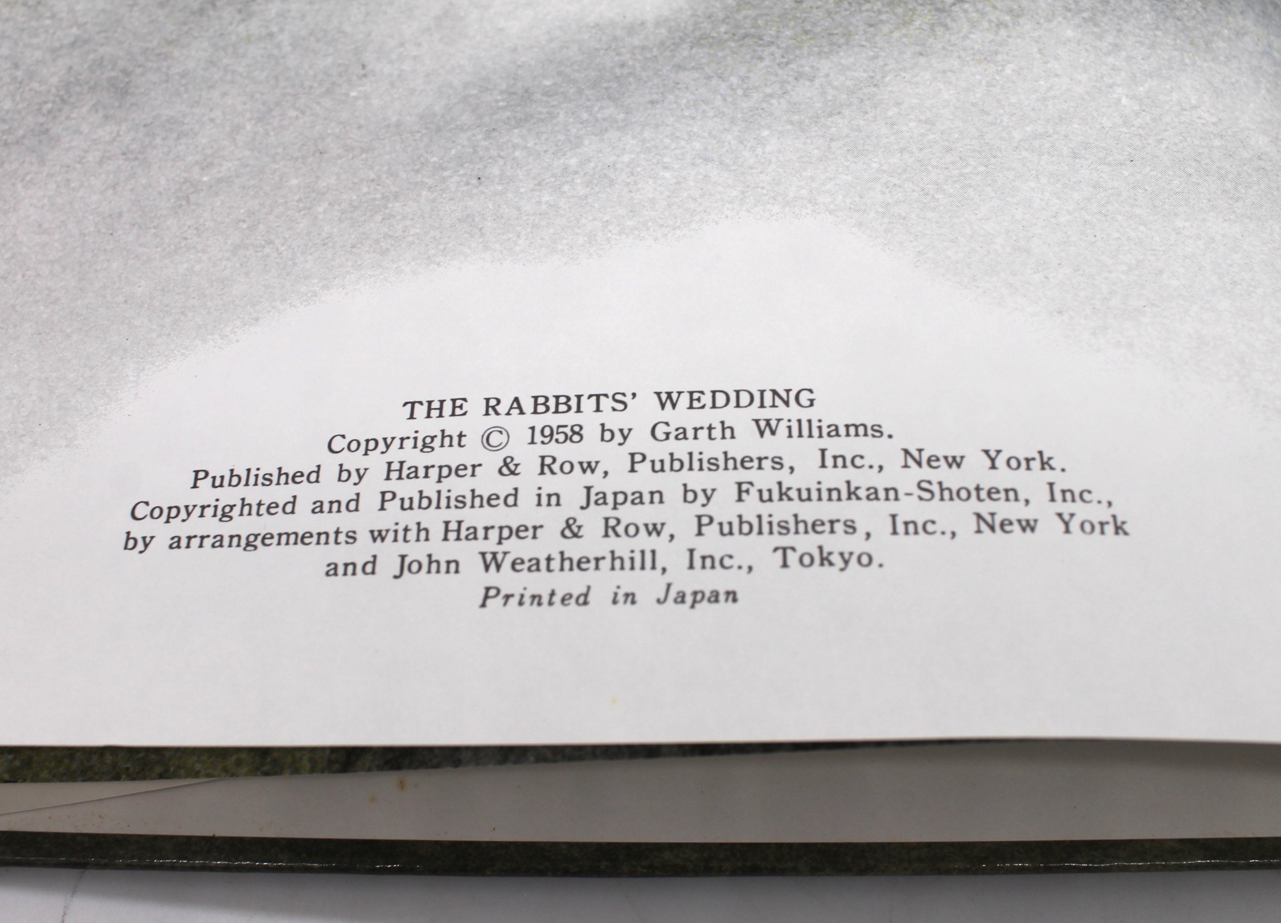 The Rabbit’s Wedding, By Garth Williams, Children’s Book in Jap. Illustrato, in ottimo stato.