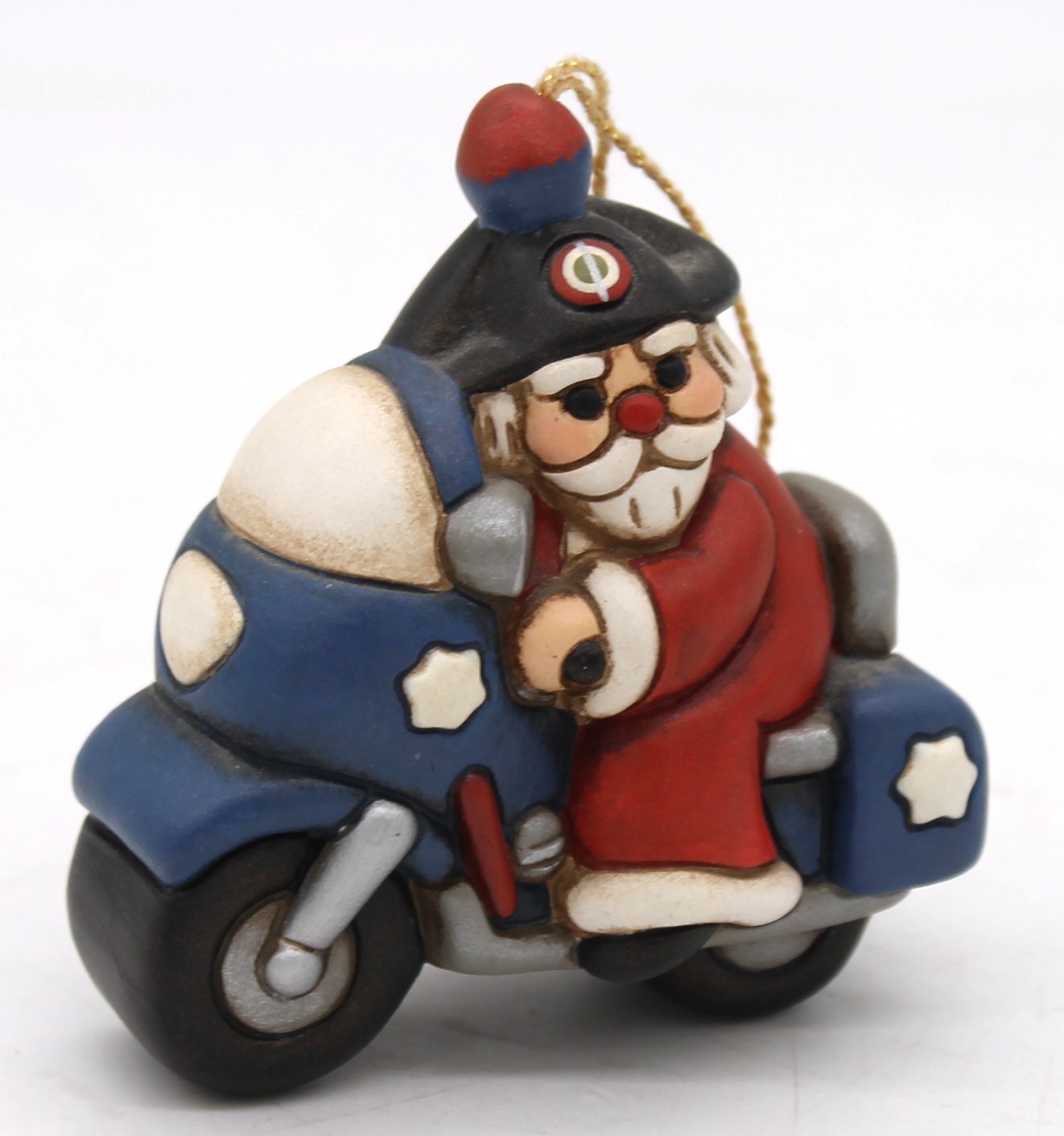 Thun Carabinieri Babbo Natale su moto in ceramica decorata a mano.