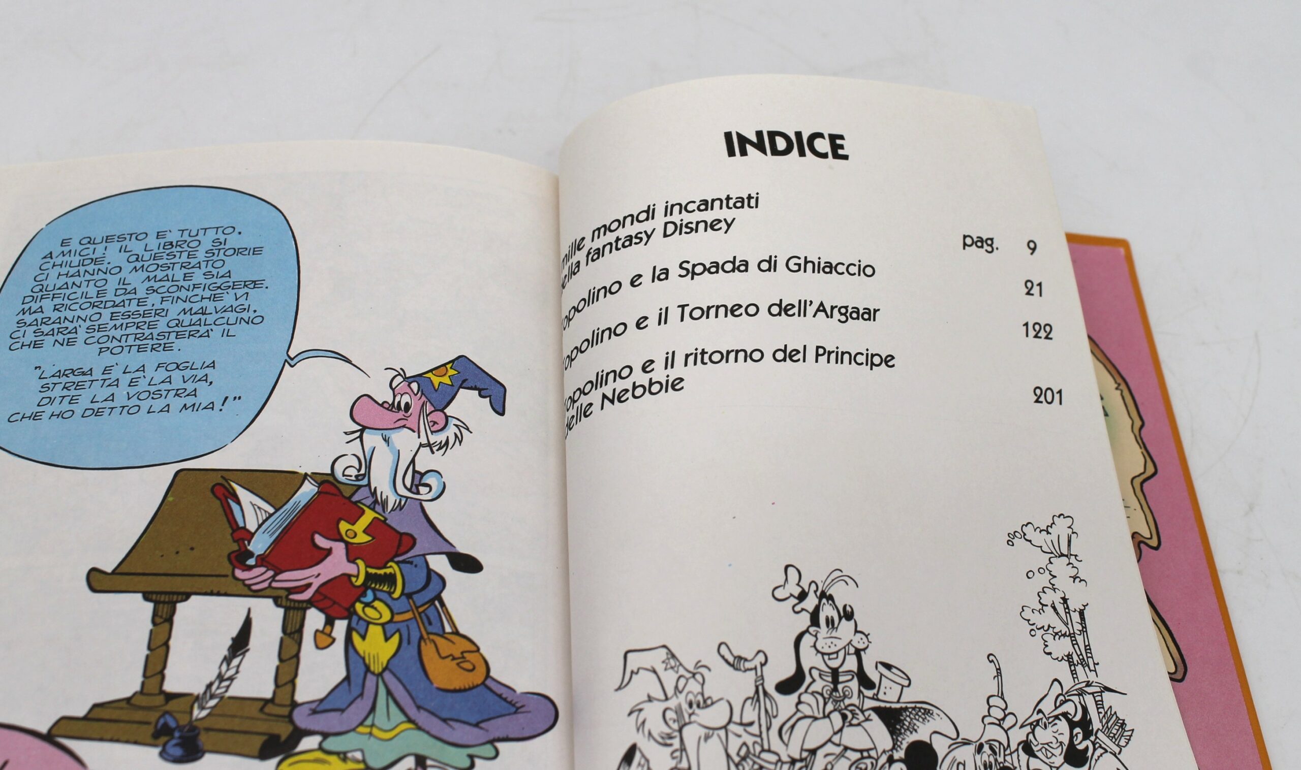 E’ una saga fantasy realizzata da Massimo De Vita che narra le avventure di Topolino e Pippo in un mondo parallelo chiamato Argaar. La saga è composta da 3 storie: “ Topolino e la spada di ghiaccio “ – “ Topolino e il torneo dell’Argaar” – Topolino e il ritorno del Principe delle Nebbie”. Ottime condizioni.
